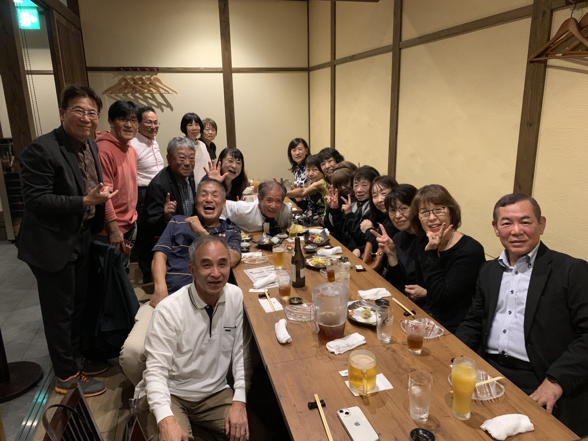 同窓会当日、担任の先生を自宅まで迎えに行くのが私の係です。患者さんとして来てくれている先生は88歳です。元気です😃。会場は平田の『友蔵』。同窓会にはもってこいの店名です。参加メンバーは18名。集合18:00には待ちかねた様に皆んなが集まってくれました。久しぶりに会う面々です。50年ぶりに会う彼は昔の面影はほぼ無く、失礼ですが完全にオッサン化していました。という私も彼から見たらオッサンだったと思います。女子からは「榮くん、私覚えてる?」の問いに「もちろん、覚えてとるよ」と言ったものの私の脳内海馬の記憶ファイルから必死に彼女の名前を探している私がいました。「ほんとに?」「あ、ああ」まだ、ファイルの中から出てきません。あった❗️「○○さんやんか。小学生から一緒やから忘れるわけあらへんやんか。」忘れてないけど、時の流れは恐ろしいものです。お酒も入り、話は盛り上がります。男性陣の身体的大きな変化はやはり頭髪です。記念撮影する際には、決して悪意がある訳ではありませんが「ハレーションを起こす箇所があるやん。写真うまく写らんで。」大爆笑😂のシャッターチャンスでした。私としては、当時好きだった彼女の参加を心より期待したのですが・・・。残念でした。彼女から欠席の手紙を頂いた親友が「この手紙、コウジ、お前に預けるわ。」と。「ありがとう。複雑だけど大事にする。」65歳の青春の1ページでした。あっという間に時間は流れ、楽しく同窓会はお開きとなりました。前の同窓会が5年前。今度は5年後と言わず、毎年でもしようよとの声もあがりました。気がつけば65歳、80歳まであと15年。一年一年を大切に生きなければとつくづく思う此の頃です。懐かしい想い出は大切にして、旧友とくだらない話をお腹を抱えて笑いあえる機会を沢山作りたいと痛切に感じました。