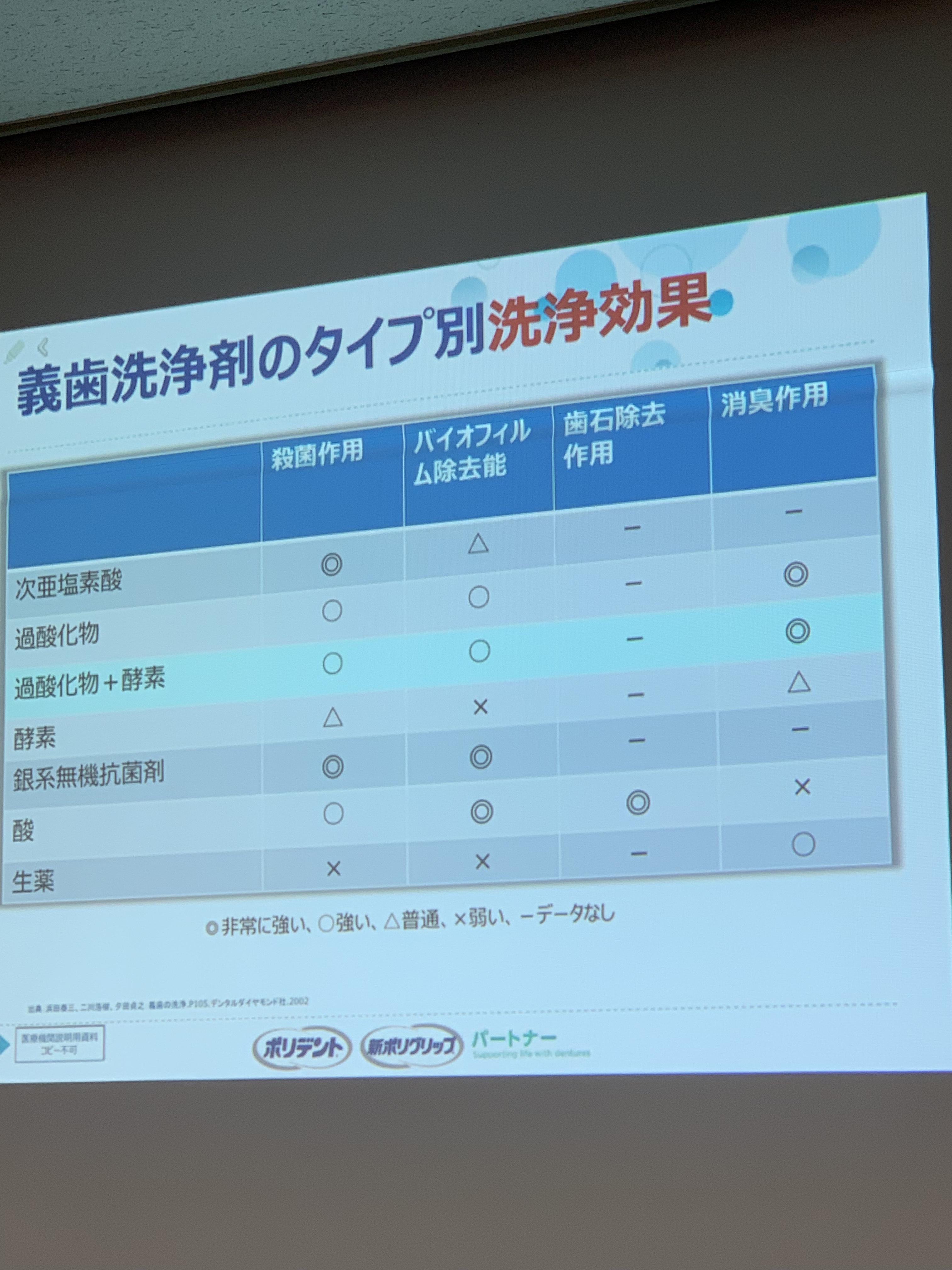 3月7日(木)18:15鈴鹿歯科医師会会館にて、グラクソ・スミスクライン社の義歯洗浄剤ポリデント、義歯安定剤のポリグリップの商品説明会に参加してきました。義歯ケアに関しては口腔生態系からみたデンチャープラークと義歯洗浄剤の使用方法についてと、義歯の種類と義歯洗浄剤の適応についての説明をききました。