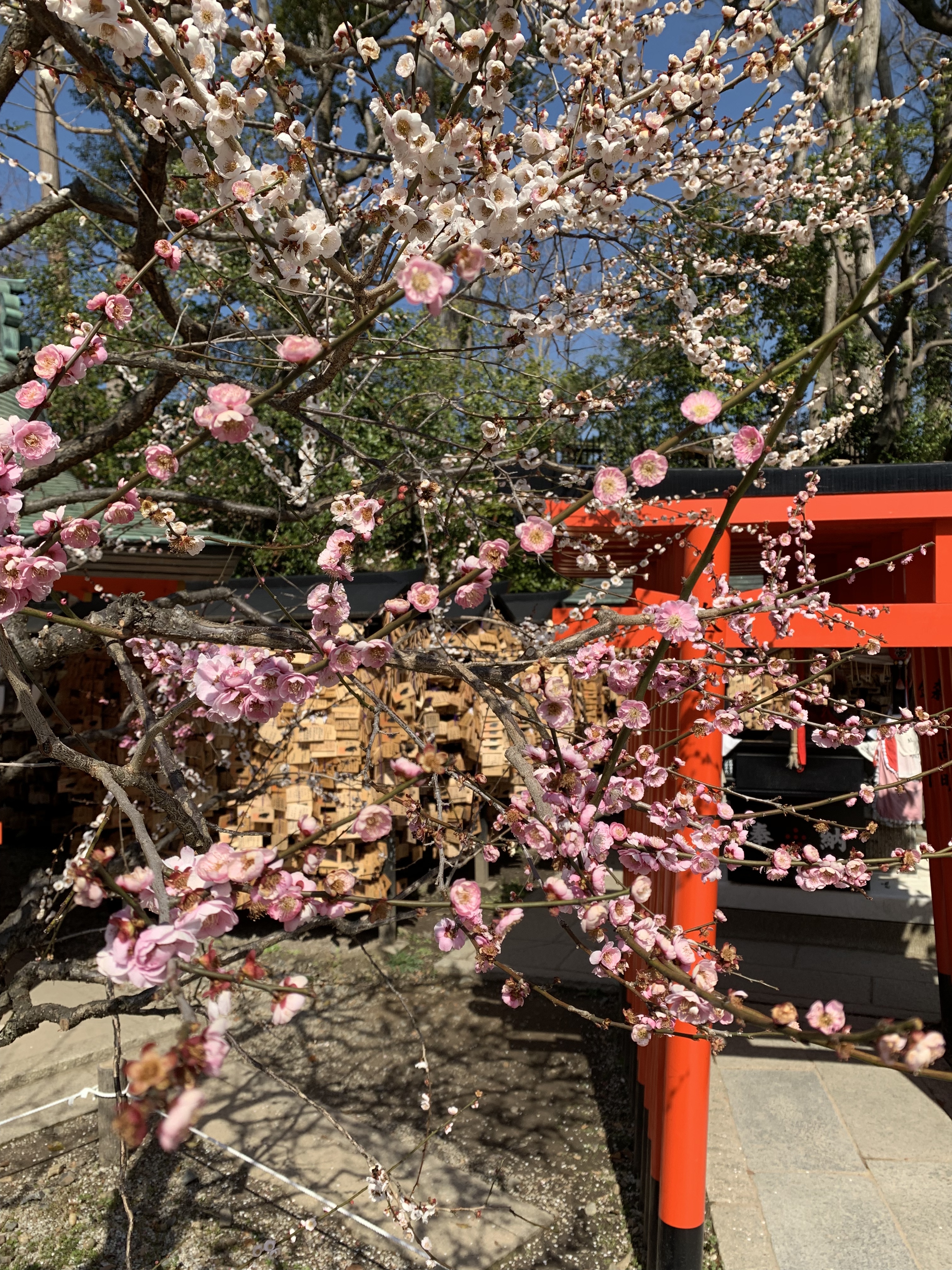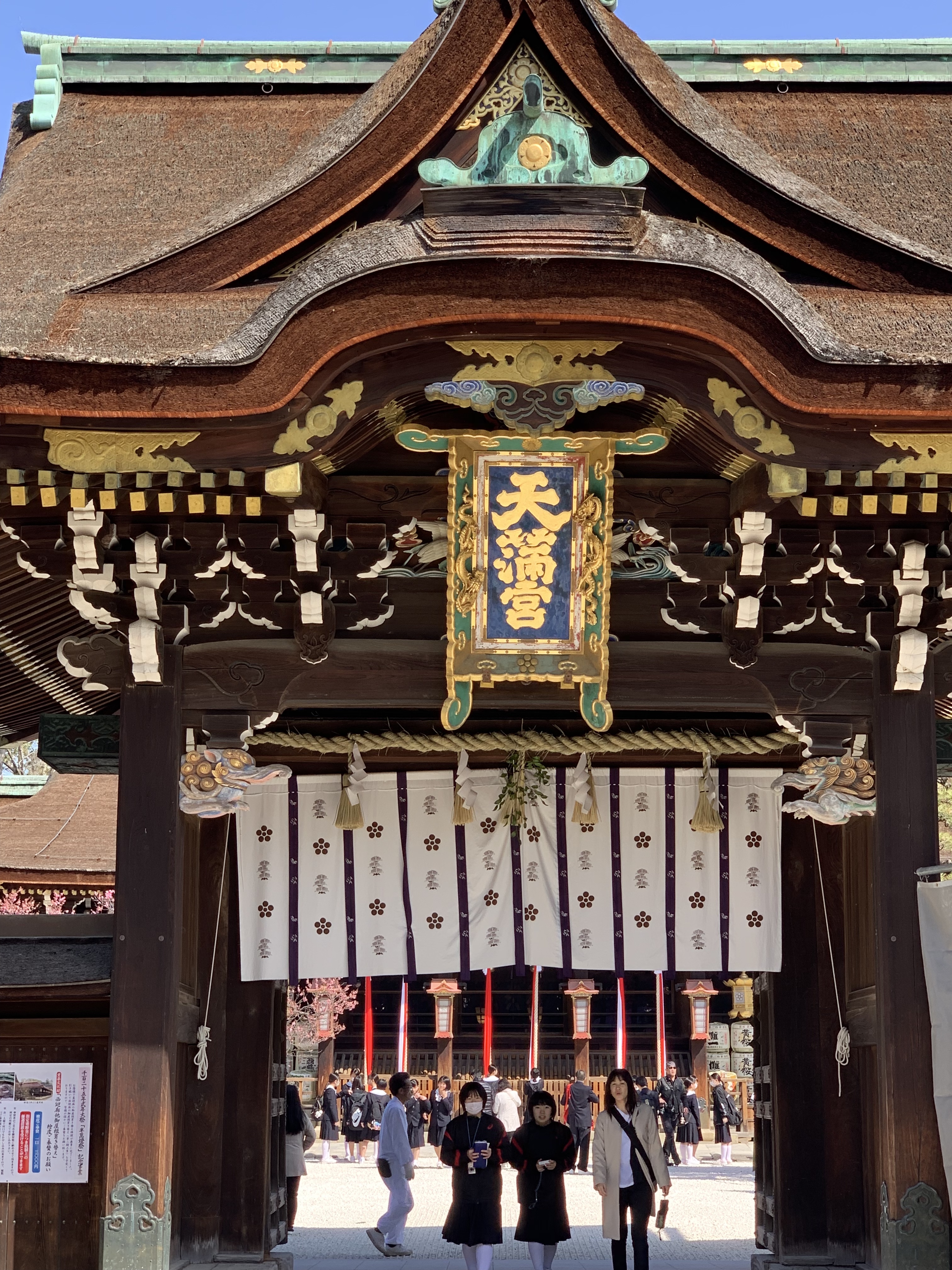 京都北野天満宮の梅を見に来ました。学問の神様の菅原道真公が祀られています。そして梅の有名な神社⛩です。毎年この頃にお参りを兼ねて梅の花を見に来ます。少し散り始めではありますが、まだ十分満喫する事が出来ました。赤い鳥居が連なっている向こうには沢山の絵馬が納められています。綺麗な梅の花に彩られたその光景に、その絵馬に強く込められた願いは道真公に届いたのだろうと思いました。