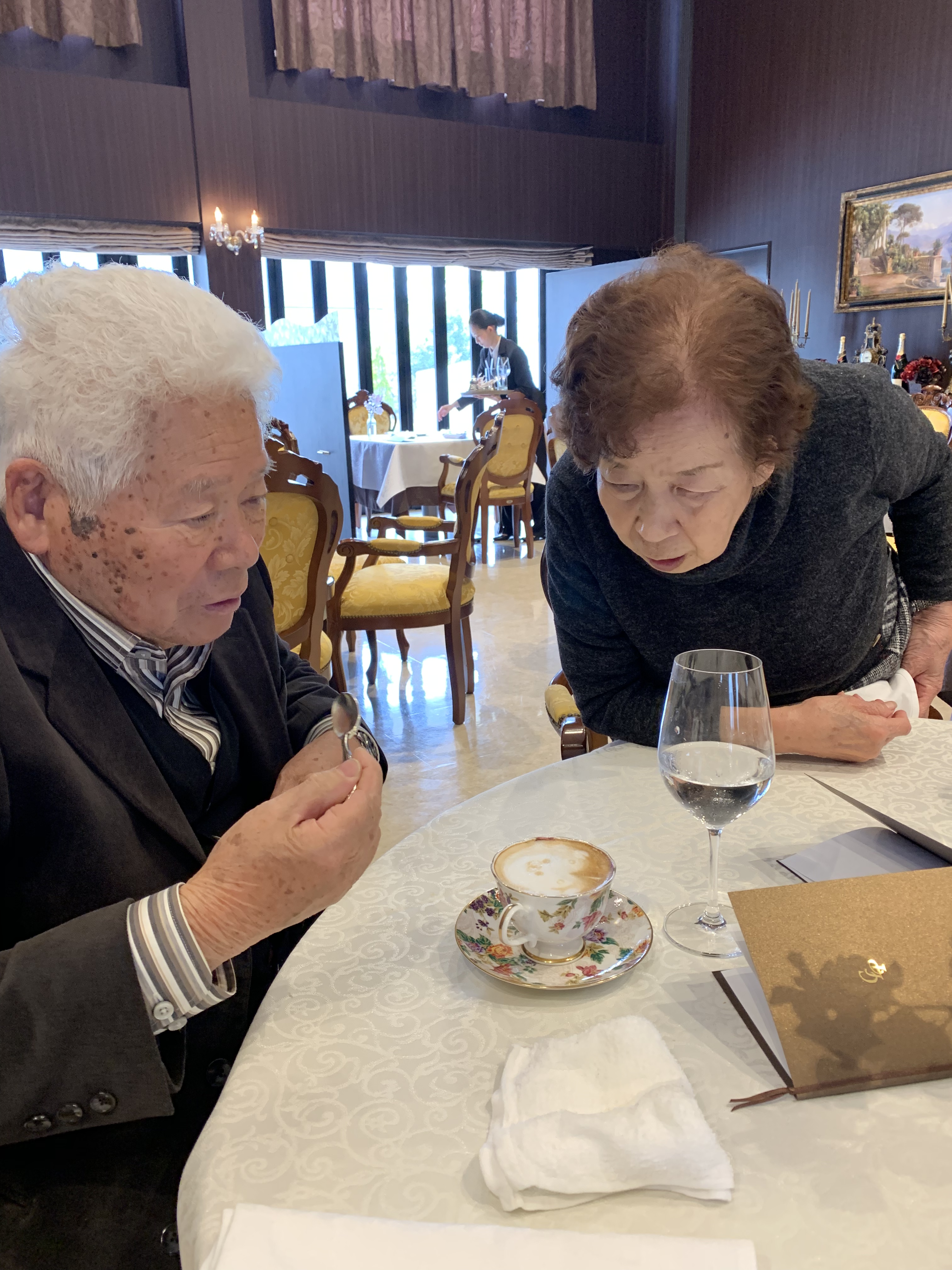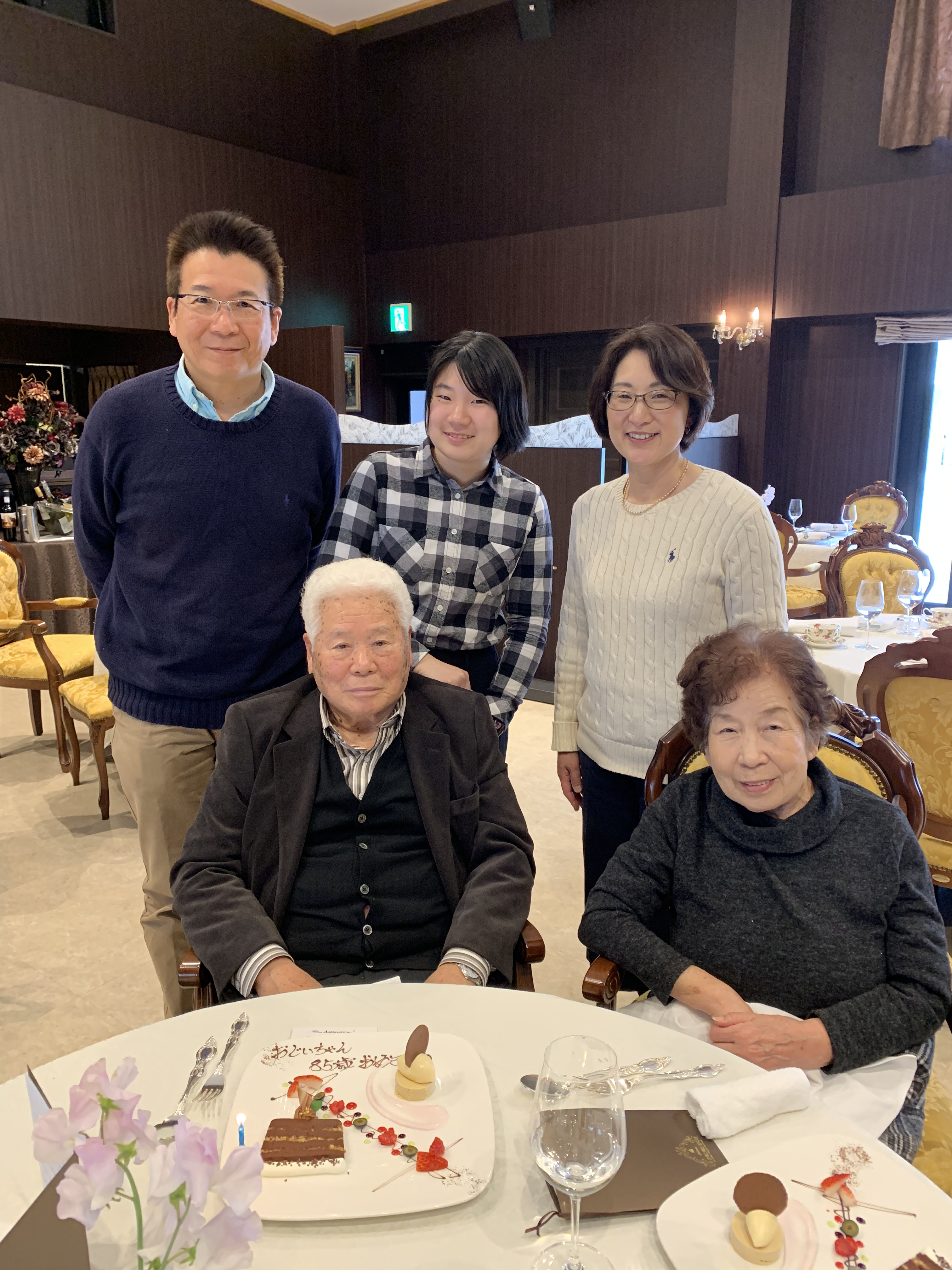 今日、親父 おじいちゃんの誕生会をしました。元気な85歳です。2月22日が誕生日なのですが、みんなの都合がつかなかったので今日となりました。津市あつの台のパルムドールでランチ フレンチコースでした。祝事や、さかえ歯科のイベントなどでしばしば利用するフレンチのレストランです。『料理の鉄人』というテレビ番組があった時、フレンチの坂井に勝った後藤シェフがオーナーの店です。おじいちゃんもお気に入りの店です。前菜から始まり、スープ、魚料理、肉料理、デザートとなります。両親とも食が太く何も残さず、美味しい、美味しいと連呼して全て食べ完食しました。ビックリです。デザート🍰では店の方からの粋な計らいでプレートにチョコで頼んであったメッセージが書いてありました。『おじいちゃん85歳おめでとう。』ロウソクの火を、おめでとうを言う前に吹き消してしまう親父さんは相変わらず天然です。店の方にお願いしてもう一度火をつけてもらいやり直しです。フッと火を消して、みんなでおめでとう。デザートを食べながら、色んな話をしました。カプチーノの泡の中に描かれている絵を見て、これはクマさん🧸かなぁとか、キティちゃんかなとか各々のカップ☕️中を確認しながらワイワイガヤガヤ楽しい時間を過ごしました。いつまでも元気で長生きして下さいね。庭の自家農園で作ってくれるトマト🍅はとても美味しく、今年もみんなで楽しみにしていますのでよろしくね。