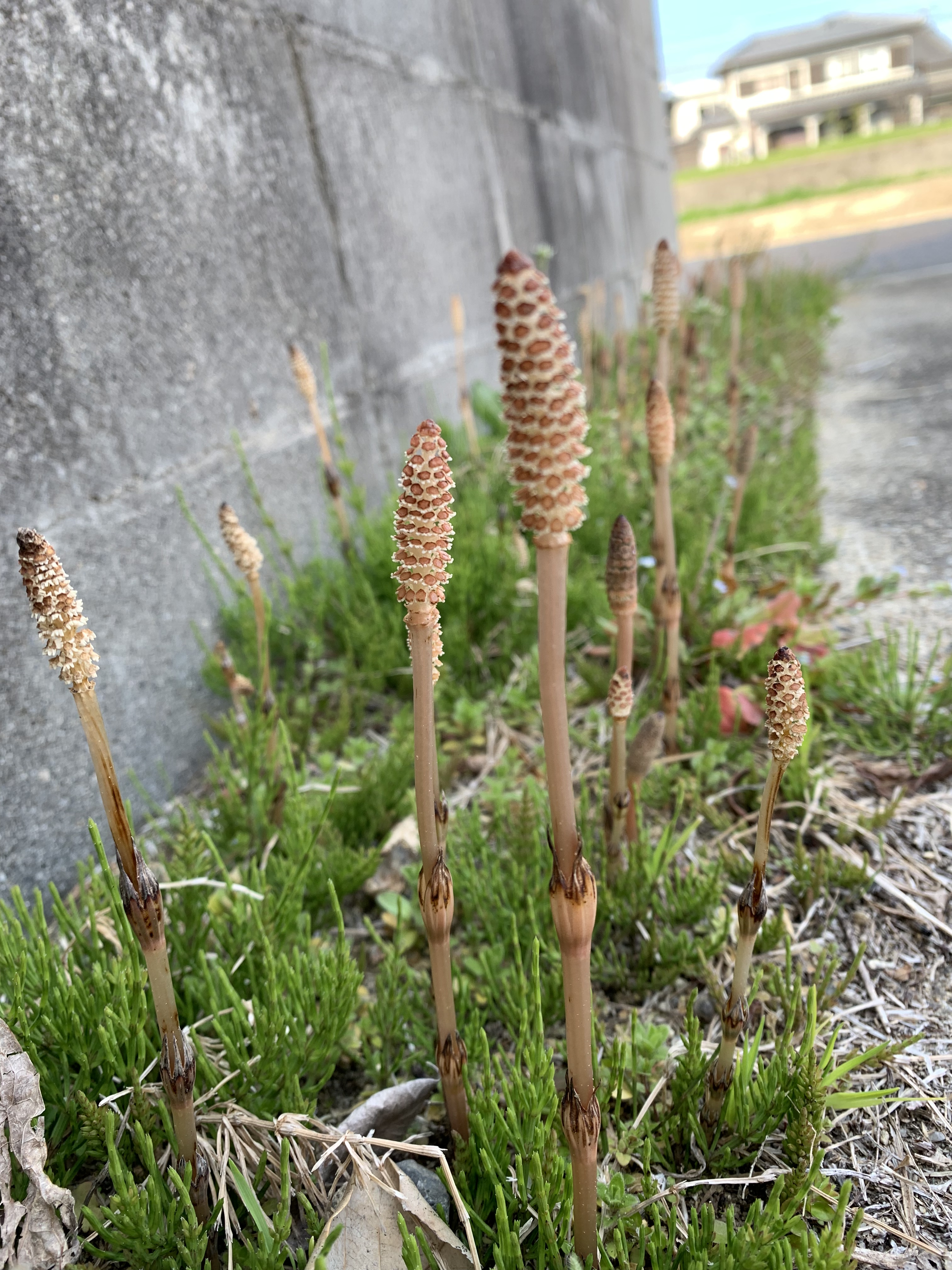 今日は、3月14日ホワイトデーです。バレンタインのお返しは?もちろん私は、昨日スタッフにクッキー🍪のお菓子のお返しをしました。3月も半ばを過ぎましたが、まだまだ寒い日があります。そんな時、ブロック塀の後ろに小さな春を見つけました。ツクシがムーミンのニョロニョロ達が日向ぼっこをしているかの様に、コンクリートの壁とコンクリートの地面との間のわずかのスペースに並んで生えていました。ツクシって漢字で書くと、土筆と書くんですね。まさしくその通り、土の上に並べられた筆の様ですね。肌寒く浅い春の夕方、着実にユックリと歩んできている春の気配を感じました。