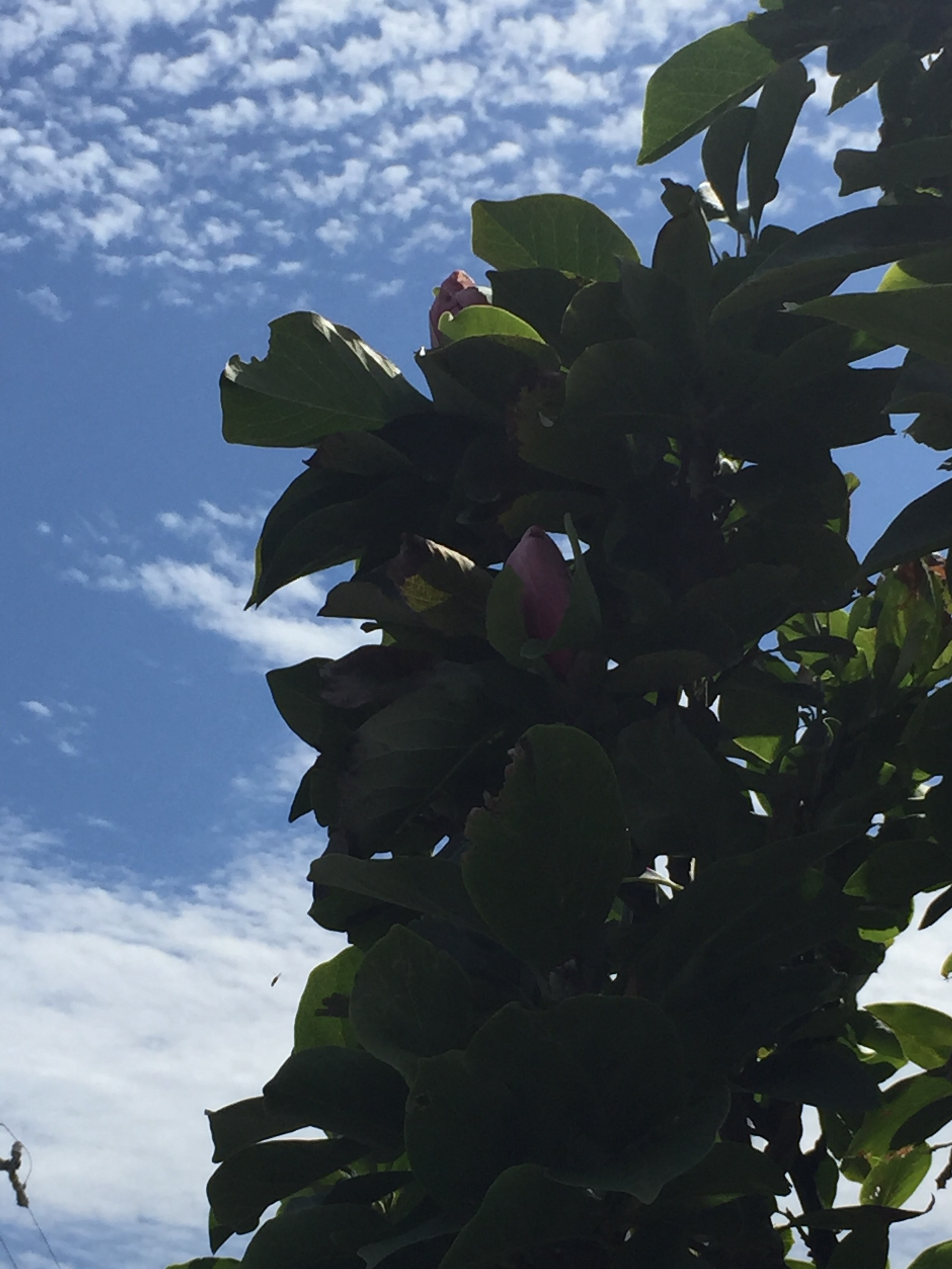 こんな時は、グーグルさんに聞いてみます。「オッケー、グーグル。木蓮っていつ咲くの?」返答は、三月下旬から四月上旬です。特にウチの木蓮の濃いピンクの種類は四月中旬に開花です。秋、冬を飛ばした木蓮の花は、あわてんぼうのサンタクロース🎅さえも越えてしまいました。うろこ雲をバックにピンク色の木蓮の花 綺麗でした。