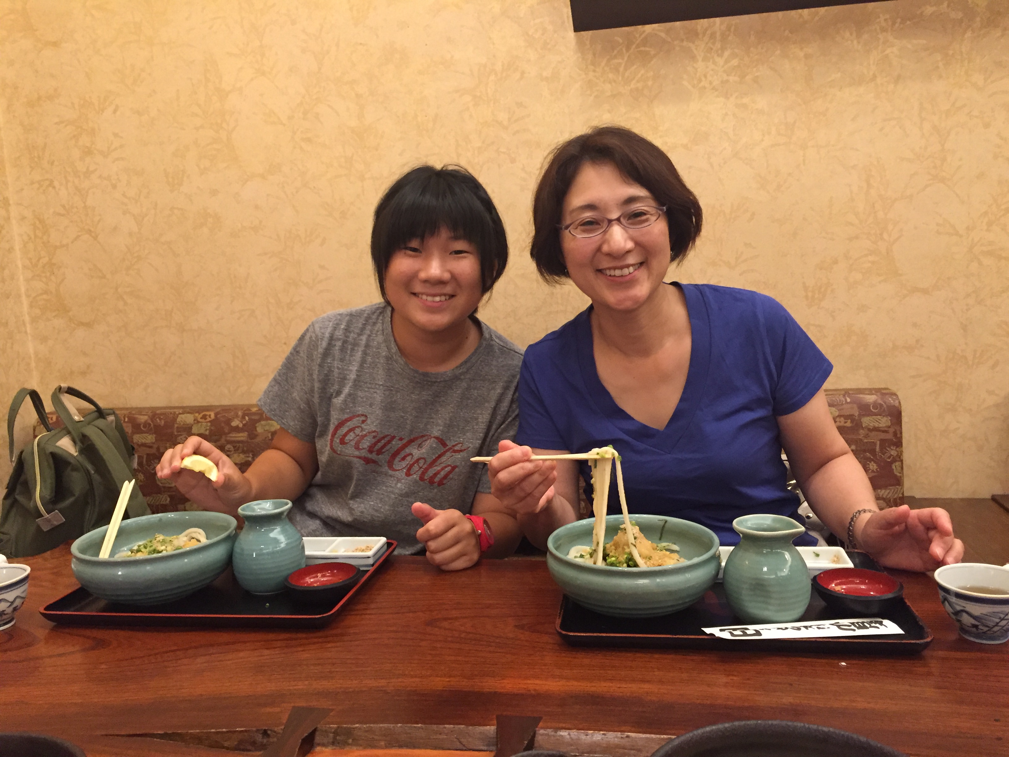 食べ方を丁寧に説明してもらい、「いっただきまーす!」です。腰のある歯応えのあるうどんは