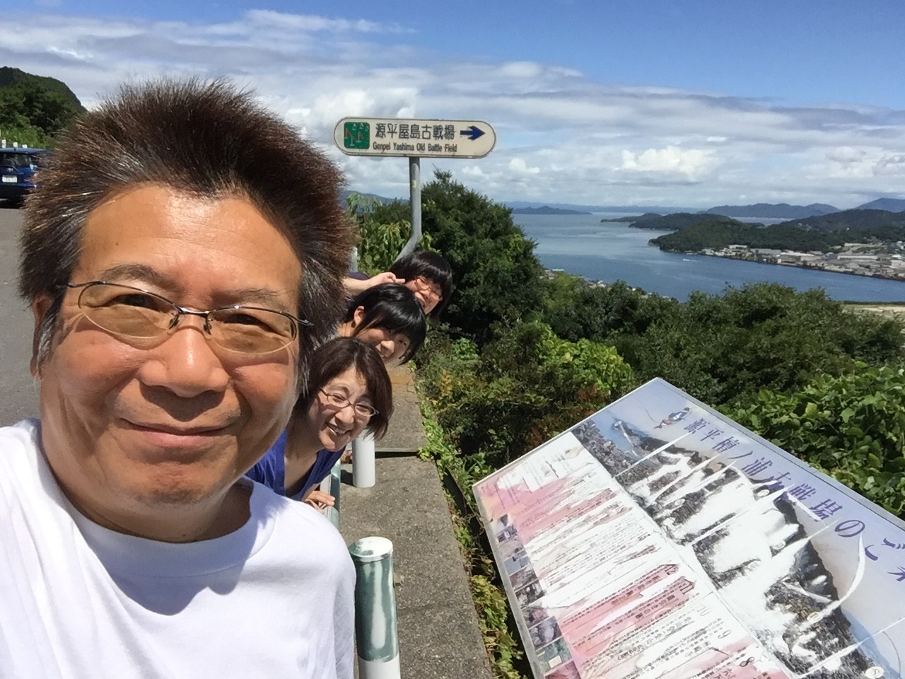 美味しいうどん屋さんの山田家さんで、お腹も満たされ、源平屋島古戦場跡が見れる屋島寺に向かいました。那須与一の扇の的の舞台となった場所です。対岸に岡山県が見渡せる山頂から望む瀬戸内海の島々の景色は、鳥肌が立つくらい綺麗でした。お笑い好きな我が家、特に千鳥に今ハマっている我が家では、大吾が子供の頃に住んでいた島はどこだろうと、探しました。そして古の源平合戦の頃を想像しました。
