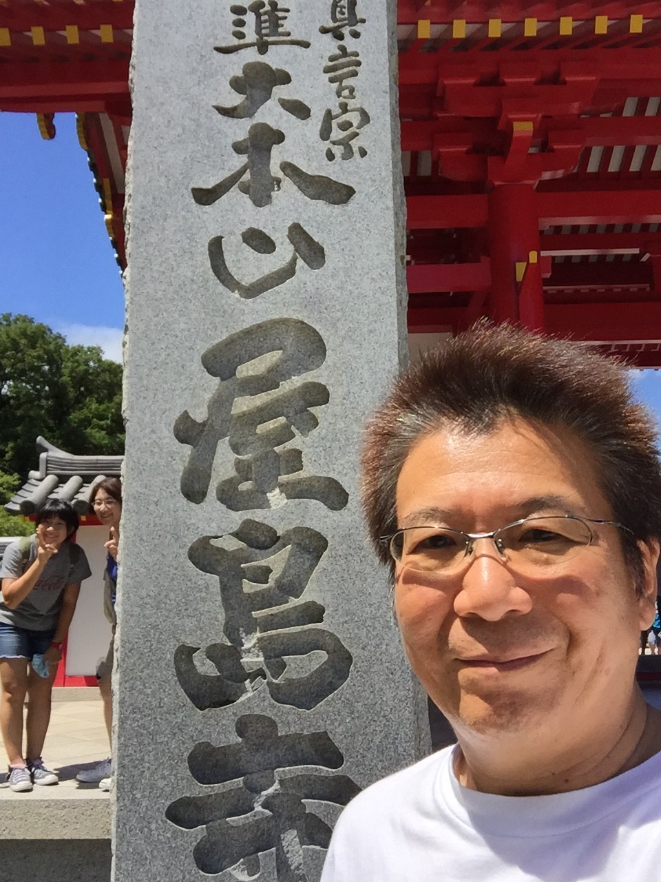 階段を一段一段と踏みしめ登っているのですが、日頃の運動不足を痛感します。この階段を作った人はもっと大変だったに違いないと、訳のわからない事を考えながらひたすら登りました。汗💦が吹き出てきます。背中からの汗でよそ行き用の一張羅のTシャツは、ベタベタです。100段目 一ノ坂鳥居⛩です。まだまだ余裕です。笑顔が見えます。