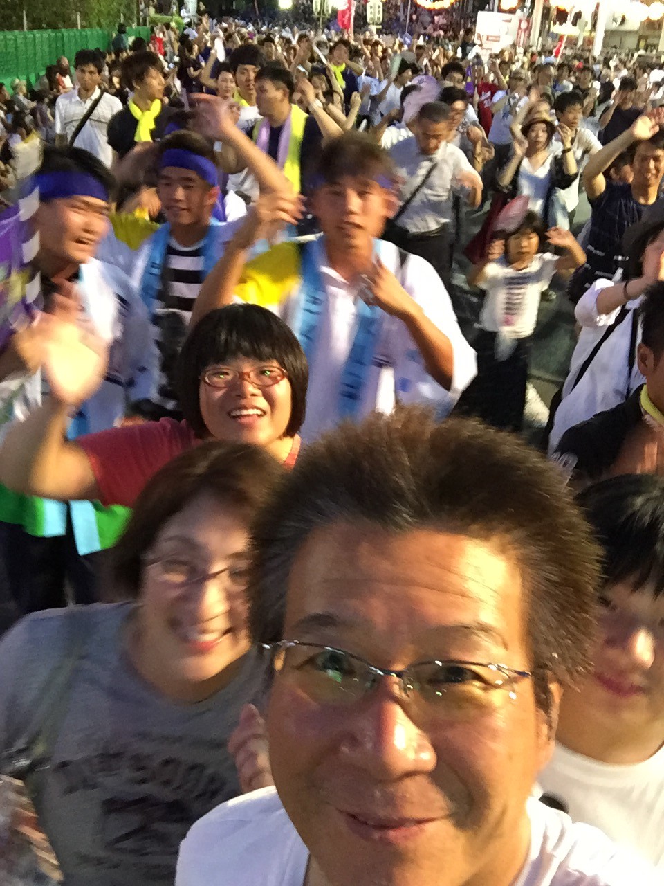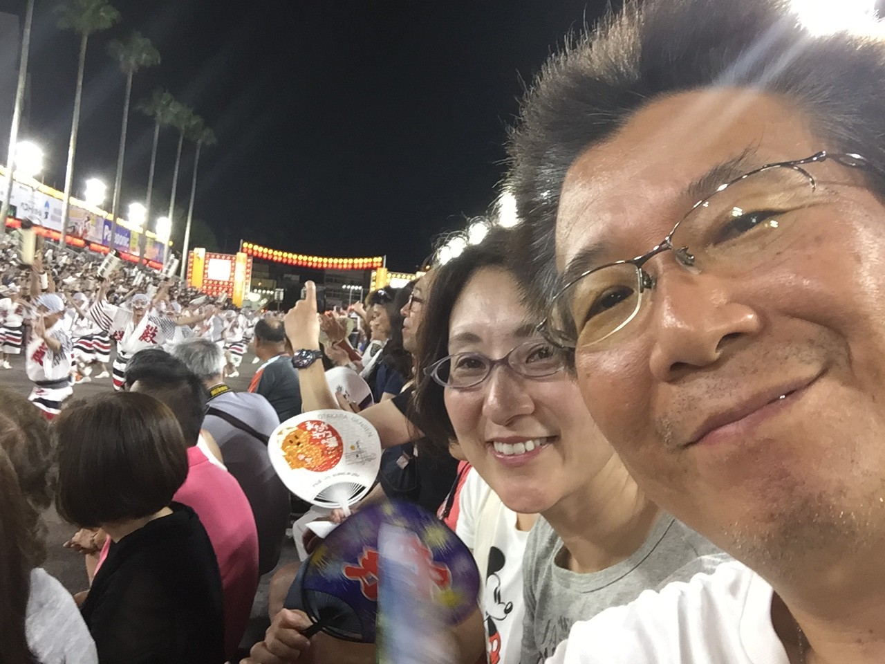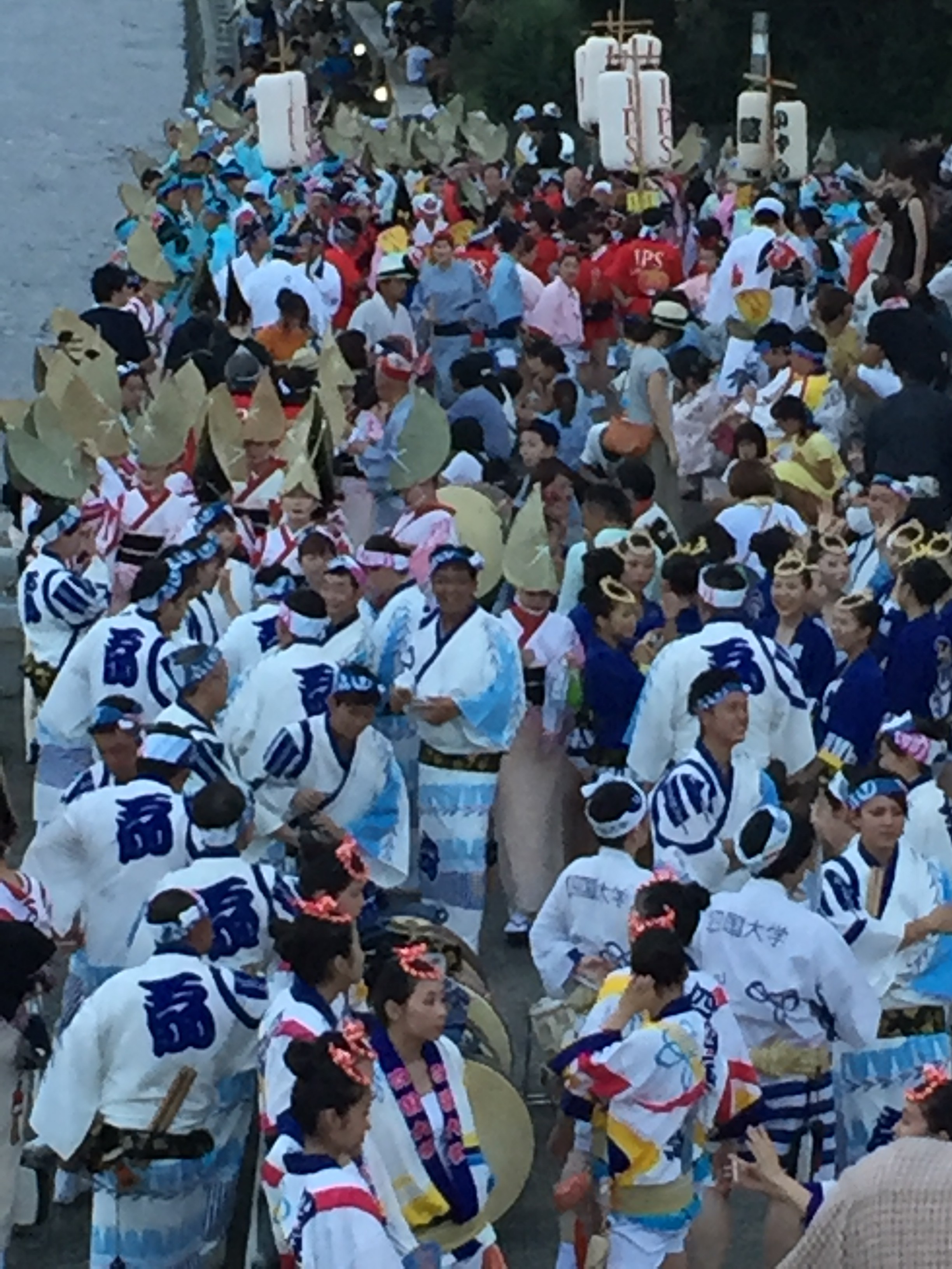 徳島の叔父さんの計らいで桟敷席を確保してもらい、それも前列二列目というベストポジションで阿波踊りの醍醐味を味わいました。両親も若かった頃の話をしながら、楽しそうに見入っていました。嫁さんも子供達も、少し興奮気味に踊りの美しさを堪能していました。自転車🚲の方が速いんじゃないかと思う位の大渋滞と強烈な睡魔に耐えて来た甲斐があったと、嫁さんも私と同じ事を思っていたと思います。