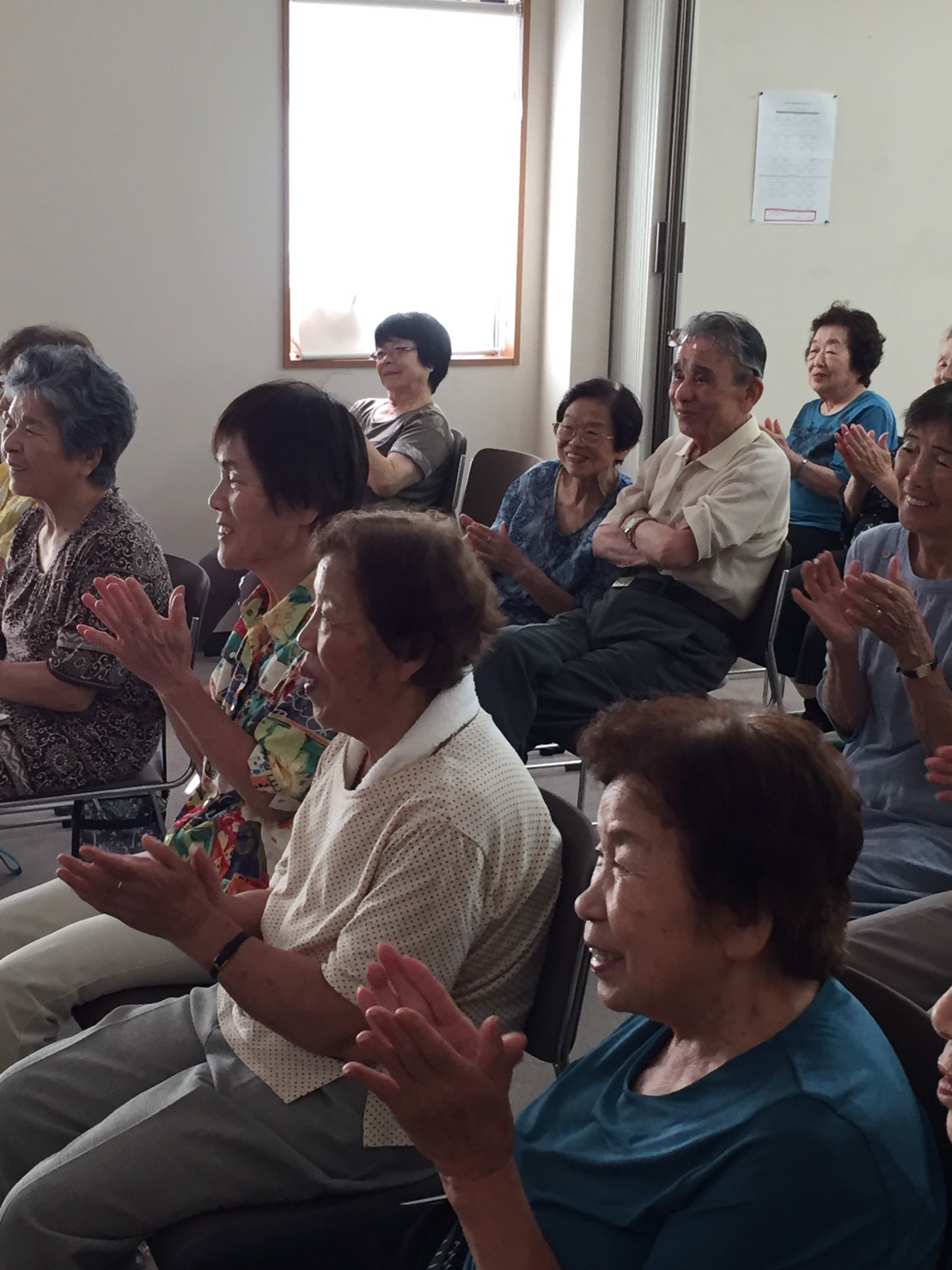 今日は江島台のご高齢の方の仲良しグループの『和楽』にご招待を受け、江島台集会所で講演会とお楽しみ手品🎩の会に行ってきました。元気で仲良く長生きしようのコンセプトの和楽の会です。お昼の1時半からのスタートでした。いつもの様に1時間前に現場に行き、まず講演会の準備をします。それから手品の仕込みをします。外は真夏の晴天、かなり暑い日となりました。来られる方々の熱中症が心配になりました。開始の時間が近くなると元気なみなさんが、集まってきました。よく知ってる患者さんの顔もたくさん見られました。皆さんが集まったところで、まず、長生きする為に嚥下障害、誤嚥性肺炎をなくす為のお話をしました。そして唾液腺のマッサージの方法を楽しくレクチャーしました。カタパラ、カタパラと嚥下摂食障害予防の為の発音トレーニングをしました。皆んな熱心に聴いてくださいました。