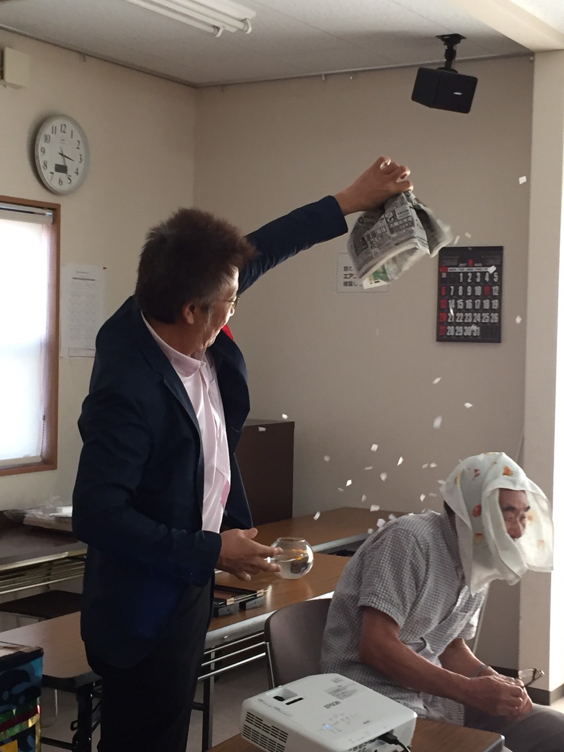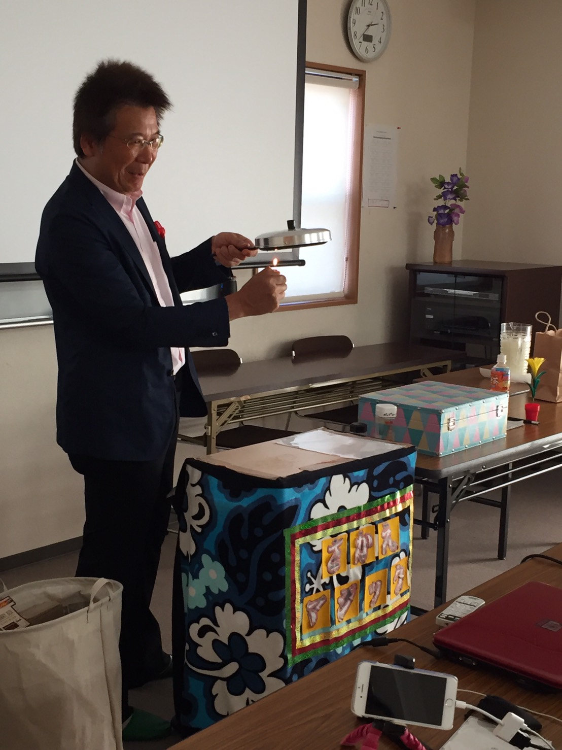 10分の休憩、その間にアシスタントの嫁さんとで手品の仕込み。さあ、お楽しみの私の真骨頂、ご機嫌タイムです。仲良しの患者さん達のいる江島台は、私にとってサッカー⚽️で言えばホームです。協力してくれる方々、盛り上げてくれる方々、ナイスなボケをしてくれる方々、ネタを忘れても温かく見守ってくれる方々、有難かったです。中でも、さかえ歯科の患者さんの”野々ちゃん”(あえてニックネームにしますね。)との絡みは今年のM-1グランプリの予選に出場してみようかな思うくらいの絶妙なものでした。はっきり、若手の売れないお笑い芸人よりもはるかに面白かったです。そして、いつしか気付いたら主役は野々ちゃんになっていました。少しジェラシーを感じるくらいでした。予定していた時間を大幅に過ぎる事も忘れるくらい皆んなとの一体感がありました。