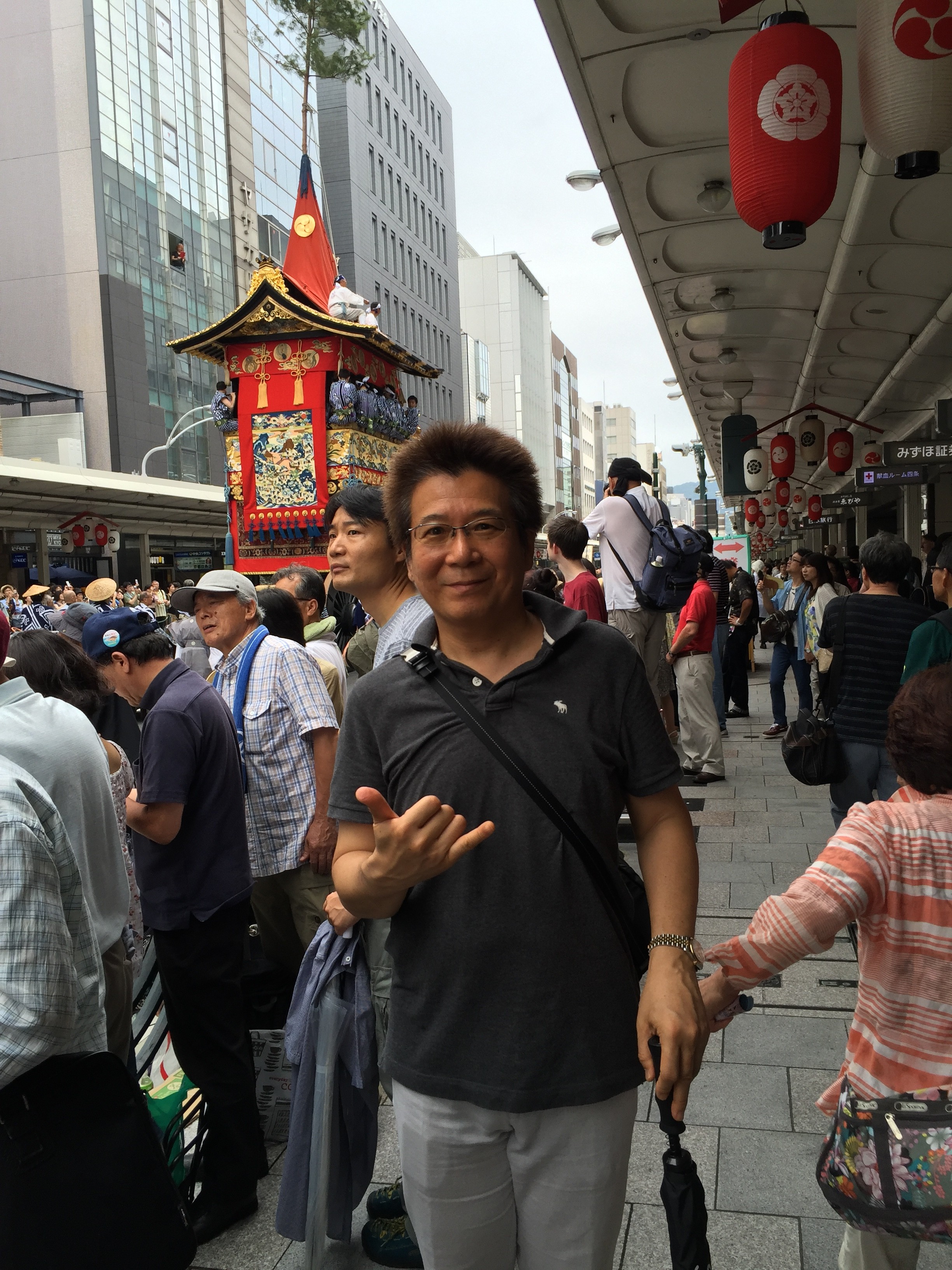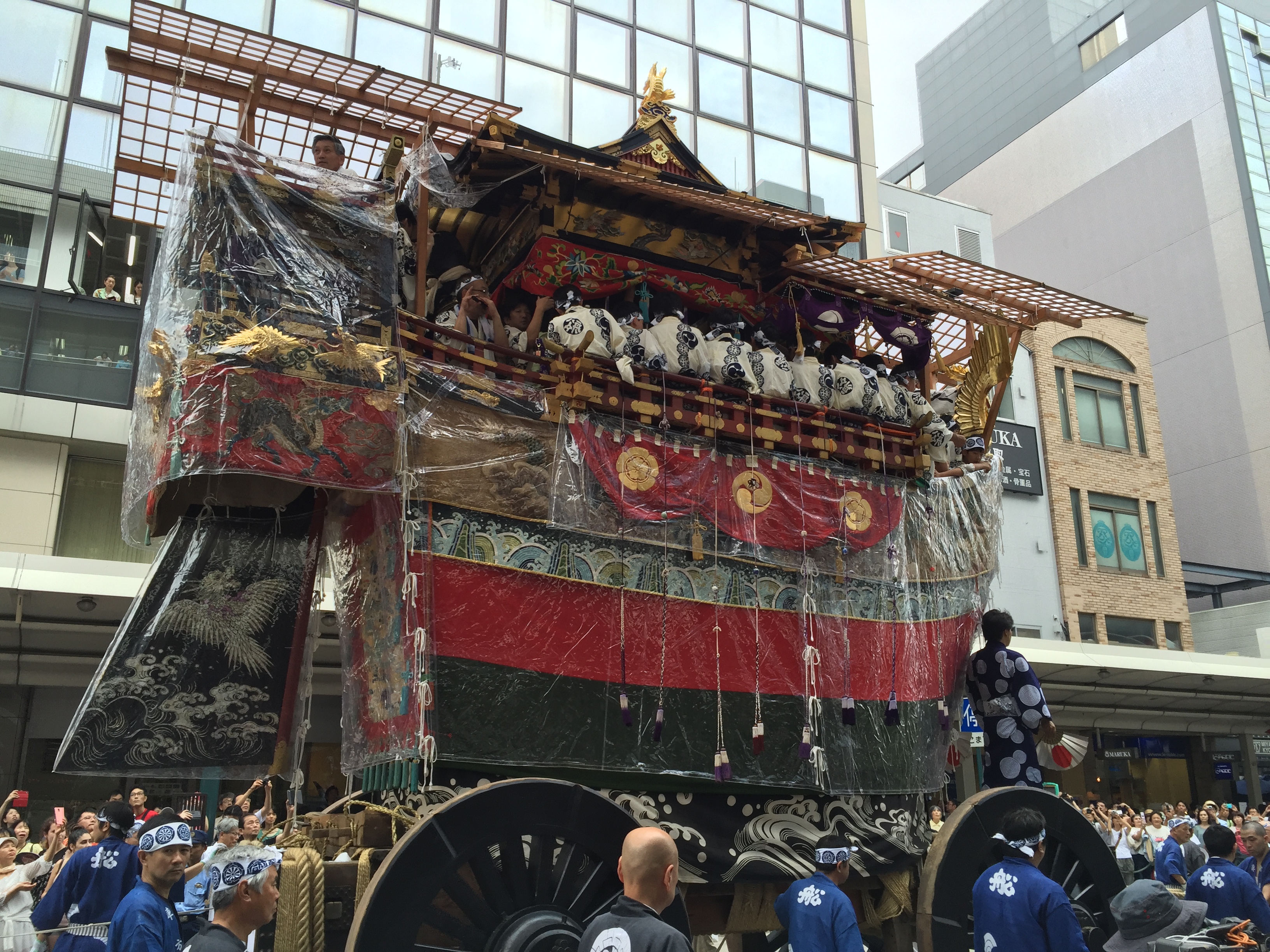 京都祇園祭りに、初めて行ってきました。1,000年以上も続く伝統あるお祭りでその荘厳な光景と、山鉾巡行の大きさに圧倒されました。心配された雨も降らず、少し曇り気味でしたので人出はすごかったです。大きな山鉾の写真を撮るべくどんどん進んで行くうちに、嫁さんと娘とはぐれてしまい子供の頃の私だったら泣いていたと思いますが、今は大人になったので泣きません。どころか、ケイタイのおかげで安心です。