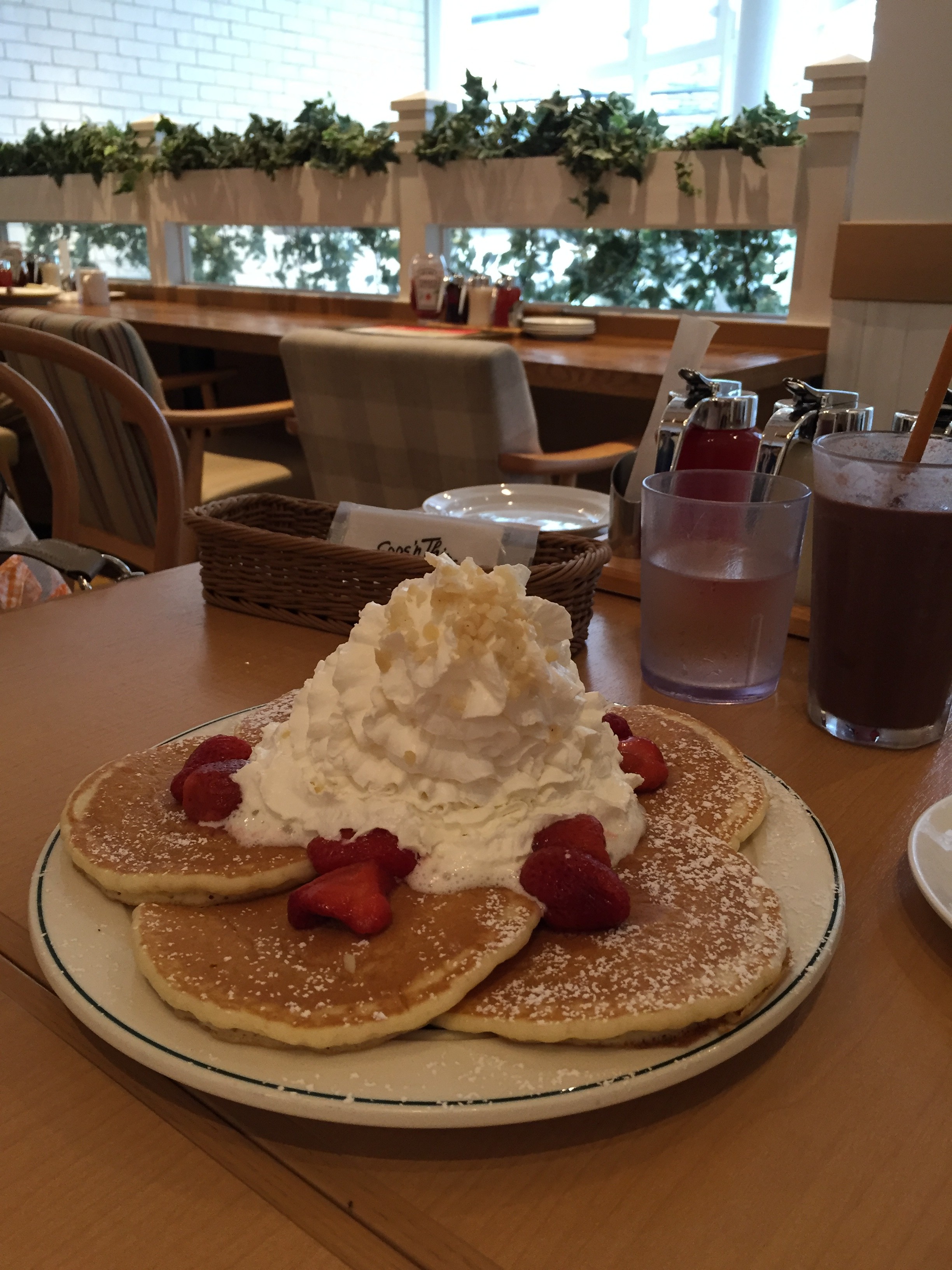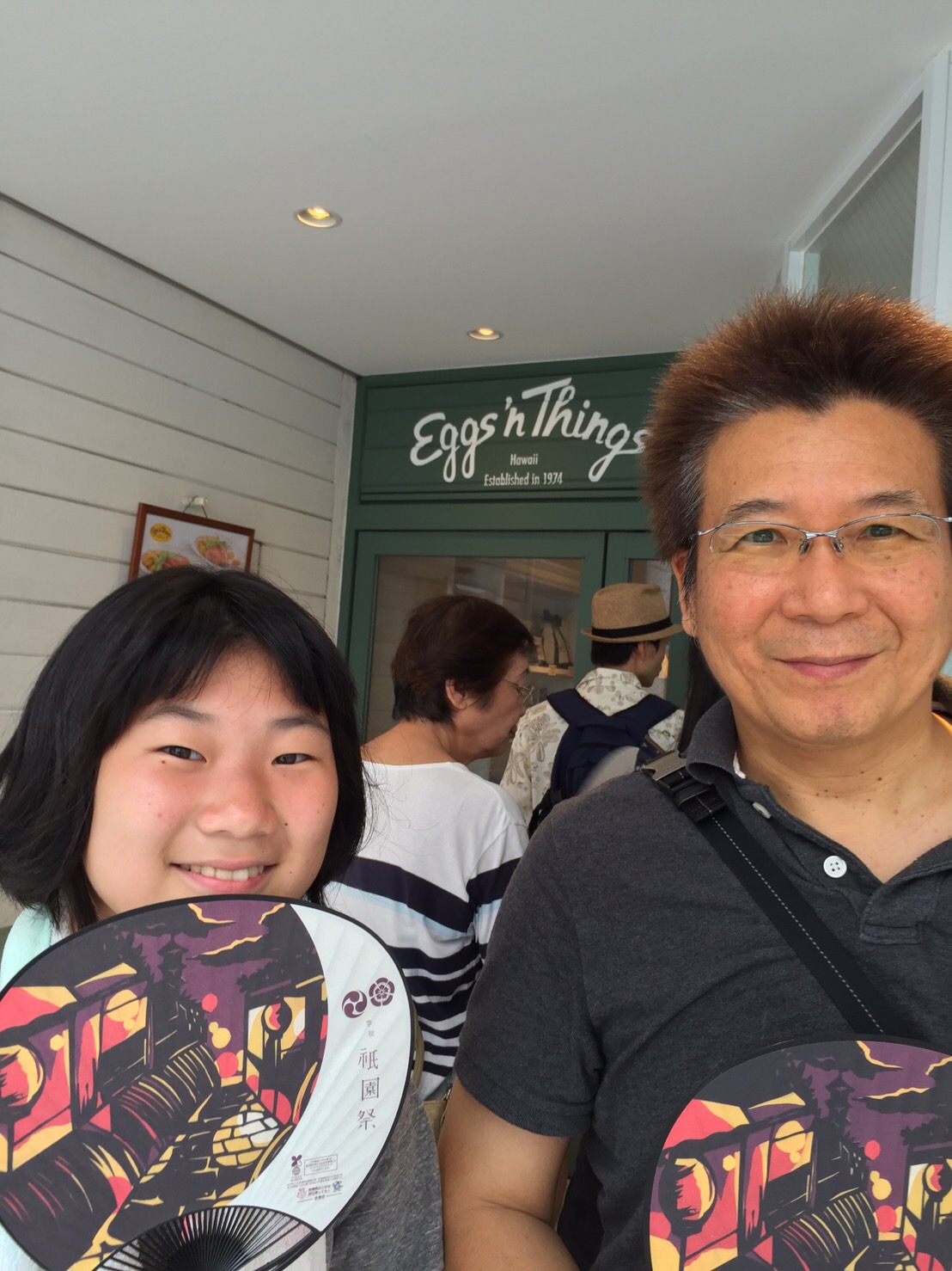 祇園祭りを、堪能した後、ハワイが本店のパンケーキの店・エグスン シングスでパンケーキと、アサイジュースでワイキキ気分を味わいました。