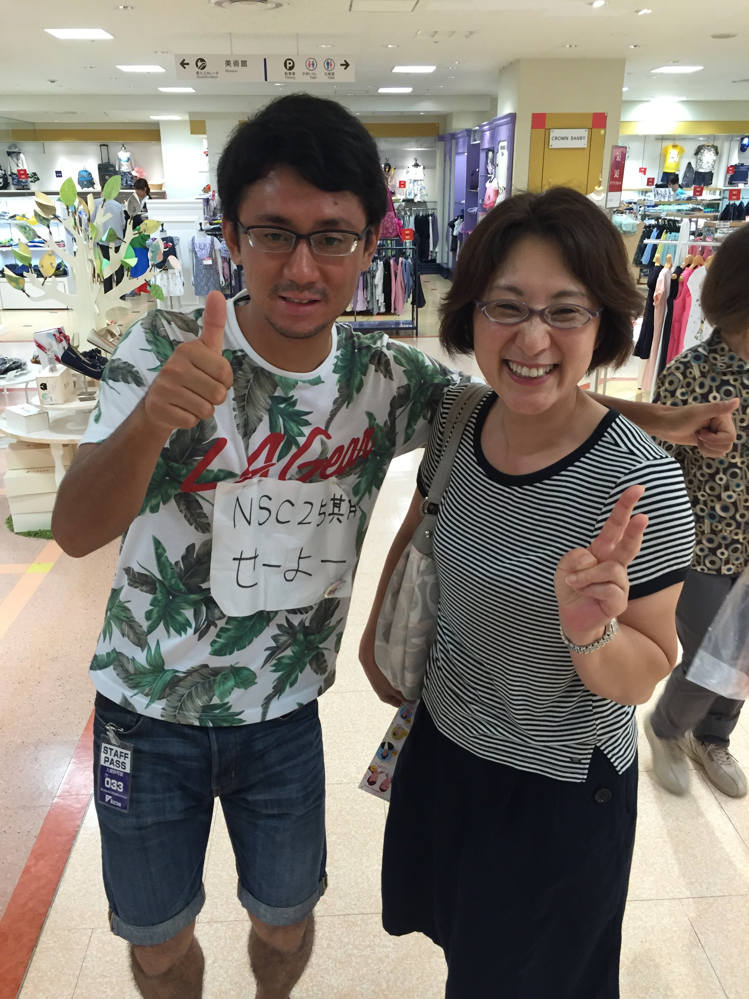 京都駅ビルでは、吉本芸人が描いた芸術作品の展示を観に行きました。その時に吉本の若手芸人に会場まで案内してもらいました。彼に将来、売れてくれよと頼んで嫁さんと記念撮影です。