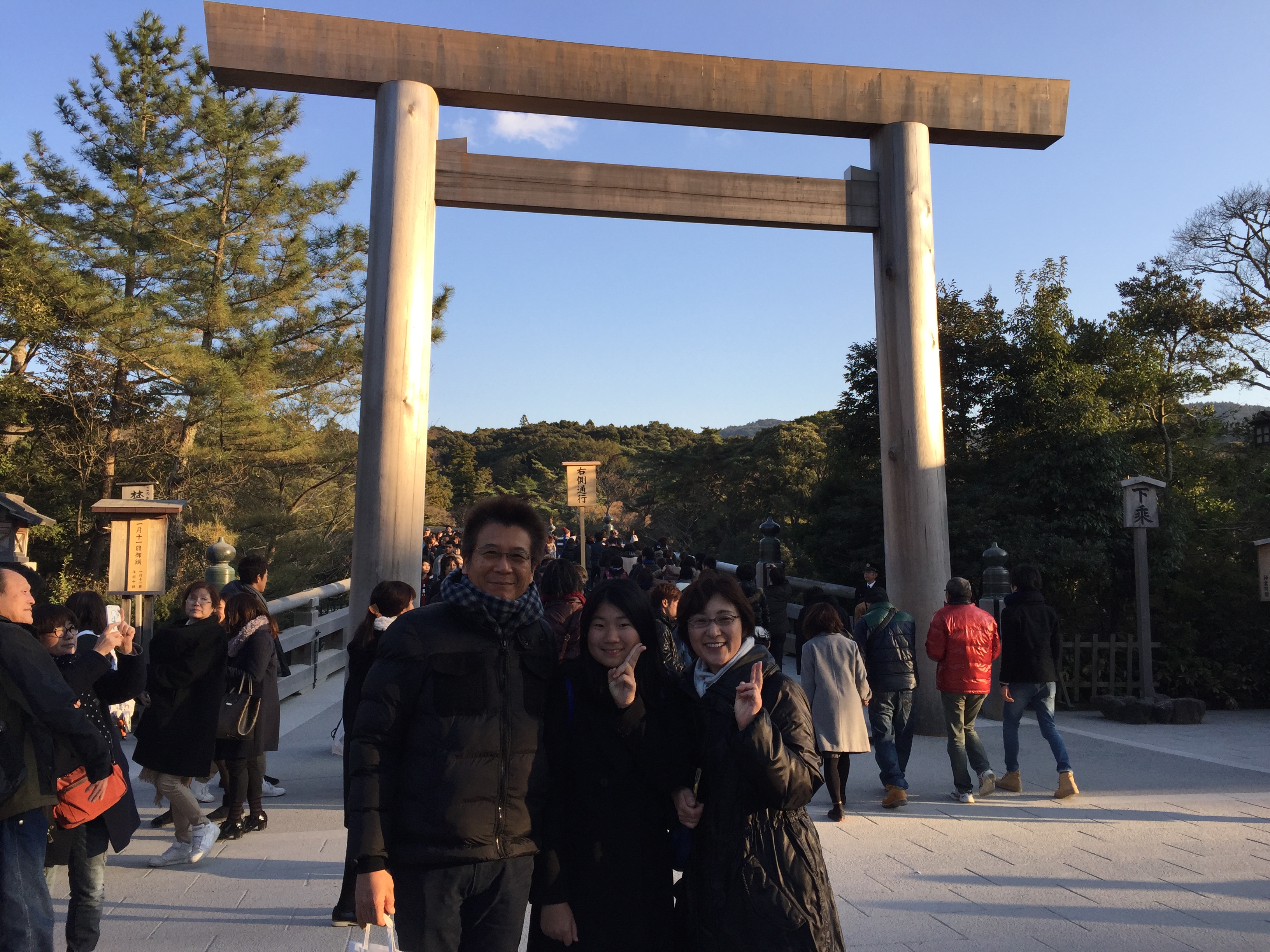 今日は天気も良かったので、お伊勢さんに新年のお詣りに行きました。成人の日と連休もあって伊勢市内の道路は混んでいました。そこであまり良くないのですが、伊勢のイオンに車を止めさせていただいて30分位歩いておかげ横丁を通過して内宮さんを詣りました。おかげ横丁は朝の地下鉄の通勤ラッシュのように大混雑で気を付けないと迷子になりそうでした。いや、迷子ではなく迷おじさんになりそうでしたが、大丈夫です。なぜならケイタイを持っているからはぐれても泣かなくていいのです。(コウジくんダイジョウブか?)内宮さんの大鳥居の前で一礼し宇治橋を渡り玉砂利を踏みしめ本殿に向かいます。ジャリッ、ジャリッという音は邪念をふり払っているように聞こえてきます。本殿に着きお賽銭はいつものように十分ご縁がありますようにと15円 。ニ礼ニ拍手一礼 ありがとうございました。と、感謝を伝えてきました。お札を買い、宇治橋を渡り大鳥居をくぐり一礼してお詣りを終えました。きっと良い一年になりますように!