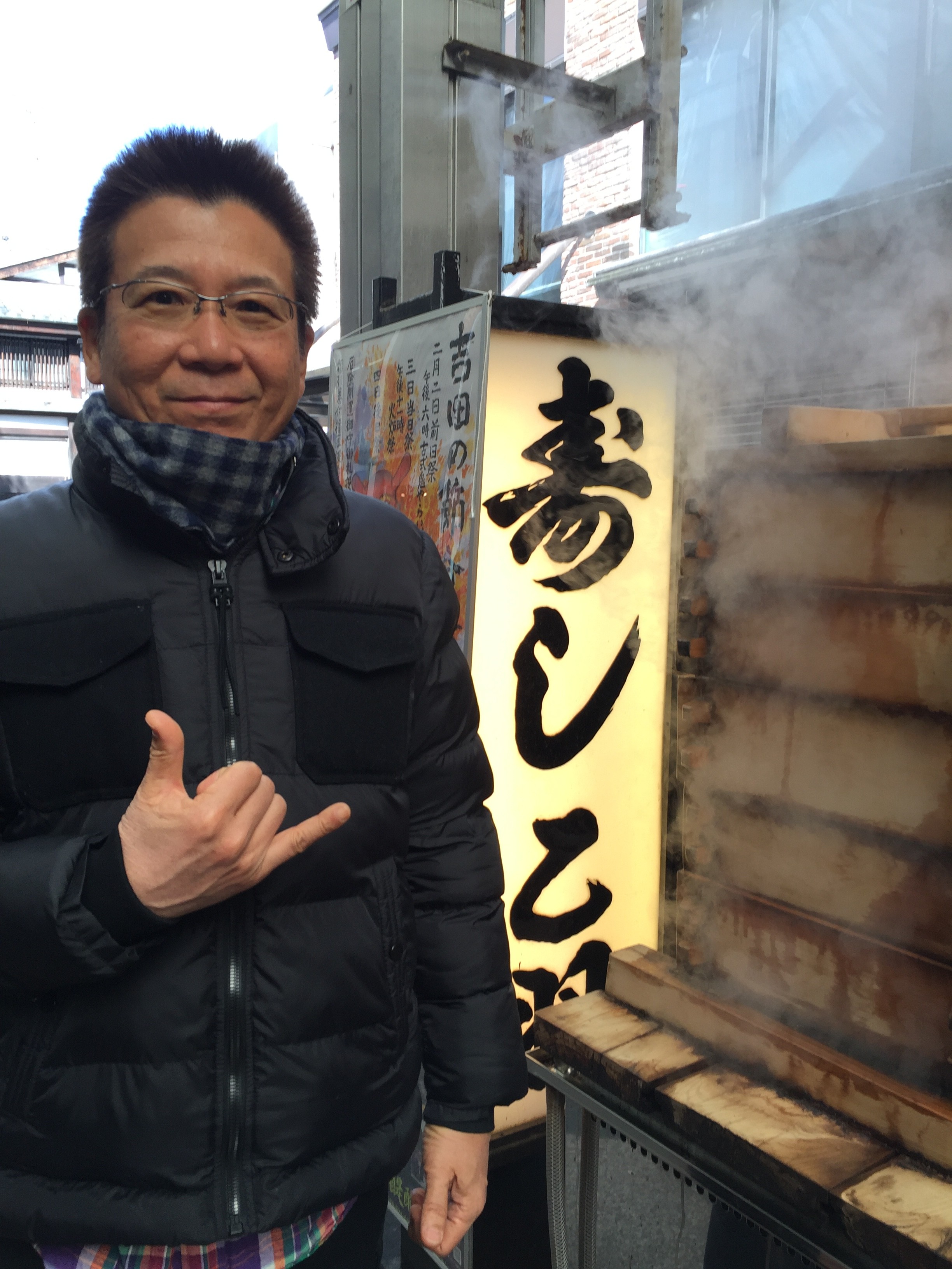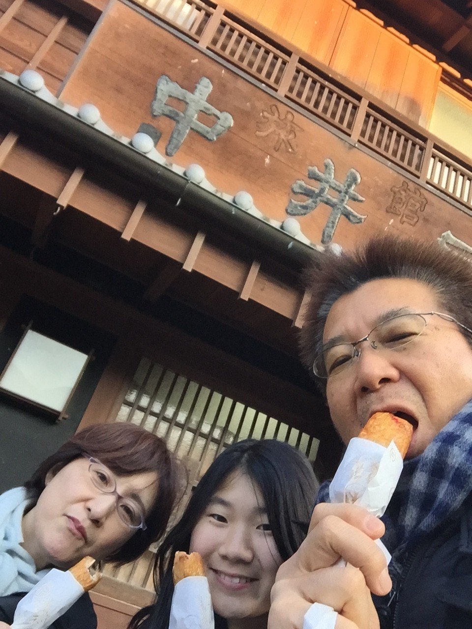 帰りにいつものように、おかげ横丁で虎やの新春限定ういろうを買い、出来立ての暖かいまる天のタコ棒と、アツアツのコロッケを食べました。