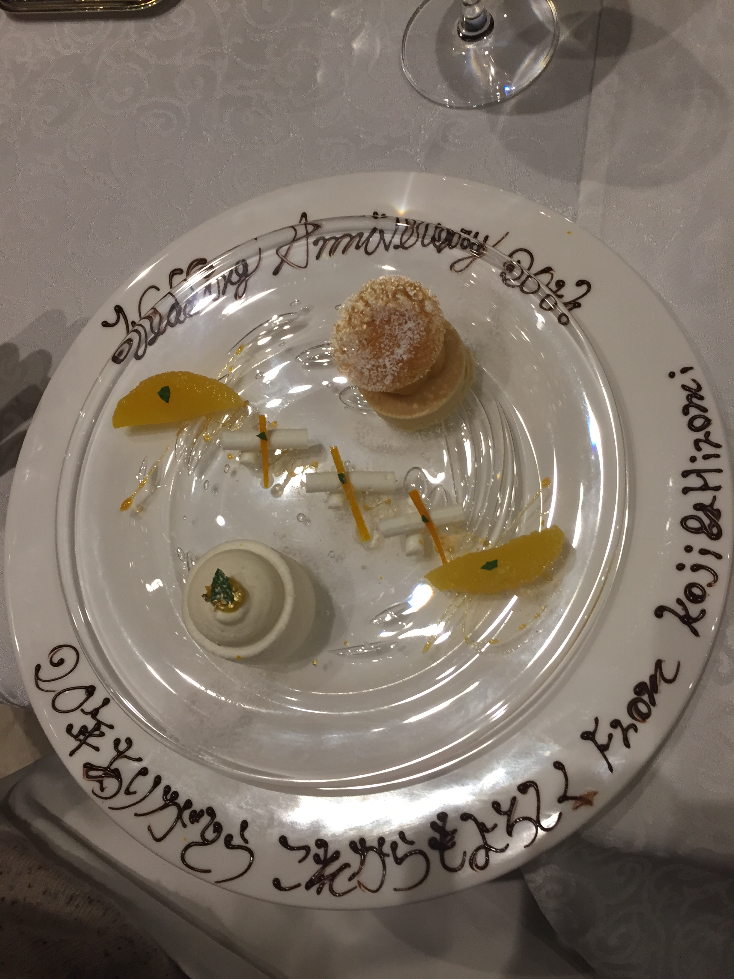 20周年記念パーティとして、津市のパルムドールでフレンチを食べました。パルムドールのシェフは料理の鉄人で、フレンチの坂井を破った方です。最高に幸せな時間を家族で過ごしました。内緒でプレゼントを購入し、事前にパルムドールのスタッフと打合せをして妻へのサプライズプレゼントをしました。妻も、少しウルッときたみたいでした。これからもよろしく。銀婚式、金婚式とその節目にまた、みんなで美味しいものを楽しく食べようよ。その時にはまた、サプライズ考えておくからみんな元気でいようね。