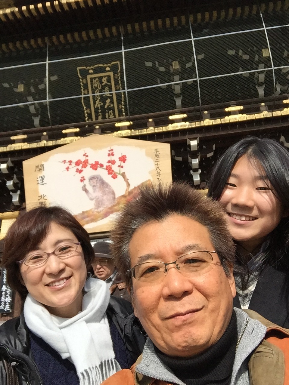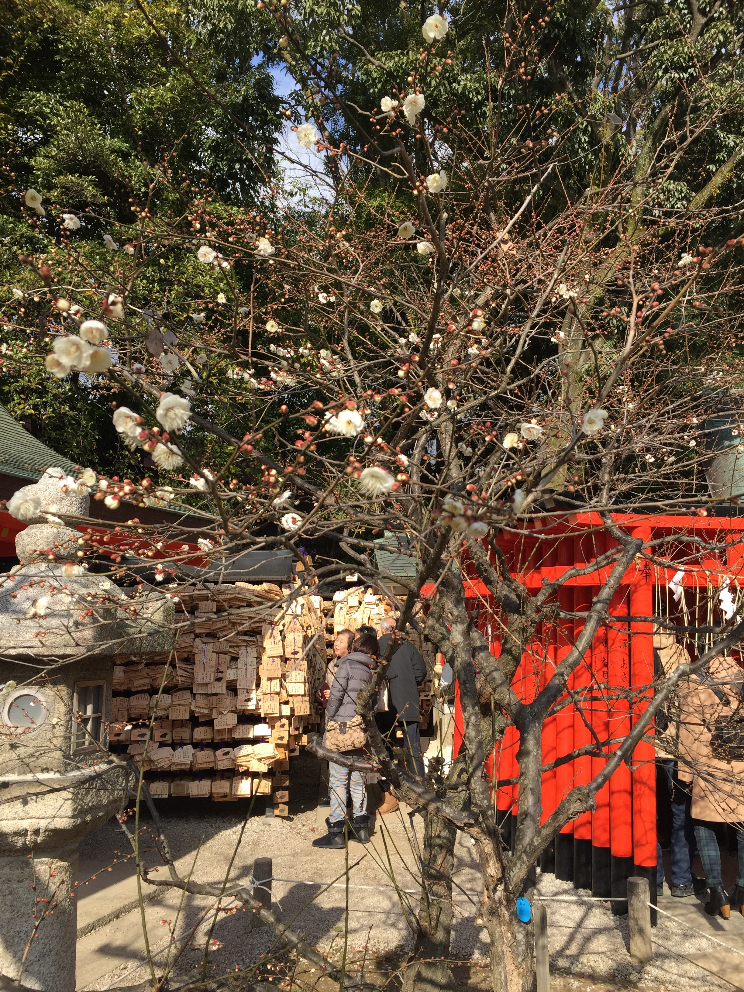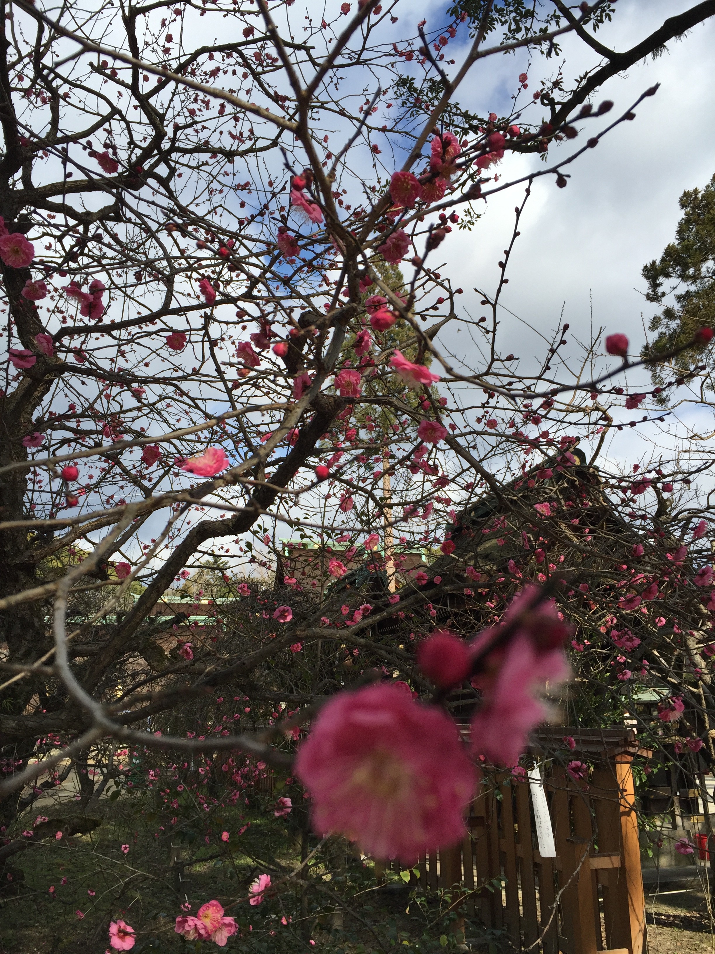 今日は京都北野天満宮にお礼参りに来ました。びっくりしたことに、もう梅の花が咲いてました。暖冬の影響なのでしょうね。学問の神様菅原道真公に「お勉強が出来るようになりますように。」とお願いしました。娘の祈っている時間が何となく少し長く感じられました。