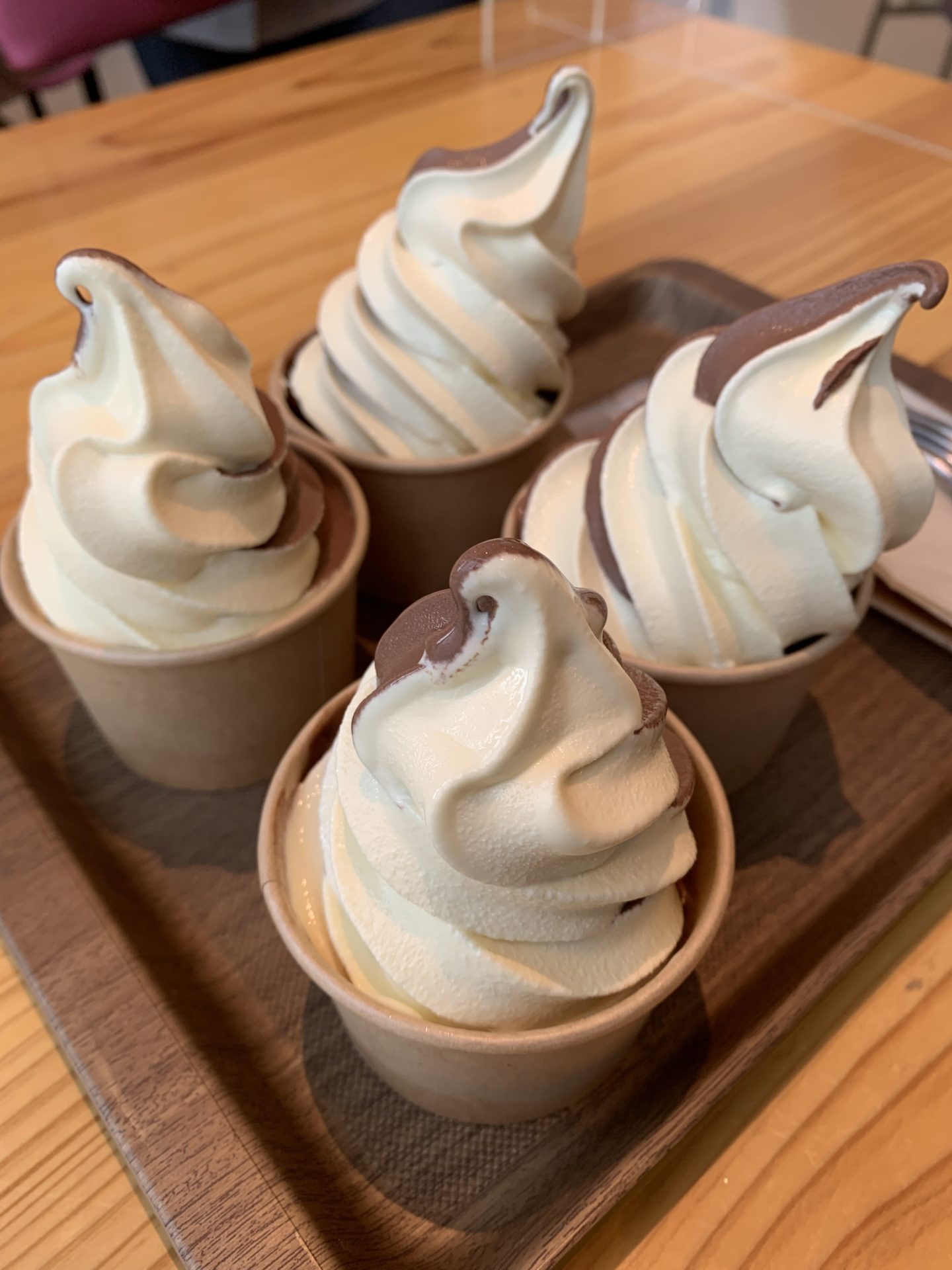帰りには大台町にできたヴィソンに立ち寄りました。とても広い敷地を隅から隅まで散策しました。出汁(ダシ)のお店での試飲をしている時、幼稚園の男の子が「ええダシでとるなぁ。」とのコメントに笑いました🤣。ひょっとして神田川さんのお孫さんですか?のツッコミを入れてしまいそうでした。お目立てのケーキ屋🎂さんのショーケースには綺麗な美味しそうなケーキが沢山並んでいました。価格は・・・。やっぱり、それぐらいはするよねー。お昼が豪華だったので目の保養だけにしました。日本全国の地場産の御味噌の店で珍しい御味噌を買い、わらしべの丸い形の温かい鯛焼きを買い、さっきの目の保養のケーキ屋さんでソフトクリームを食べながら鯛焼きを食べました。モチモチの食感の鯛焼きは熱々がとても美味しかったです。