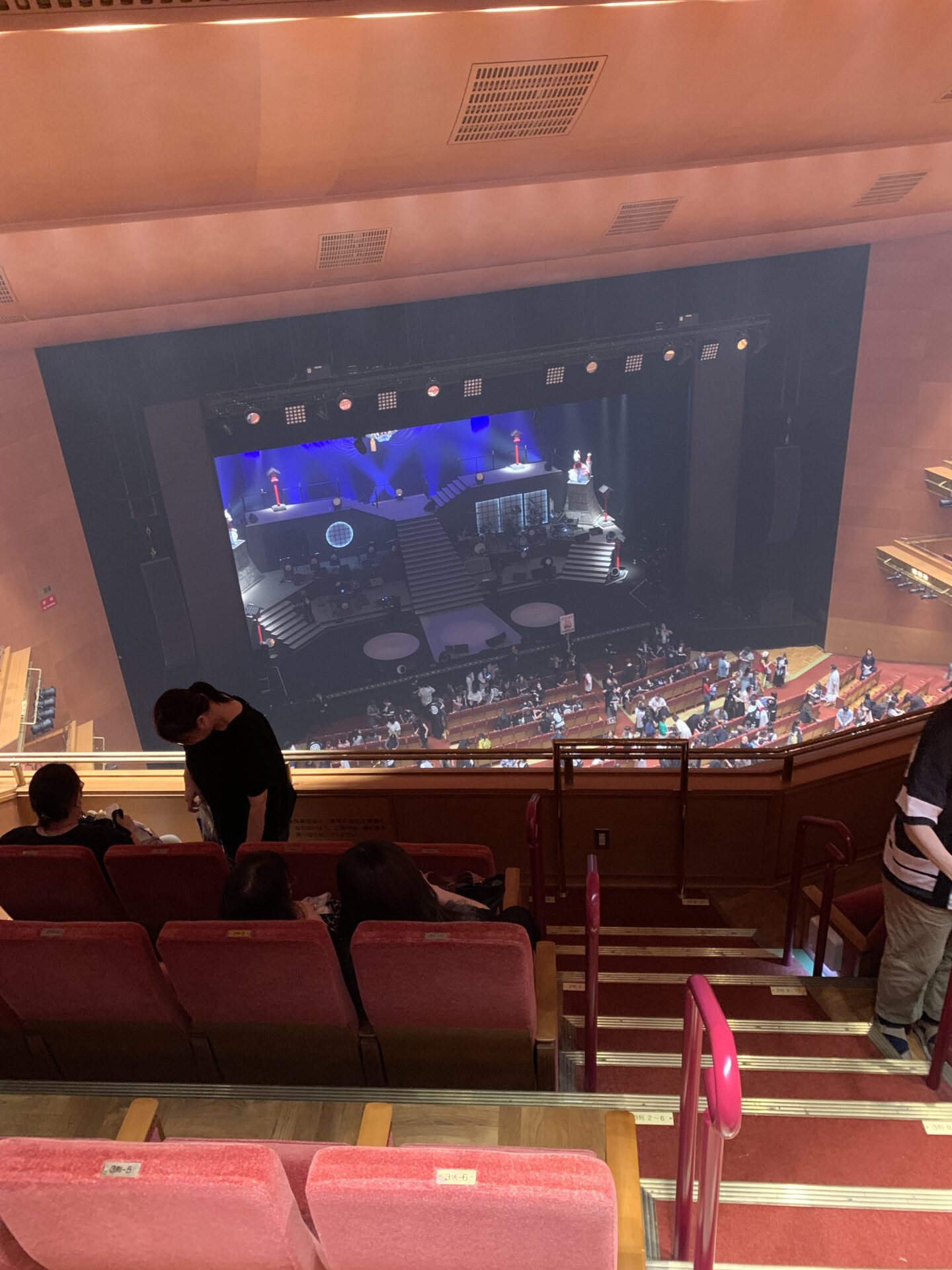 あいにくの雨です☂️。でも、またあの感動を味わえると思うとあまり気になりません。しかし、一抹の不安があります。5階席なのです。大阪城ホールよりは小さいのですが、高所恐怖症の私にとってどんな感じなのか心配です。17:30開場チケット🎫を握りしめて会場に入ります。先ずは、大阪城ホールで買えなかったTシャツL寸をゲットする為、グッズ売場へ。不吉な予感。予感的中🎯。エル寸は売り切れ。大阪城ホールから既に無かったみたいです。痩せる事を前提として、「M寸でもいいです。」「M寸でよろしかったですか?後日の返品交換はできませんが、M寸でよろしかったでしょうか?」とバイトの可愛いスタッフが私の体型を見て言いました。私からやっと出た言葉は、絞り出す様に「娘へのプレゼント🎁です。きっと喜ぶなぁ。」と。娘へのプレゼント🎁になるかも知れないTシャツを抱えて5階席へ階段を登ります。一緒に登っていくお客さんの数が段々と少なくなっていきます。同じ気持ちを抱きながら。「大阪城ホールで見たからいいか。」前を歩いてる二人組の女性から聞こえてきました。少し気分が楽になりました。席に着くと、まさに舞台を見下ろす感じです。北斗の拳のミュージカルよりも遥かに高い。大阪城ホール公演と同じペンライトをもらい、点灯チェックオッケー。さあ、開演です。真面目にふざけて前半は、お芝居です。内容は分かっているのですが、あまりにものくだらなさ(いい意味で)に爆笑🤣です。ミュージシャンのライブで爆笑です。後半は、ヒット曲のメドレーでした。大阪城ホール公演とは構成が全く違っていました。ずっとスタンディングで、ノリノリでした。嫁さんもペンライトを夢中で振っていました。舞台狭しと踊り、歌うカールスモーキー石井は私と同級生(学校は違いますが)とは思えない程です。前半であれだけふざけていた人とは別人と思える程でした。大興奮の中、コンサートは終わりました。同じライブを二度見たのは今までで、子供が幼い頃にハウジングセンターでプリキュアショーを見て以来でした。5階席というはじめは少しガッカリしていましたが、その距離を感じさせい位のエネルギッシュなショーでした。