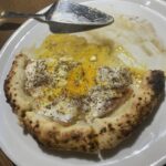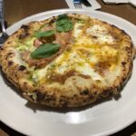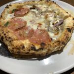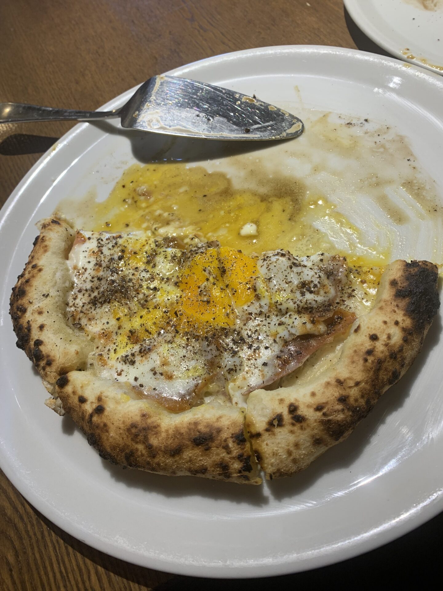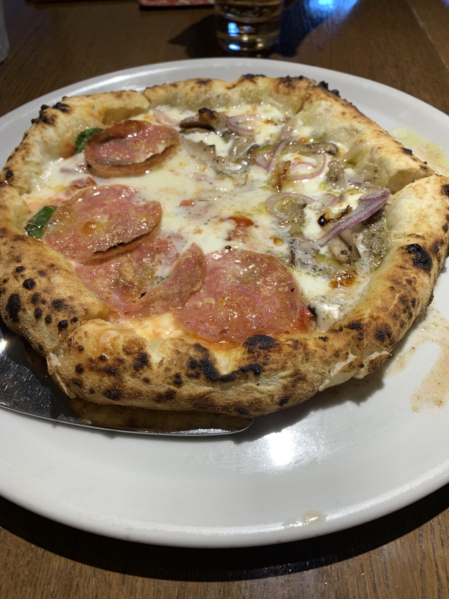 鈴鹿市駅近くにある美味しいピザ屋🍕さん『モチーベ』に行きました。ミシュランガイドの5000円以下でお値段以上の美味しいものがいただけるお店を紹介する『ビブグルマン』に掲載されたお店です。以前から気になっていた店に今日は、ばっちゃんも一緒におしゃれにピッツァ🍕を食べました。予約なしで行ったので1時間近く待ちましたが、待っている間、私が育った神戸の町だったので当時の事を思い出しながら、ばっちゃんと話しているうちにあっという間に時間⏰は過ぎました。こじんまりとした店内は、おしゃれな空間でした。愛想の良いスタッフがメニューを持ってきて内容を丁寧に説明をしてくれました。ランチセットを選択。3人分だと少し多いかもしれませんのアドバイスを頂きましたが、大食漢の我々は「大丈夫です🙆」と。前菜に生ハム、小さいコロッケ、サラダ🥗。ピッツァ🍕はビスマルクをメインとして、サラミ、キノコ、ピスタチオソースのピッツァ🍕を注文。運ばれてきたピッツァ🍕の大きさとクオリティに満足。先走る食欲を抑えて、お皿につけてくれるまで、賢い犬🐶の様に待て🫷。滴り落ちる自家製チーズ🧀をこぼさない様に最大限の注意をして食べました。むっちゃ美味しい😋。出ました。「うますぎちゃん」ワイルドだろ〜。ほんと‼️91歳の誕生日を迎えたばかりのばっちゃんも、こんな贅沢なもの食べた事ないと大絶賛でした。ビスマルクは写真を撮るのを忘れるくらいでした。半分食べた時に気が付き記念撮影。デザートにティラミス。これも絶品😋でした。はじめにスタッフの方が言っていた様にお腹いっぱいになりました。充分に満たされたお腹と、美味しそうにピッツァ🍕を食べているばっちゃんを見て心満たされました。また、来ようねと約束して帰宅しました。