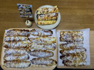 明日はバレンタインデー💌です。板チョコアーモンドパンを患者さんにプレゼント🎁しようと昨日、朝から晩までかけてホームベーカリーフル回転させて作りました。味はスタッフからも大好評で自信作です。板チョコ🍫を大量にイオンで調達し、スライスアーモンドも予備を購入。ホームベーカリーで生地を作り、生地を20分ねかせてから成形します。板チョコ🍫を生地の上に乗せて生地を編みます。四十度で20分間二次発酵します。ハケで照りをつける為溶き卵を塗り、アーモンドスライスをのせます。オーブンで焼けば板チョコ🍫アーモンドの完成です。オーブンで二時発酵している間、ホームベーカリーで生地を作ります。その作業を3回繰り返しました。沢山並んだ『板チョコアーモンドパン』は圧巻です。まるで、パン🍞屋さんです。プレゼント🎁用にラップで包み、オシャレな包装をしました。患者さんにこの美味しさを共有してもらう為に、ワクワク😀しながら。そして今日、患者さんにプレゼント🎁です。受付の嫁さんは「これ、先生が作ったんです。よかったら食べてください。」と手渡すと、ニコニコ☺️しながら「先生が?すごく嬉しいです。帰って食べるのが楽しみです😊。」と。待合室は一足早いバレンタイン💌です。ほのぼのとした空気が流れていました。
