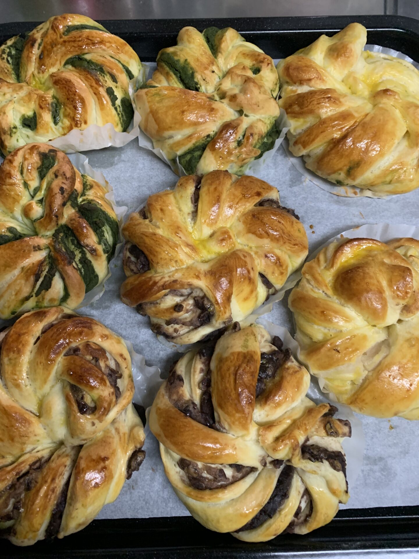パン🍞を作る事が楽しくて楽しくての日々です。そして焼き上がったばかりのホカホカのパンは最高😊に美味しいです。そして、その美味しさを分かち合う為に、喜んでくれる人の顔を思い浮かべながら作っている時間が⏰楽しいです。今日はスタッフに『しましま抹茶あんぱん』『しましま粒あんぱん』を作りました。前にあんぱんを食べてもらった時には、美味しかったと喜んでもらえました。味には自信があります。先々週に患者さんにあんぱんをプレゼントし家に持って帰ってもらい娘さんと食べたら「売り物でも十分いけるよと、先生に伝えてね。」のお返事を頂きました。そんなパン作りにハマっている私にプレゼントがありました。『コック帽🧑🍳』です。ジャムおじさんの体型になってきてる私がコック帽を被れば、もうジャムおじさんです。診療中に仲良しの患者さんに、コック帽🧑🍳をかぶって話しかければ大爆笑😂でした。全ての治療が終わり半年後の定期検診を約束した患者さんには「今度来た時には、受付の歯ブラシ🪥の隣に、パンが並んでいるかもね。」「歯医者の匂いではなく、待合室には甘〜い焼きたてパン🍞の匂いがしているかもね。」「チリンチリン、メロンパンがただいま焼けました。」になっているかも。