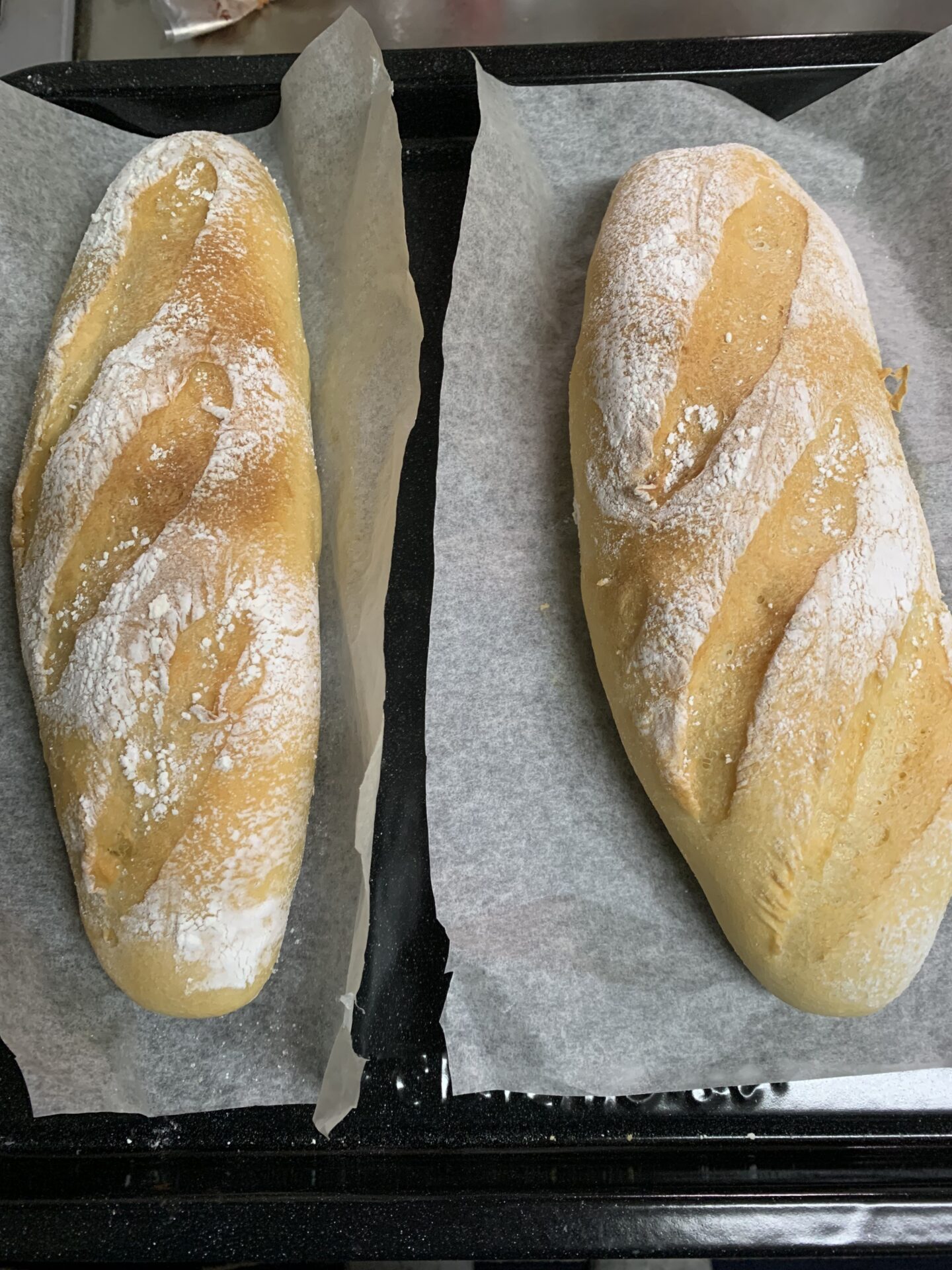休日の前の夜は、パン🍞を仕込んでいます。いつも世話になっているご夫妻と食事会🍽️の予定が入っていたのでお土産にと『シマシマ抹茶あんぱん』を作っていきました♪今日は、嫁さんのリクエストに応えてカンパーニュを作る予定でした。休診日に技工作業をしていると急患さんがみえました。痛みを除く処置を済ませました。その時には、カンパーニュパンの二次発酵途中だったので患者さんも心配でしたが、パン生地も心配でした。自宅に帰るとパン🍞の作業を続けました。夕食前にはカンパーニュ完成です。嫁さん特製グラタンに私の作ったカンパーニュパンは最高のコラボでした。クリームソースにパンをつけて食べれば、またまたマイウーです。バゲット🥖作りも並行していたので焼き上がりが10時でした。焼きたてのバゲット🥖が気になって気になっての人がいました。早速、カットしてお皿の上に並べて持って来ました。嫁「バゲット🥖どうするの?」私「明日食べようと思ってるよ。」嫁「焼きたて美味しいと思うよ。」「10時過ぎてるし、さっき、お腹いっぱいって言ってたじゃない」嫁「一切れだけ食べたい。」「食べていいよ。」「一緒に食べよ。」「太るし、どうしょう?」「太ってるから、イイじゃん。」と、共犯者がどうしても欲しかったパン泥棒🍞でした。バゲット🥖むっちゃ美味しかったです。