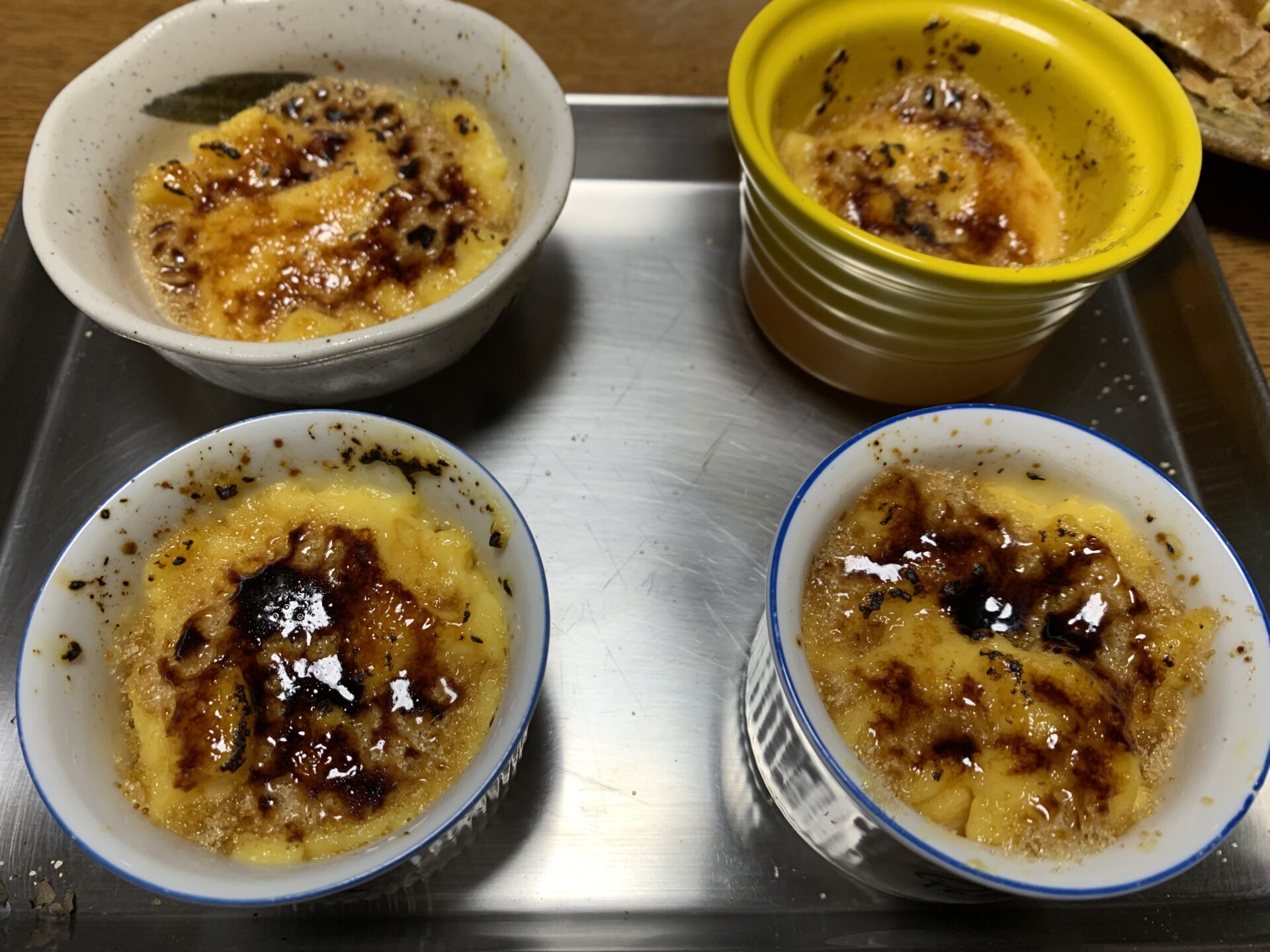 今年になってパン作りに🍞ハマっています。パイ生地を作ってからいちご🍓のミルフィーユを作った際に、カスタードクリームが簡単に作れるレシピをマスターしたので、いつも頑張ってくれているスタッフにクリームブリュレを食べてもらおうと、前日から張り切って準備して出勤しました。自宅からパーナーとキャラメリゼする砂糖を持参していきました。昼休みにライブでキャラメリゼしようとワクワク😀してきました。仕事中も不謹慎ではありますが、頭の中でシュミレーションしていました。午前中の仕事を終えて、医局でカスタードクリームの入ったココットを出して、ブリュレ用の砂糖を乗せてバーナーに着火。ライブ調理です。「あれっ?」私の期待していた様なスタッフの反応は薄く、ひょっとして私は嫌われているのではと・・・。原因がよく分かりました。それは、産休で休んでいるスタッフがお子さんを連れて来ていたからです。スタッフみんなは、赤ちゃん👶に「可愛い、可愛い。」の連呼でした。とても可愛い赤ちゃん👶です。そりゃ、おっさんのパティシエごっこに付き合っているよりも、可愛い赤ちゃんに触っている方がいいもんね。午後の診療時に恐る恐るスタッフに聞いてみました。「ブリュレ美味しかった?」「はい」とにこやかに。「先生の事が嫌ですか?」「そんな事はないですよ。」と笑いながら😆。赤ちゃん👶の仕草は、周りの人達の心❤️を温かくしてくれるのですね。