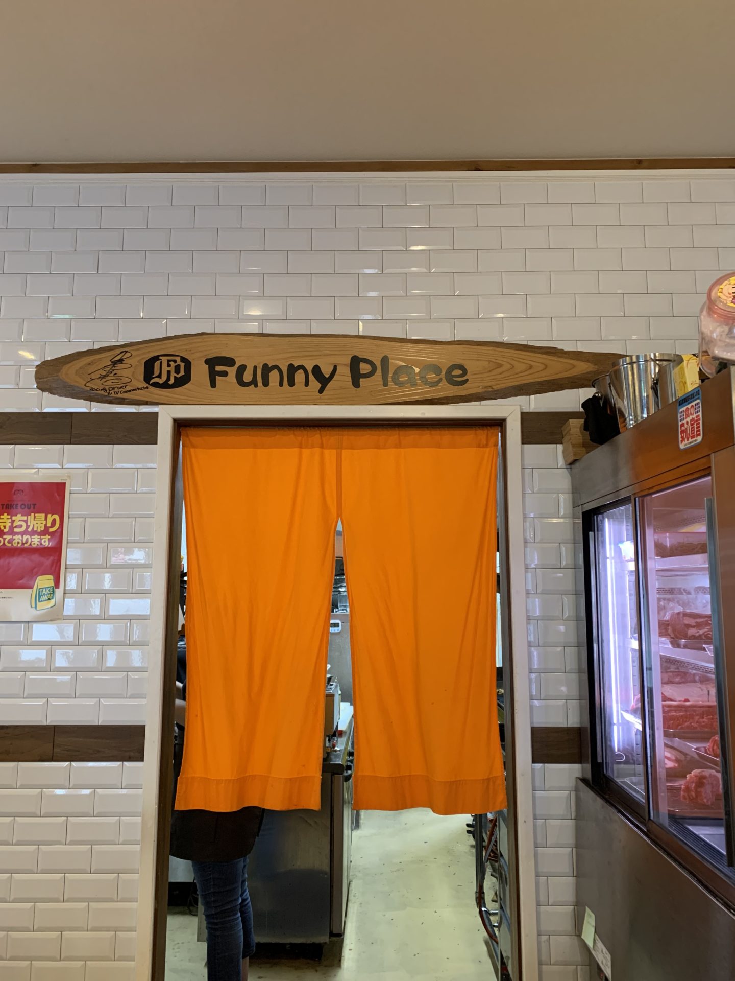 院長日記を読んでくれている患者さんの中に私達榮家と同じ好みの味覚を持っている方がみえます。その患者さんが来院された時には、治療そっちのけで情報交換をします。ビックリドンキーのハンバーグの話になった時に、ハンバーグ談義となりました。そこで『ファニープレイス』のディナー🍽のハンバーグが美味しくてボリュームがあるとの情報を得ました。早速、ひろみ財務大臣と審議、翌日木曜日のランチに来訪しました。野町『ファニーレイス』初めてのお店にワクワク。とっても信頼できるCIAにも勝る情報源。期待値は上げ上げです。フレンドリーな店員さん(奥さんかな)にカウンター席に通されました。業務用冷蔵庫には熟成されてる美味しそうなお肉が行儀良く並んでいました♪オレンジ色のカーテンの向こうは厨房が見えます。メニューが渡されました。『ステーキ丼』迷いはありませんでした。なぜならステーキ🥩が好きだから。オーダーが厨房に通るとマスターがステーキ🥩肉をカットしている姿がオレンジ色のカーテンの間から見えます。ジューッと心地良いサウンドと共に、五感、特に嗅覚を刺激する美味しそうな匂いがそのカーテンをくぐり抜けてきます。「お待ちどうさま。」ステーキ丼の登場です。見た目良し👌。柔らかくて、とても美味しかったです。至福の時間を過ごし、再来店を誓いました。今度はディナー🍽で来たいと思いました。CIAの情報によると夜のチーズハンバーグはかなりのヘビー級であるとの事です。朝から何も食べずに参戦する意気込みです。