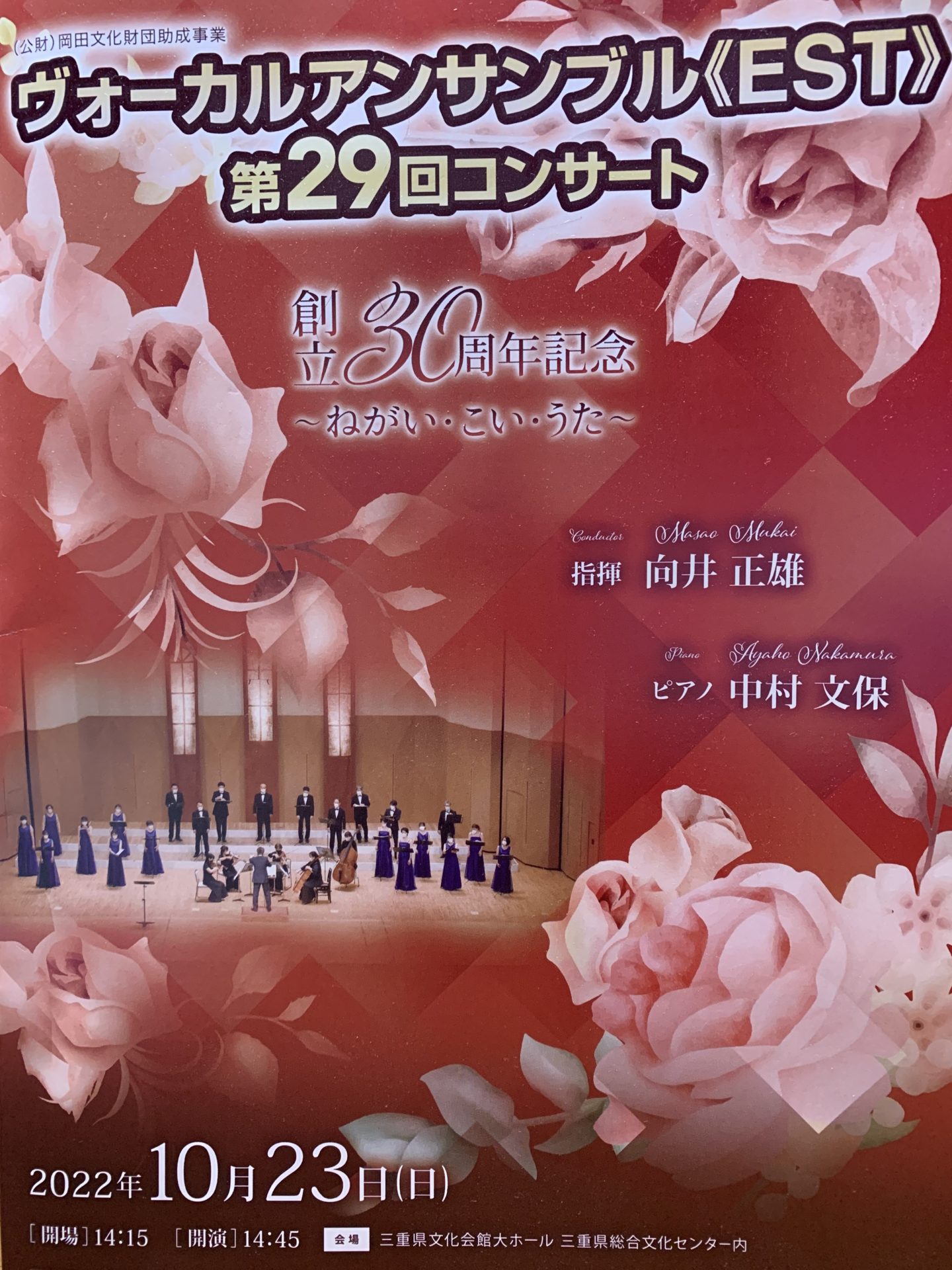 『EST』は三重県津市を拠点に活動している混声合唱団です。長女が今年からメンバーにさせていただきました。7月には県合唱コンクール中部大会シード出場 9月には中部合唱コンクー金賞受賞と輝かしい成績を収めている合唱団です。そして今日、三重県文化会館大ホールにて単独ライブがありました。このライブの為に彼女は、一生懸命に練習していました。エストニア語?なのかわかりませんが外国語の合唱の歌声が彼女の部屋から聴こえてました。とても高尚な合唱曲です。榮家は特別な用事が無い限りは家族のイベントには必ず参加する事が掟となってます。ですので、おじいちゃん👴おばあちゃんも合唱コンサートに行きました。でも少し心配事があります。高尚な合唱の調べで眠りに落ちてしまわないかと。文化会館会場に着き開演までの少しの時間並びました。思ったよりも人気のコンサートです。後で聞けば500人位の来場者だったそうです。一階中央1番良く見える席に着きました。コンサートが始まりました。神聖な宗教音楽から始まりました。心地よい歌声は上まぶたの重力に対する抵抗を無くさせてしまいます。まさに良い夢見心地になっていると眠っている自覚は無いのですが、隣に座っている嫁から肘鉄が入ります。小さな声で「旦那さん、いびきかいてたよ。」「うそっ!」心配していたおじいちゃん👴おばあちゃん👵は頑張ってる孫の晴れ舞台を真剣に見ていました。私、反省。休憩を挟んでの2時間余りの合唱コンサートはとても素晴らしかったです。