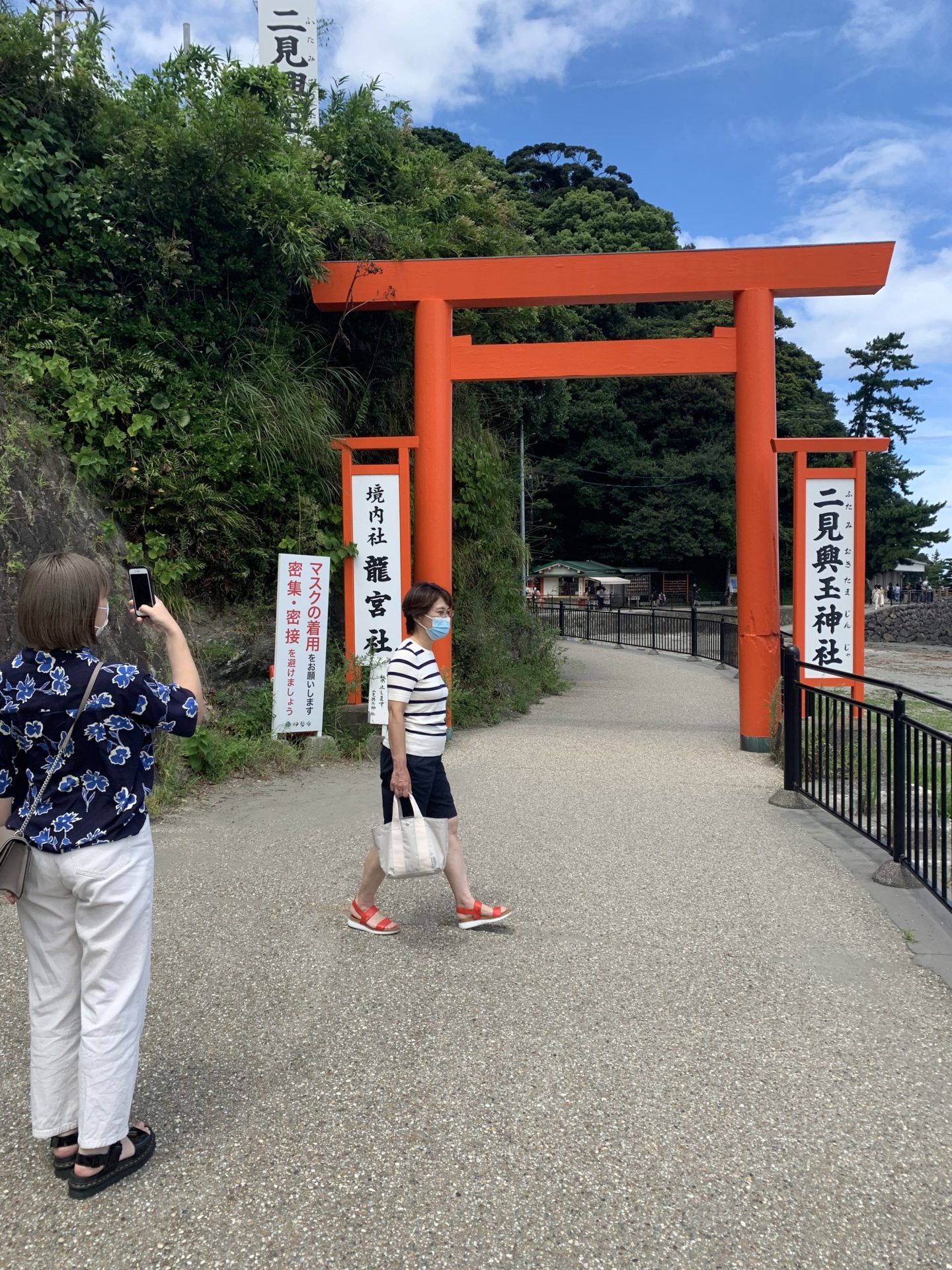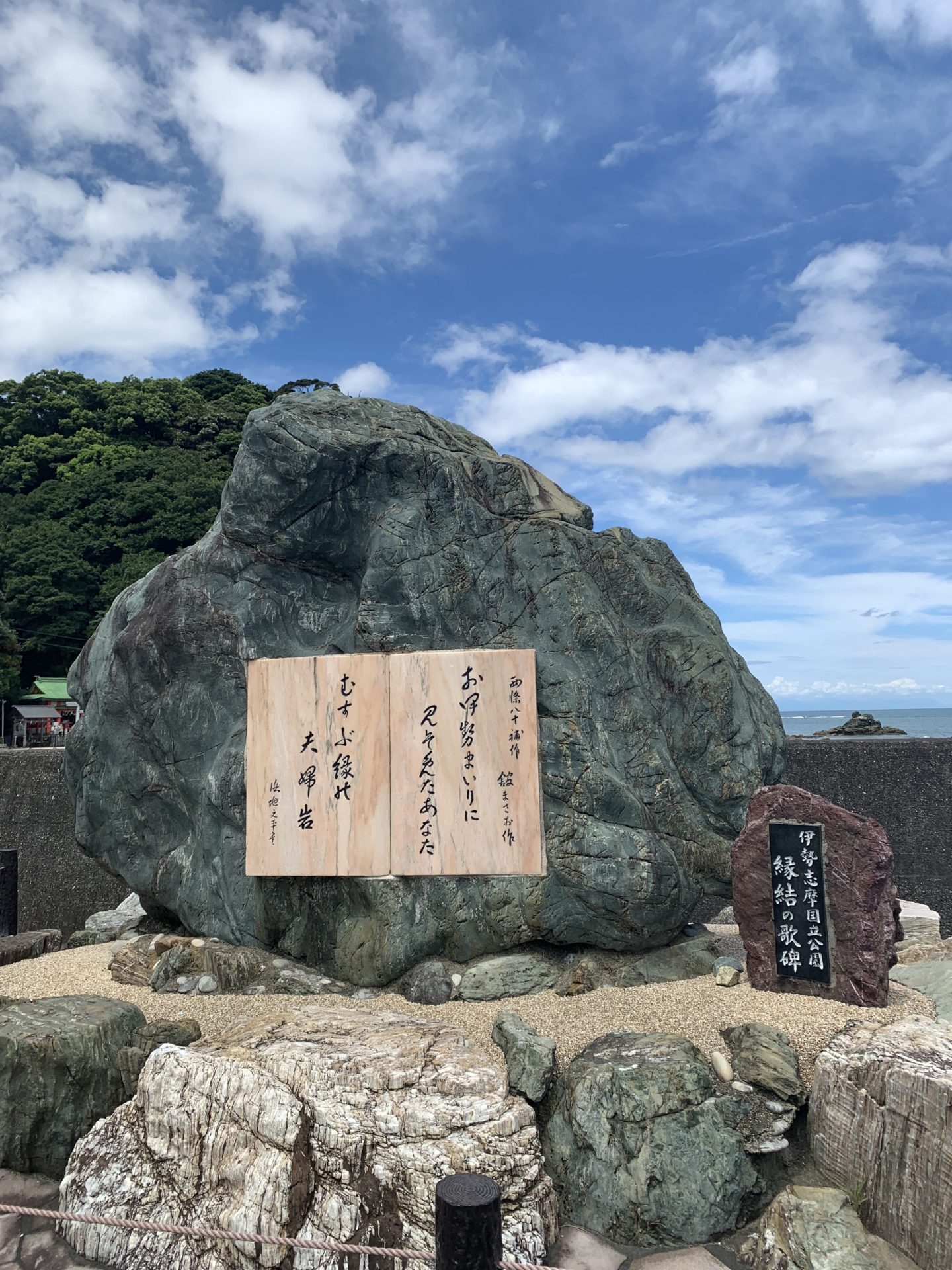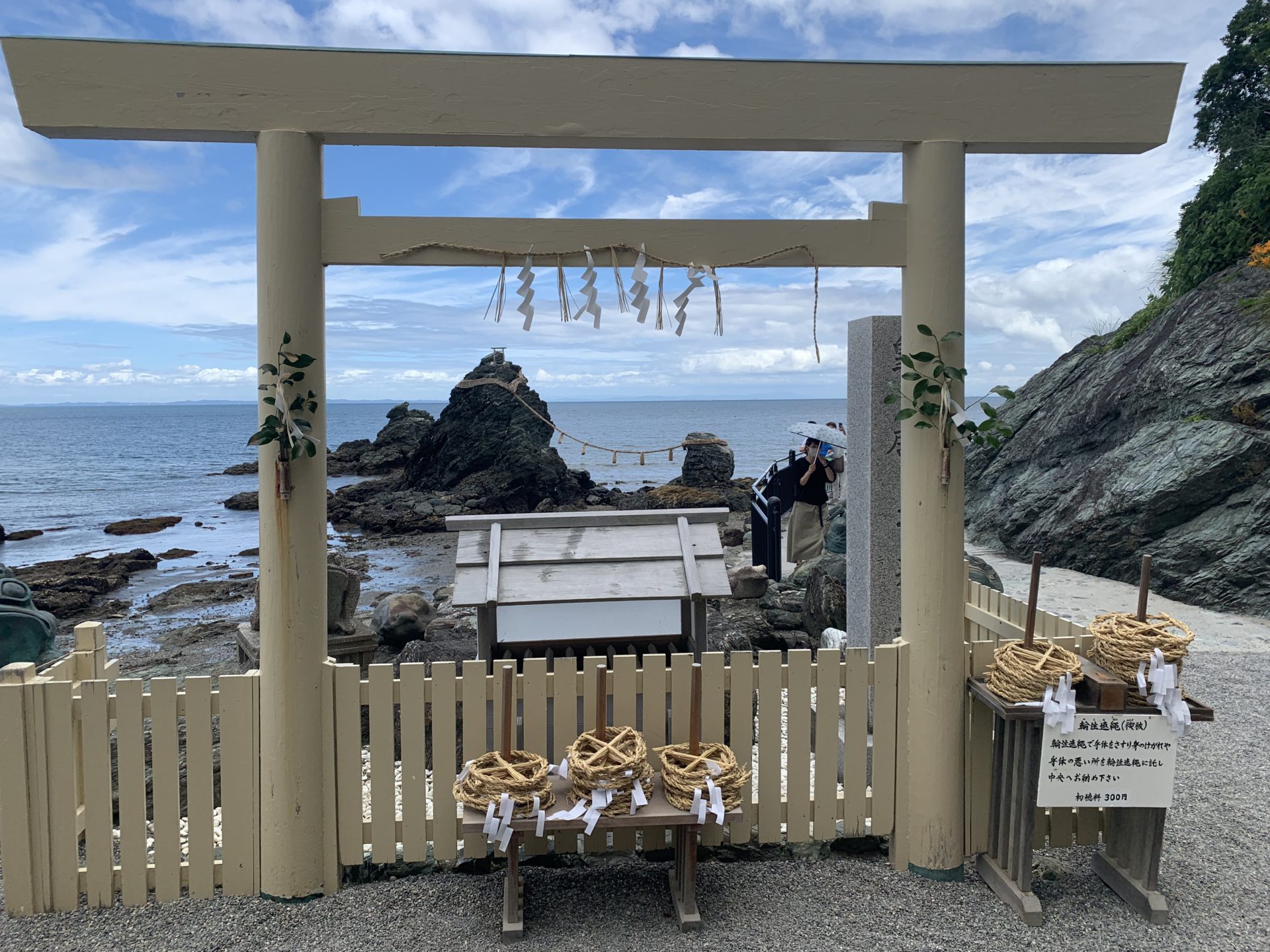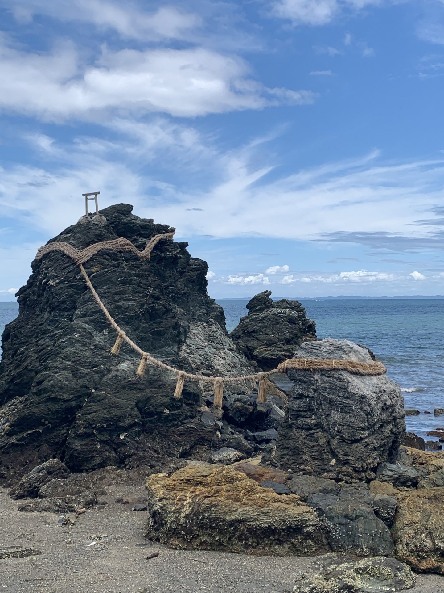 夏休み、久しぶりに二見浦の夫婦岩に行きました。夫婦円満と娘達の良縁と新規スタッフとの良縁があるよう祈願に行きました。二見興玉神社の鳥居⛩をくぐり、大注連縄で結ばれた夫婦岩を拝みました。干潮であった為、夫婦岩は完全に地上に露出していました。とてもレアな感じでした。青く澄んだ空と紺碧の水平線をバックにした夫婦岩の荘厳さになぜか心が清められる気分になりました。