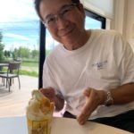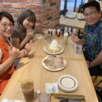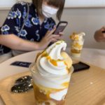 お待ちかねの『マンゴーパルフェ』が運ばれてきました。テーブルの上で、今度はパフェの撮影会です。いろんな角度で写真撮影していると、待ちきれないゾウ君の嫁さんは、先に食べながら「早く食べないと、溶けてくるよ。」と。撮影会はそこそこにして、いただきまーす♪。濃厚ソフトクリーム🍦の甘い冷たさが染み込みます。さっき、値段の高さにビビっていたけども、決断は正しかったと痛切に感じました。マンゴー🥭の果肉、シャーベット、スポンジケーキなどなど色んなテイストが楽しめました♪。みんな、満面の笑み。真夏の暑い日に最高の至福の時間を過ごしました。