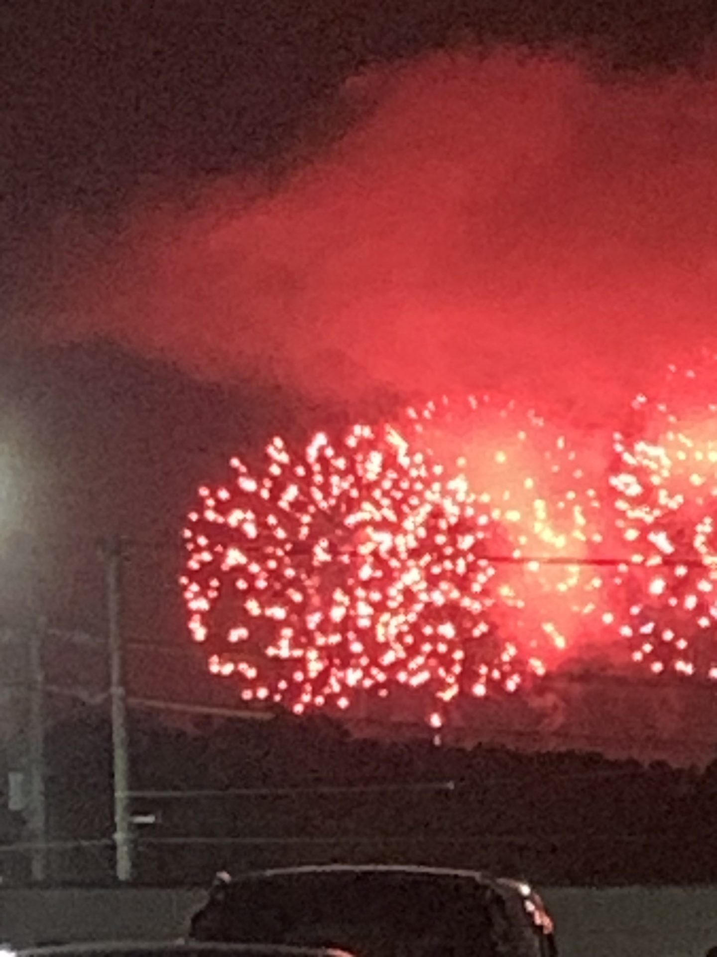 お盆休みの夜、久しぶりにサーキットの花火を見ました。私は無類の花火好きです。以前は、熊野花火、伊勢奉納花火大会、四日市花火、津花火、名古屋港花火大会などなど見に行きました。思い出せば、圧巻だったのが熊野花火です。鬼ヶ城をバックにした仕掛花火は凄い迫力でした。そしてその爆音は獅子岩が壊れてしまうのではないかと思うほどのものでした。また、海上自爆花火は眼前に大きく広がる扇形の花火は視界に収まりきれないくらいの大パノラマでした。今日は、F1マート屋上から見える花火を満喫しました。