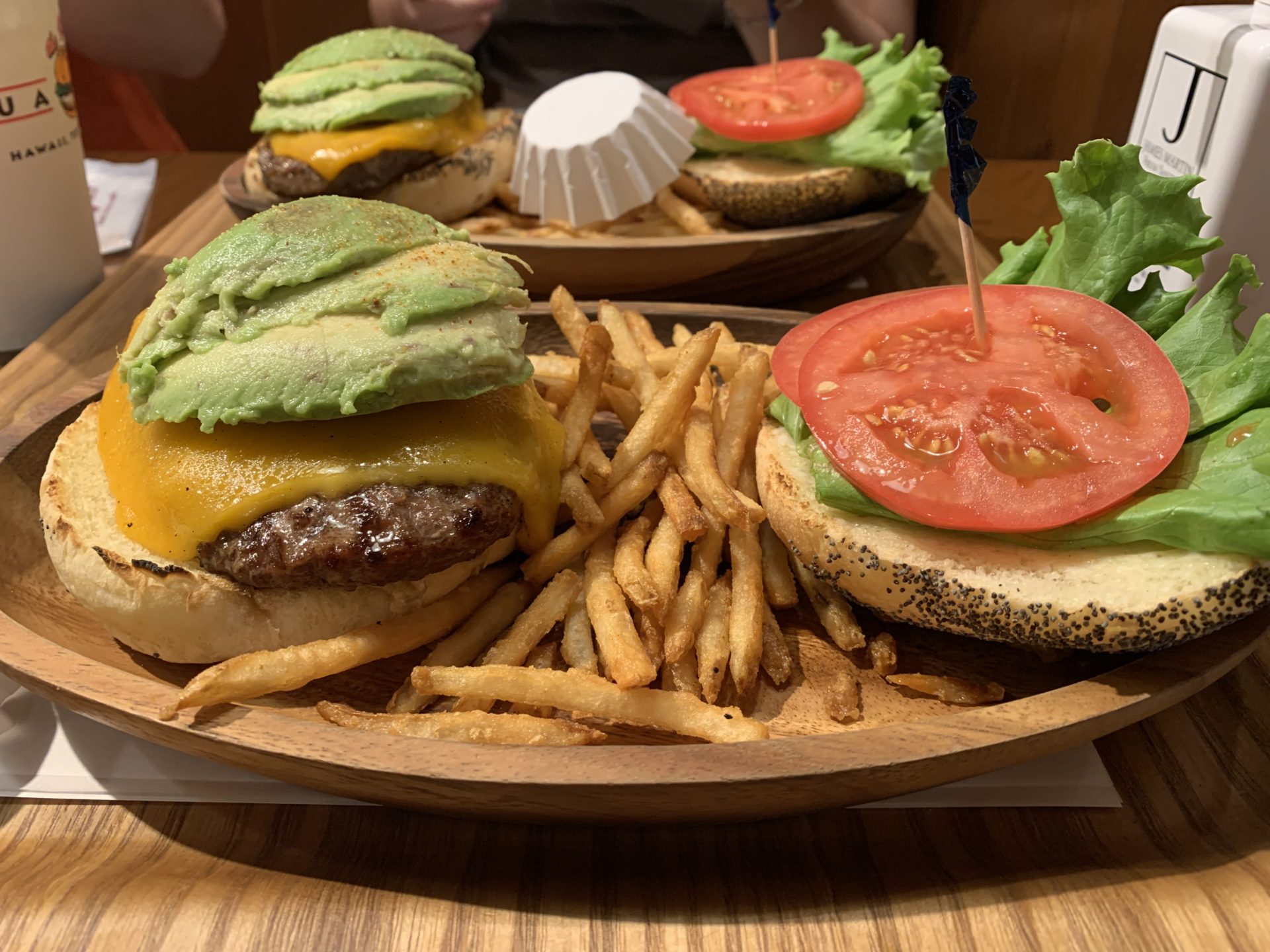 暑い日が続いてます。行動規制が解かれているコロナ禍です。一方では、感染者の数は増加傾向が続いています。感染拡大防止策を十分に行い、気分だけでもハワイに行こうと決めました。ハワイはam10:00オープンです。ハワイまでは1時間弱です。オープン前に着けば、ほぼ並ばずにハワイに入れます。am9:00に車🚙で出発。ride on time時間通りにarrive at到着。KUA’ AINAクアアイナまでrapid speed早足で急ぎます。クアアイナの看板が見えてきました。「パスポートプリーズ」入国審査、手荷物検査など一切ありません。8時間の時差ボケもありません。『早起きは三文の徳』直ぐに店内にチェックイン。『厚切りチェダーアボカドバーガーセット』ドリンク🥤はグァバジュース。クーポンでポテト🍟小を付けてオーダーです。まずドリンクを受け取りポケベル📟を渡され、着席します。グァバジュース🥤は南国🏝の味。インテリアのサーフボード、サーファーの写真、流れるハワイアンの調べは目を閉じれば、ビーチ⛱とビキニとダイヤモンドヘッドが見えてきそうです。ブルルル。テーブルの上で私達の心とシンクロするようなベルの振動。『厚切りチェダーチーズアボカドバーガー🍔』とご対面です。アボカドチーズパテ側とトマトレタス側に分かれたバンズを合体させるには、思い切った決断力を求められます。躊躇する事は許されません。全集中‼️一体化成功です。両手で慎重につかみ、大きく口を開けてかじりつきます。具材がはみ出さないように食べます。最高‼️美味い‼️ハワイがやって来ました。言葉少なに、無心に食べました。クーポンでゲットしたポテト🍟も美味しかったです。本場ハワイのハンバーガー🍔を満喫した後は、ジャズドリームをアラモアナショッピングセンターのつもりでshoppingしました。アウトレット価格でお値打ちのズボン👖を見つけたので少しウエストがキツめでしたが、頑張って痩せるとの前提で購入しました。