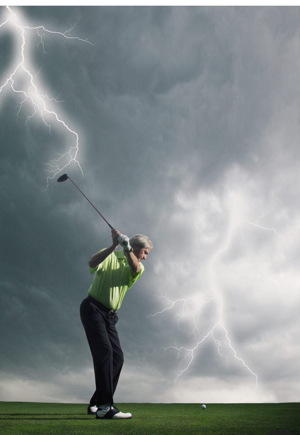 30分余りしたら、再びサイレンがなり雷⚡️が去った知らせがありました。雨☔️もあがり、プレイ続行です。激しい暑さもなく、快適にプレイできました。2人ともマズマズのスコアでホールアウトしました。カートがクラブハウスに着くや否やas soon as possible (〜するやいなや)耐えきれなくなったかの様に土砂降りの雨(rain cat and dog)が降ってきました。luckyでした。風呂に入っていると、けたたましくサイレンの音、地響きの様な雷鳴、プレイ中断勧告の放送がありました。