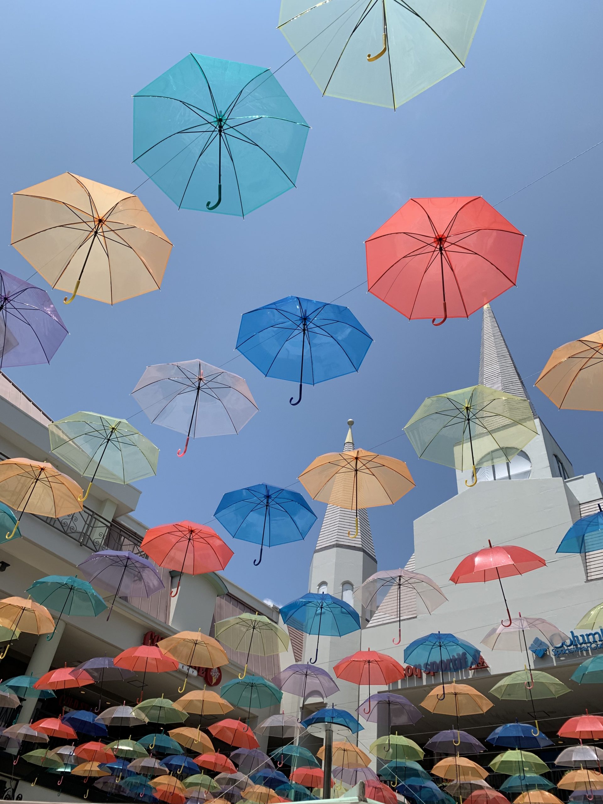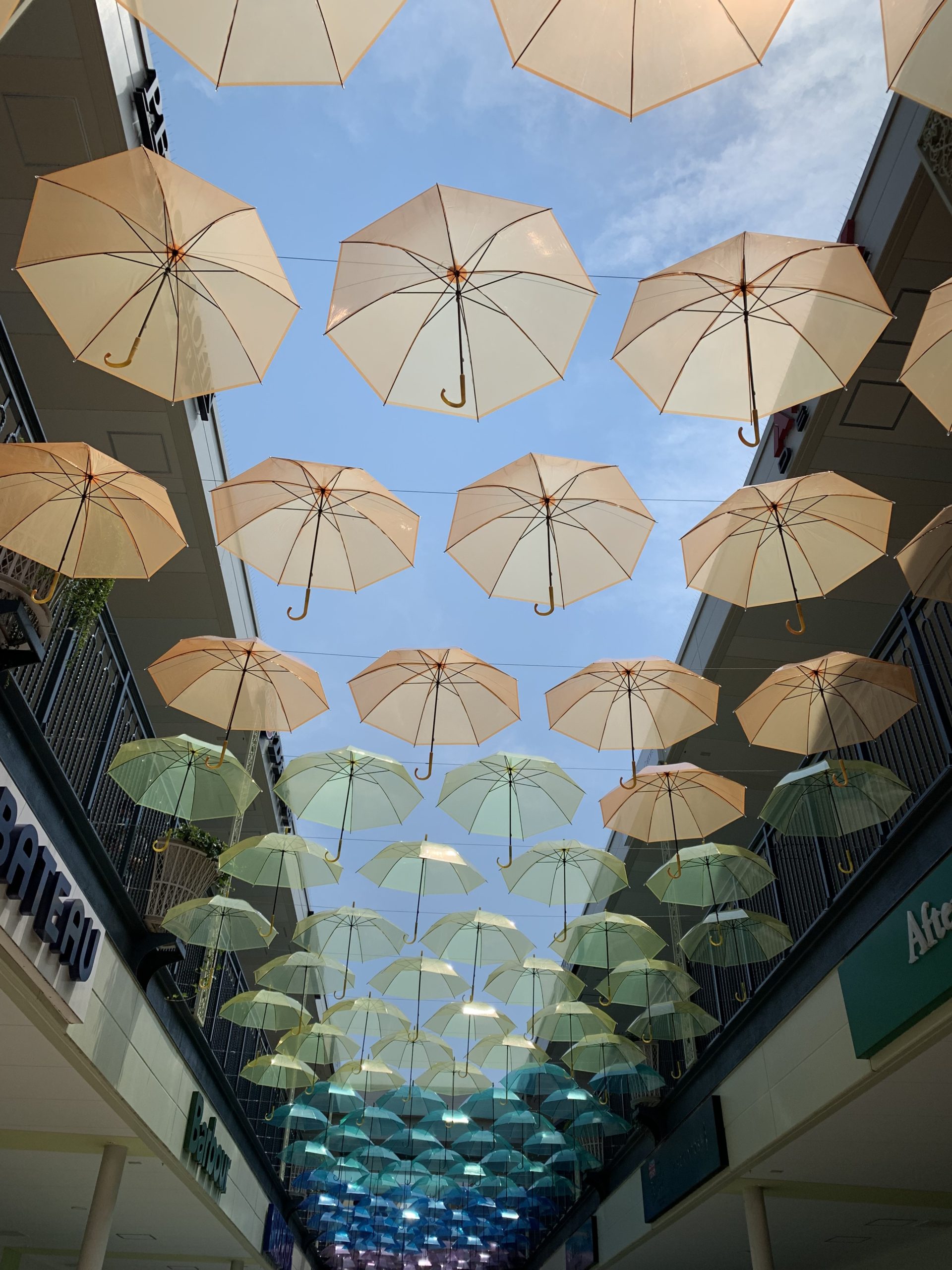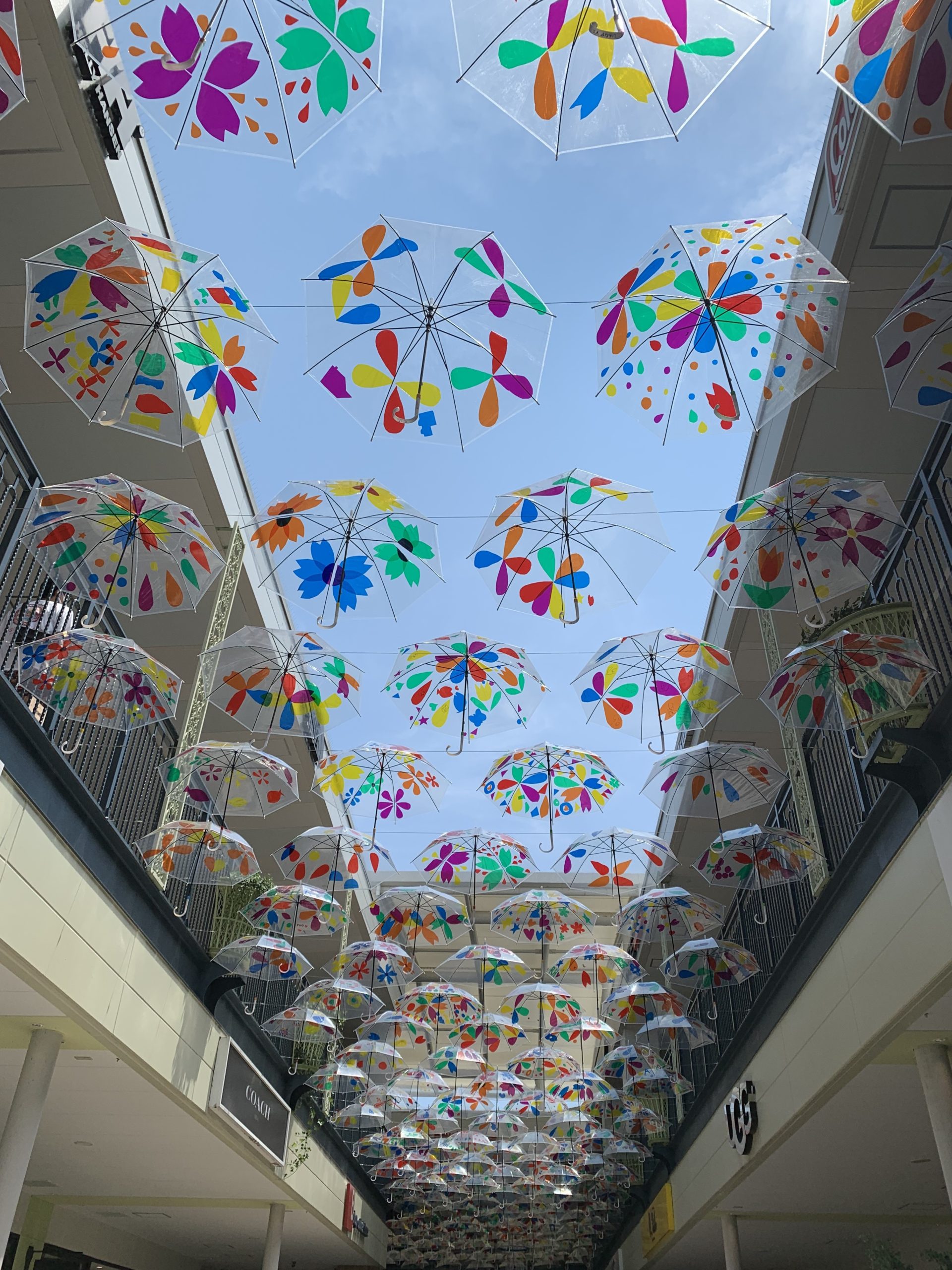 ジャズドリームのアウトレットモールのコンコースには、色鮮やかな傘☂️がレイアウトされていました。真っ青な空に沢山広がる傘☂️は、とても綺麗でした。感動‼️