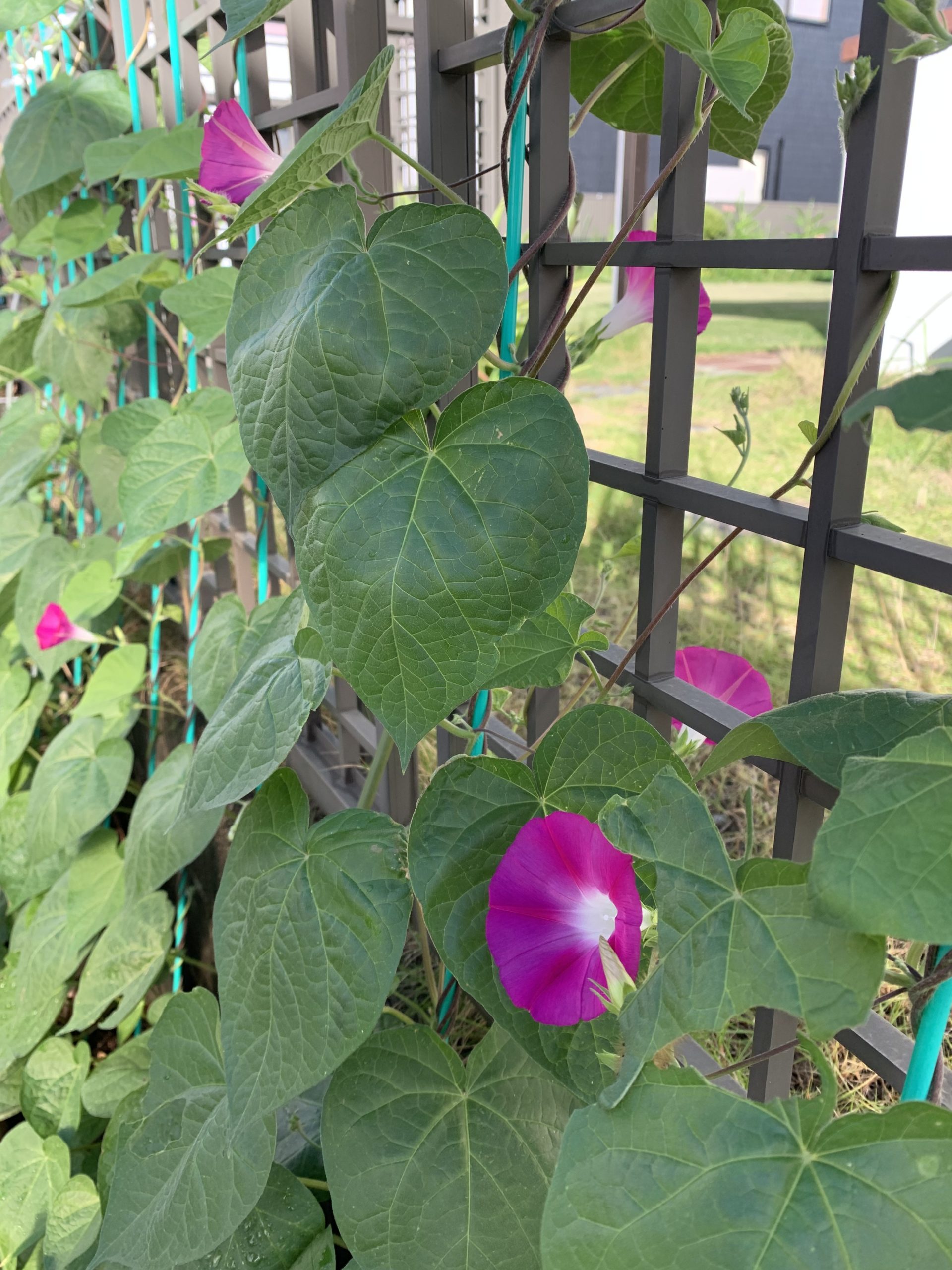 徳島県阿南市の叔母さんから郵送してもらった朝顔の種が育ち、花が咲きました。とても綺麗な花が咲くからと実家に種子を送ってもらい、親父がプランターに種を撒きツルが伸びて絡みやすい様に棒を丁寧に立てました。毎朝、出勤時に小学一年生のように二葉、本葉の成長を確認しました。つるが伸びてきてあさっての方向に伸びてきた時は、進路指導をして棒に絡みつくようにお手伝いをしてあげました。その結果、すくすくと育ち立派な花を咲かせました。叔母さんが言ってた様にとても綺麗な花が咲きました。徳島でも同じ綺麗な朝顔が咲いている事を思うと、なぜか楽しくなりました。