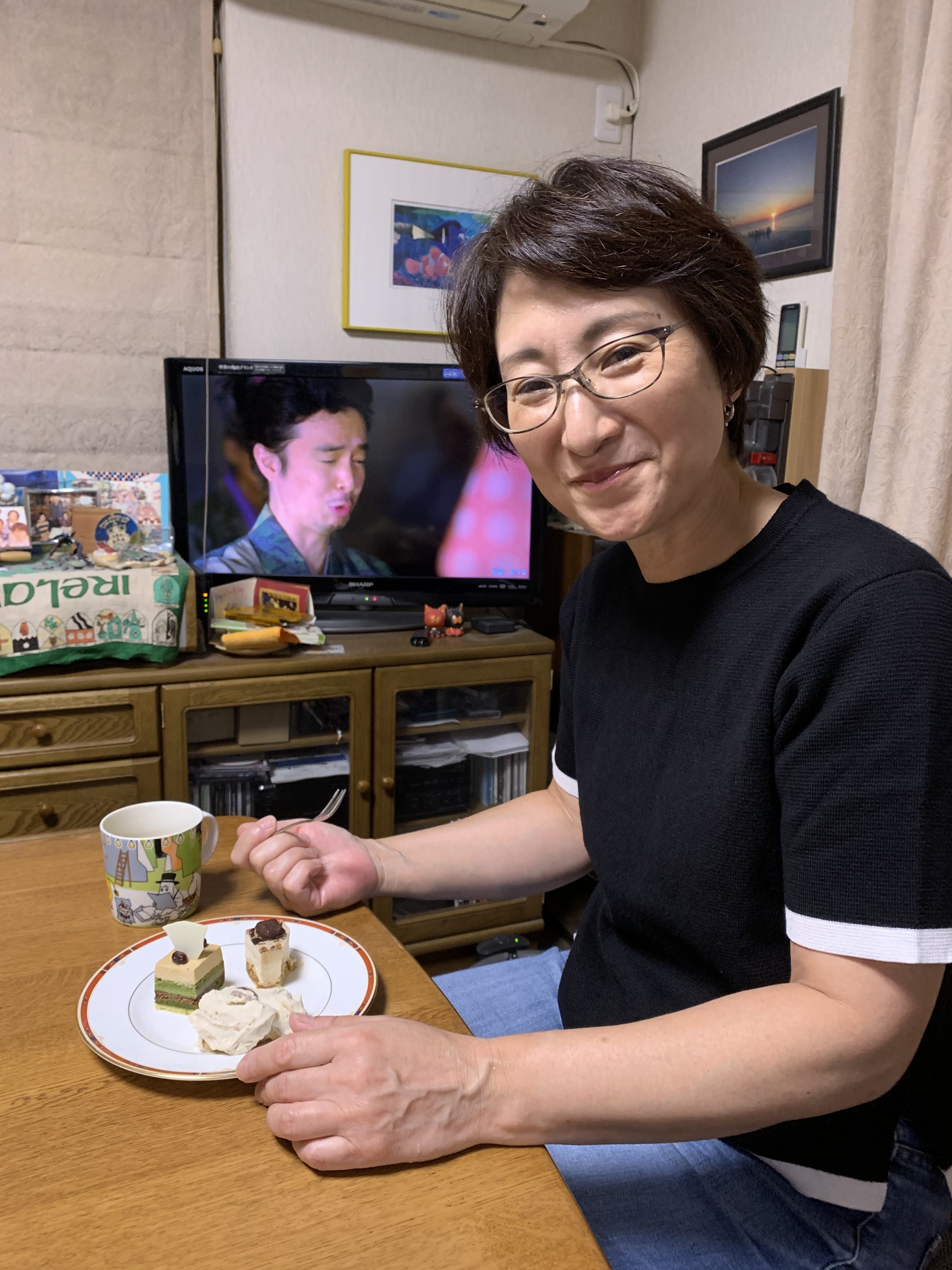津の三重県立図書館で調べ物をした帰りに、最近ハマっている『パティスリーラパルムドール』に立ち寄り、ケーキ🍰🧁🎂を買って帰りました。3種類の美味しそうなケーキを選びました。どのケーキもそれぞれ趣があります。和三盆モンブラン(栗の🌰ロールケーキとバニラムースをやさしいマロンクリームで包みました。)、ティーカフェ(抹茶をふんだんに使用した生地にほのかに香るコーヒーのムース。新しいテイスト)、アールグレイ(紅茶とアーモンドのムース くるみのキャラメリゼがアクセント)。夕食後のお楽しみタイムです。どのケーキにするか、嫁さんと長女と私の3人でシンキングタイムです。議長の私が「どれにする?好きなのを選んでいいよ。」と言うと「どれがいい?」「お父さんはどれにするの?」「どれでもいいよ。」「旦那さんは、どれがいいの。」「ネェ、どれがいいの。どれにしようか。」どれどればかりで、なかなか決まりません。そうです、皆んな心の中は同じだったのです。『三つとも食べたい。』そう思った瞬間、一休さんのポクポクポクチーンの名案が浮かびました。一つのケーキ🧁を三等分したら、三種類のケーキ🍰が食べられる。ノーベル平和賞に匹敵するほどの名案‼️私って天才と思いました。我が家のパティシエ嫁に寸分の狂いも無いくらい三等分に均等にカットしてもらいました。こんな時の嫁の包丁さばきは道場六三郎にも負けずとも劣らず見事です。白いお皿に並べられた各々のケーキはお洒落です。先日のケーキバイキングを思い出しました。「おいし〜い❗️ウマーベラス❗️うますぎちゃん❗️」発想の転換がもたらした幸せの瞬間でした。喜びを分かち合う事により三倍以上の喜びと幸せになる事を知りました。