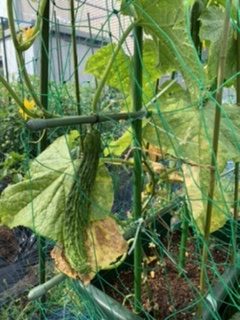 今年は、おじいちゃんの手伝いで畑で野菜作りをしています。トマト🍅、ピーマン、ナス🍆、プチトマト、モロヘイヤを作っています。例年は、キュウリ🥒も畑で作るのですが、蔓が伸び茂るので手入れが大変という事で今年は作らない予定でしたが、嫁さんの強い希望で畑の傍らでプランターでキュウリを栽培しました。苗の時、支柱で支えてあったのですが、そのまま放任主義にしてあったら大変な事になっていました。急遽、キュウリ君🥒に真っ直ぐ上に伸びよと諭し、結紮バンドで進むべき方向へ縛り、彼の方向性を示してあげました。思えば彼の成長の岐路には考える事が沢山ありました。二葉から数えて5枚目まで葉を切り、一番初めに出来たキュウリが成長する前に間引くなど、GoogleとYouTubeでの御指導ご鞭撻を頂き、彼もスクスクと育ち、やっと初収穫の日を迎えました。2種類のキュウリの収穫です。一つは表面がゴツゴツしてまるでゴーヤの様な出立ちです。失礼にも嫁さんには「ゴーヤと間違えて育てたん違うん。」と。初めて苗から育てたキュウリ🥒君、サラダ🥗に入れて食べました。格別に美味しかったです。間違いなくキュウリ🥒の味がしました。家族みんなでワイワイガヤガヤの夕食、家庭菜園がもたらしてくれた安らぎを感じる時間でした。