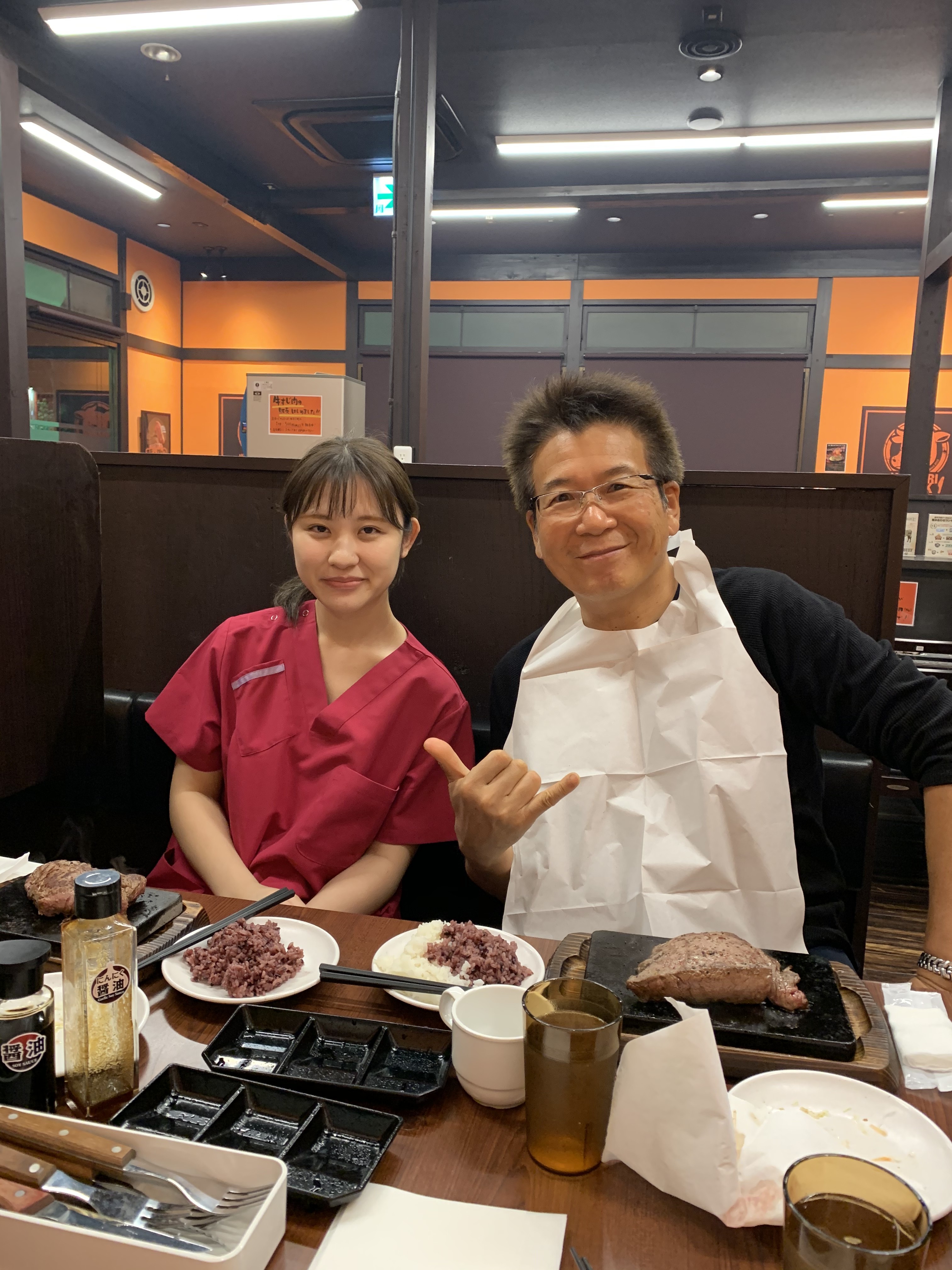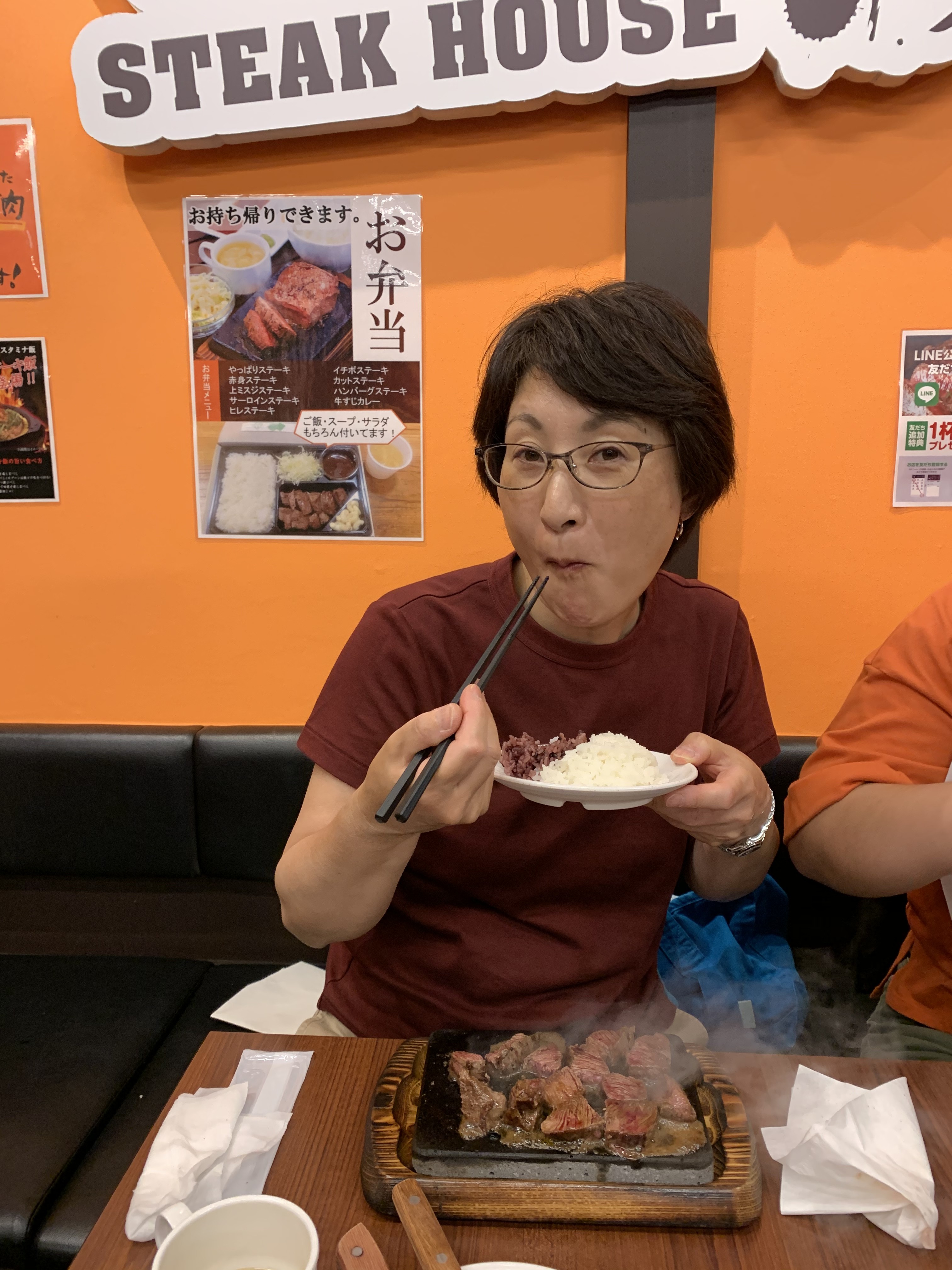 仕事が上がってから久しぶりにスタッフと食事に行きました。最近オープンしたステーキハウス『やっぱりステーキ』です。1000円でステーキセットが食べれると聞き、気になっていたので、いかがなものかなと我が家とスタッフを誘って行きました。場所は寺家の以前に『赤から』があった所です。一年前にスタッフと一緒に行った事のあった場所だったので何か縁があるのかと思いました。180gで1000円でした。スープ、マカロニサラダ、ご飯🍚、五穀米がセットに含まれています。熱々に熱された溶岩石の上にレア状態のステーキ🥩が提供されました。焼き加減は自分でコントロールするシステムです。味も美味しかったです。気になっていた(独特な味がすると聞いていた)マカロニサラダも、美味しくいただけました。1000円リーズナブル価格で、このクオリティなら大満足でした。また、みんなで行きたいと思いました。