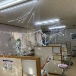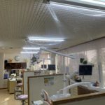 新型コロナ感染症拡大に対して、緊急事態宣言が一部の地域を除いて解除され地方自治体独自の行動自粛が行われています。当院としての対策としては、もちろん使用器具の滅菌パックをしてのオートクレーブ滅菌は当然、患者さん毎に、診察台のアルコール消毒を行っています。エァータービン使用で切削時には粉塵が飛び散らない様に口腔外バキュームを使用しています。更に、隣席との隔たりを作る為に透明なパーテーションを設置しました。