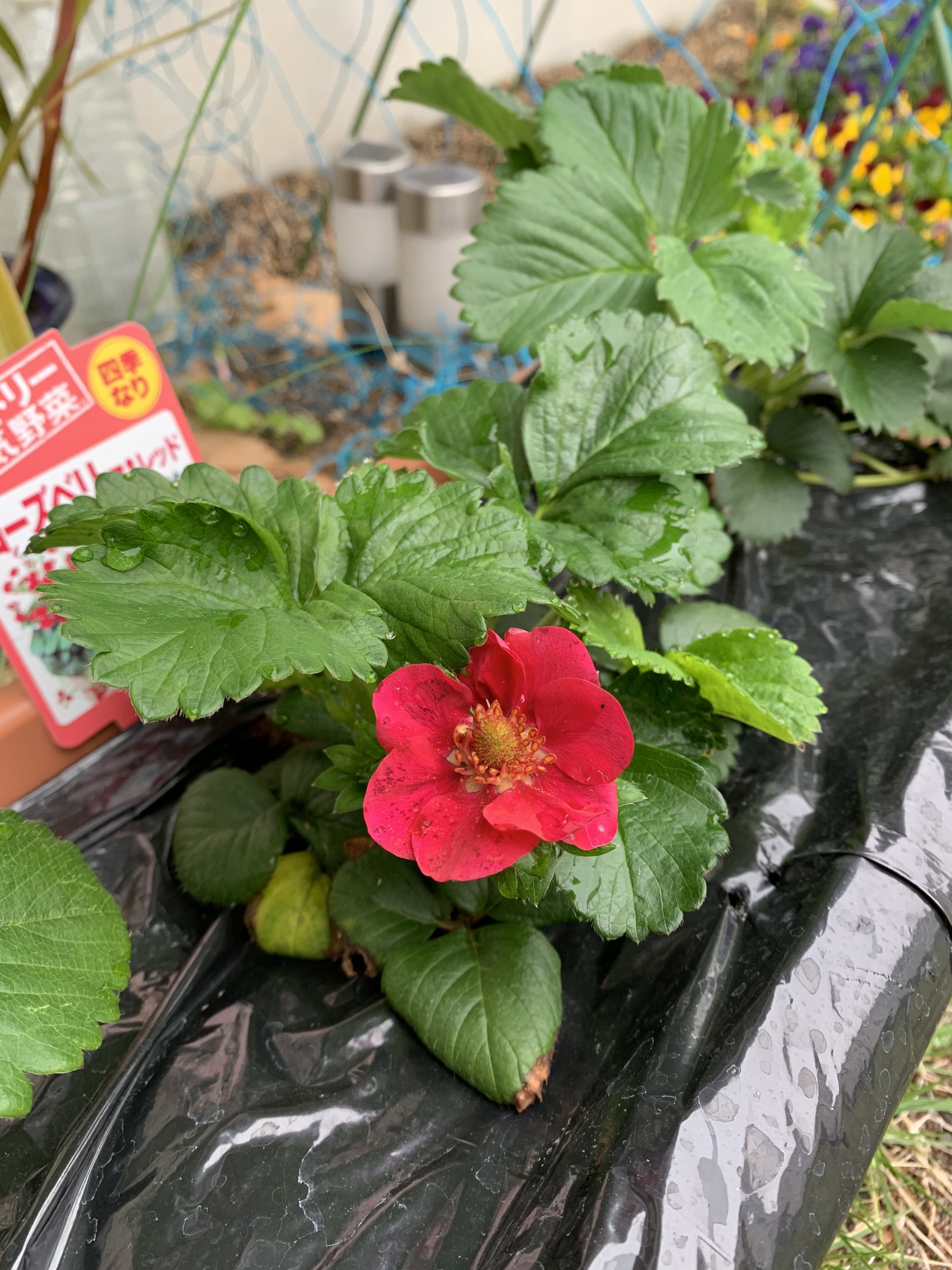 5月3日(日)憲法記念日、さかえ歯科のゴールデンウィーク1日目、曇り空☁️の朝、『自宅で大人しくしていなさい令』の約束を守るべく、午後から雨が降る☂️かも知れない天気予報を知りつつ午前中に洗車をしました。いつもよりも、徹底的に綺麗にしました。今のモヤモヤした気分を晴らすかのようにピカピカに磨きました。ホイールまでピカピカにしました。洗車の後、最近の日課の草抜きをしました。この草引き気をつけなければいけないのは、夢中になり過ぎると1日何も他にできなくなってしまいます。そして腰を痛めてしまいます。ふと、先日プランターに植えたいちご🍓のレッドベリーの赤い花が咲いていました。いちごは白い花だと思っていたのですが、赤い花は珍しいです。それも見事な赤色は、とっても綺麗です。大きな花なので、大きないちご🍓の実が期待できそうです。味も楽しみです。子供の頃なら自由研究の宿題をクリアできそうです。東京の友達にいちご🍓の花の写真を送ったら、収穫できたら送って欲しいと言ってました。