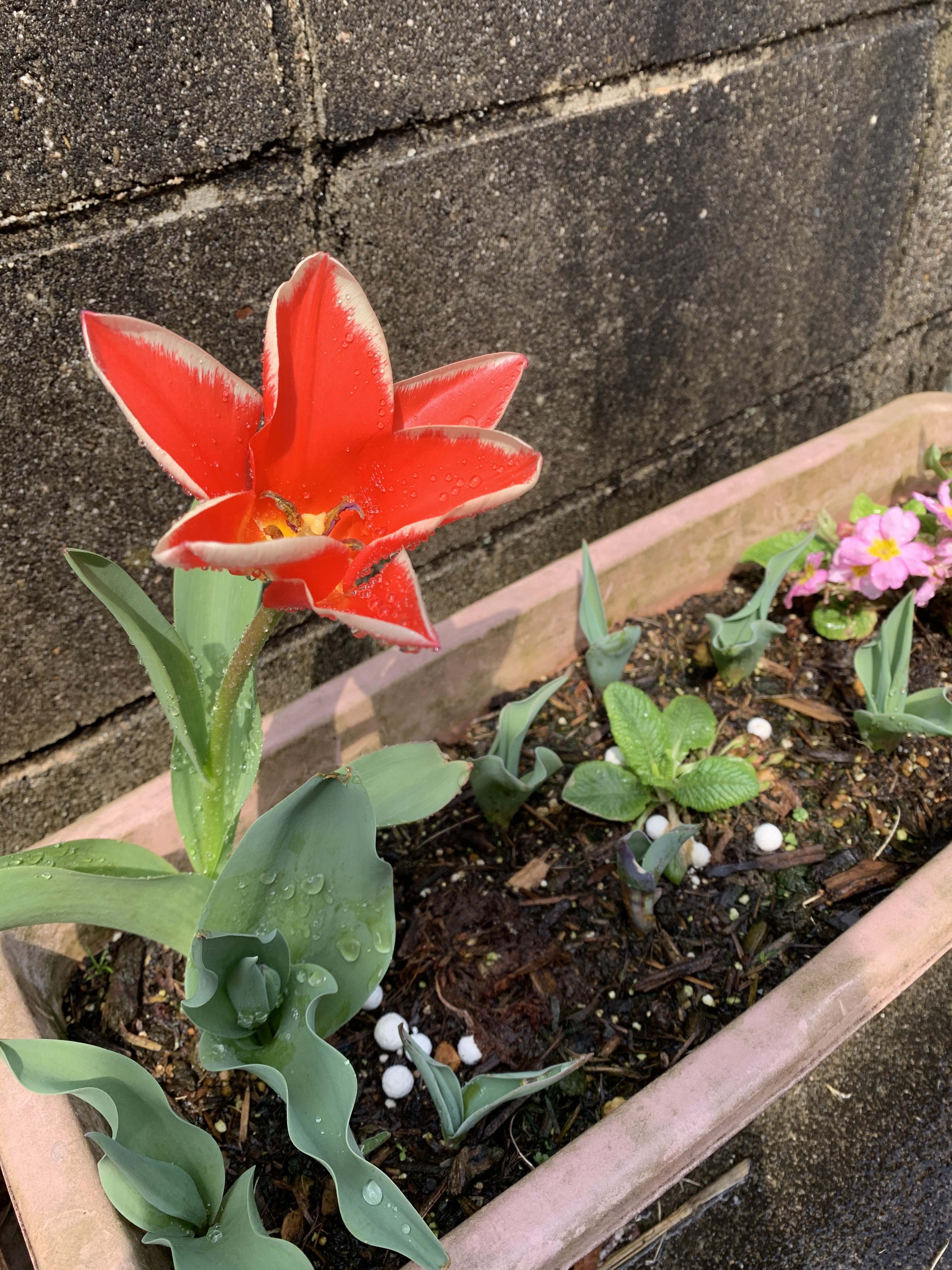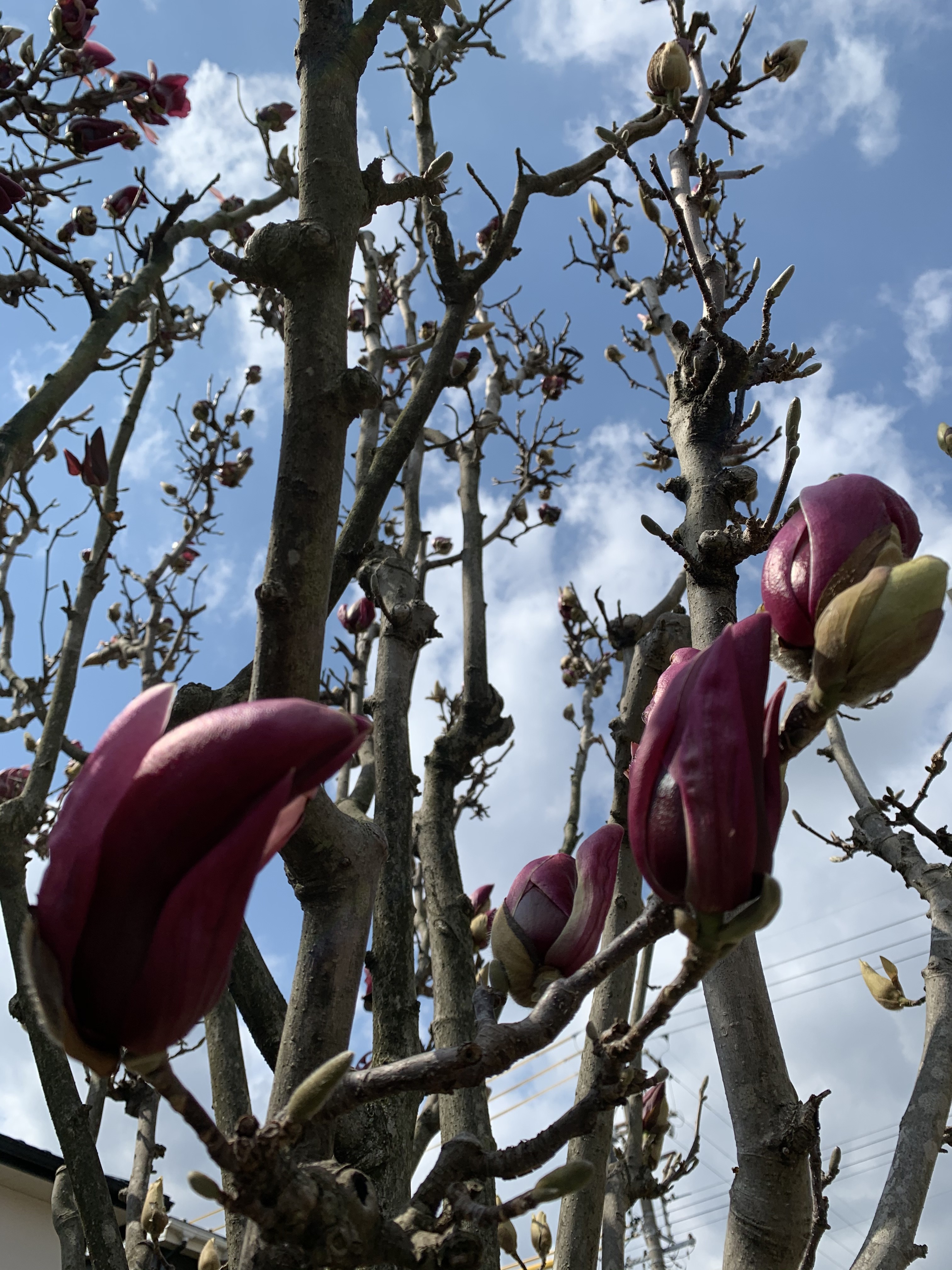 3月14日ホワイトデーも終わり昨年の12月から催されていた『さかえの里』ウインターイルミネーションも閉幕となりました。早朝から診療所の屋根の上に登り、装飾ライトを外しました。高所恐怖症の私にとっては命がけのミッションです。前の道路を通る車🚗の人の視線を感じつつ作業を進めます。少し焦ったのはパトカー🚓が通過した時に、職務質問をされたらどうしようかと思いました。「何をしてるんですか?」「ウインターイルミネーションを片付けているんです。」「今頃?怪しいな。署まで来てください。」と言われるんじゃないかと。そんなこんなしているうちに、片付けが終わりました。季節はもう春です。プランターのビオラの花が元気良く咲いています。チューリップ🌷一号が咲きました。チューリップを朝に記念撮影しました。するとお昼過ぎには花弁は閉じ始めていました。チューリップは咲きっぱなしでなく、夕方になると眠る準備をするのです。プチ感動です。チューリップ🌷はお利口さんなのです。庭の木蓮の蕾も大きくなり開花間近です。咲き誇る木蓮の花は見事なのですが、散った花弁を掃除🧹するのは大変です。確実に春の訪れを体感できます。コロナウィルス騒動がいつ終息するのか分からず混沌としているこの頃、ひと時の花々の美しさに心穏やかになりました。
