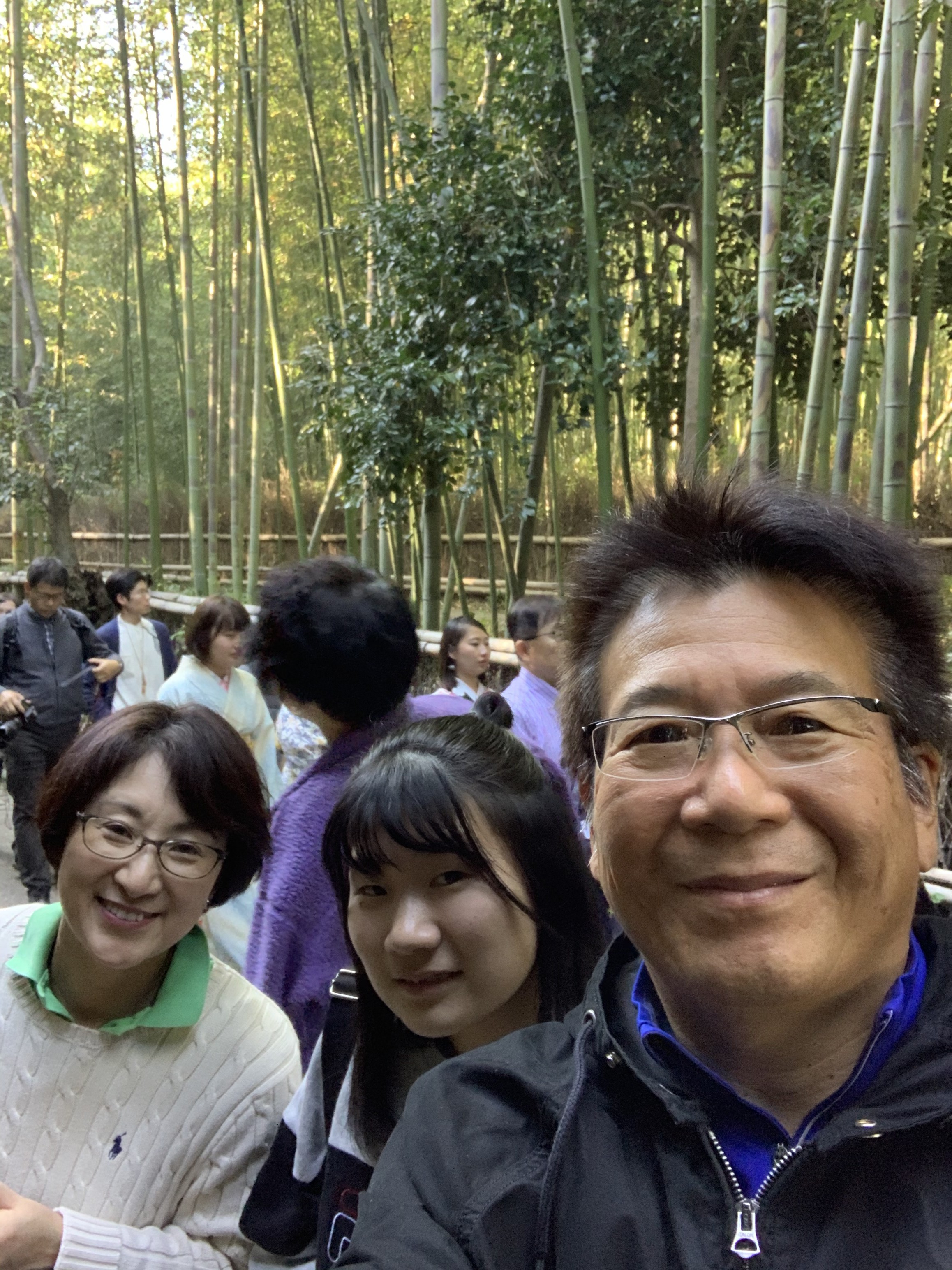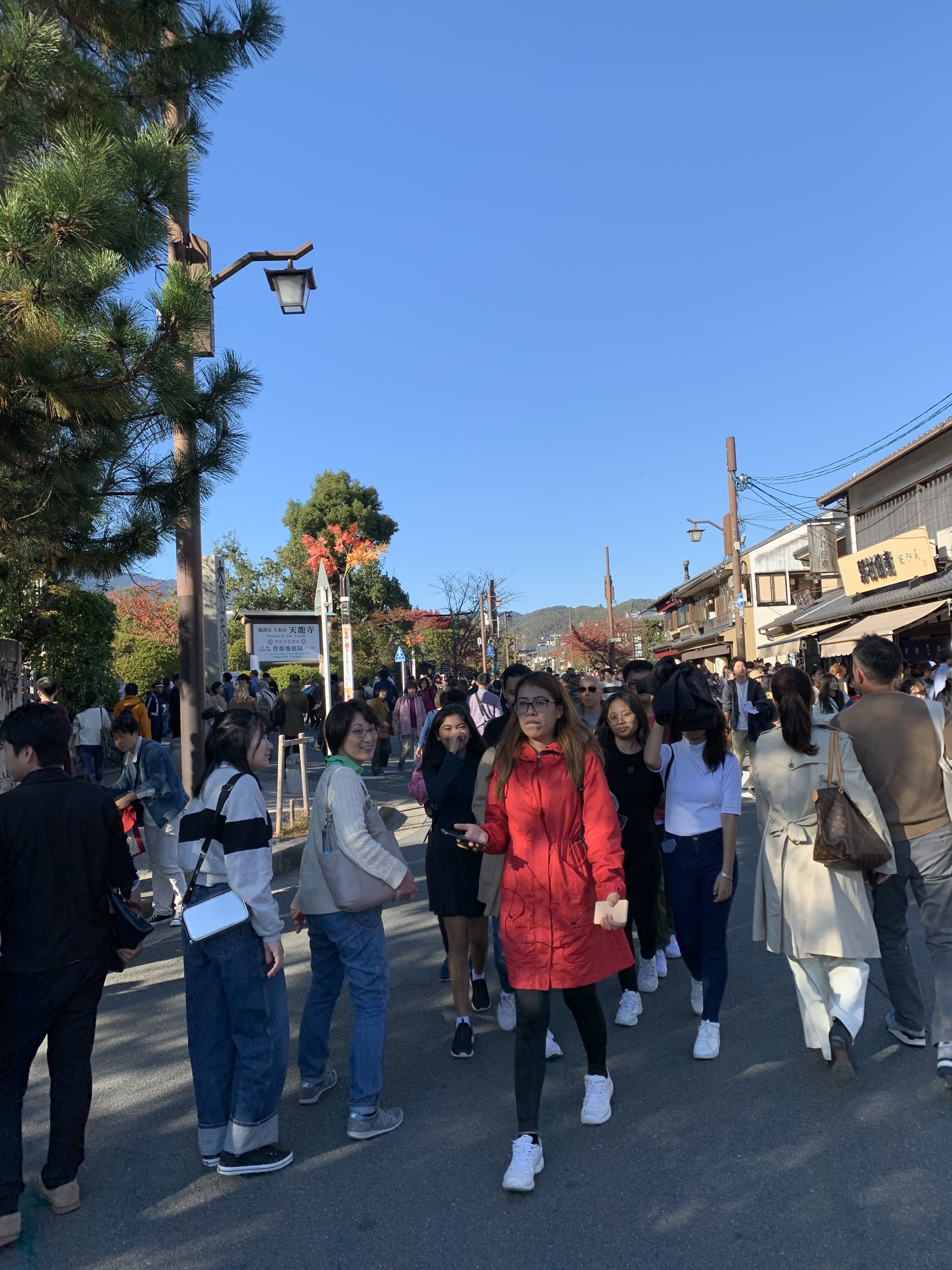 紅葉狩り🍁の場所を嵐電に乗り嵐山に移しました。嵐山駅前は休日の原宿竹下通り並みの人混みでした。人混みをかき分け竹林の小径へ、竹林の小径も左側通行の鉄則を厳守している名古屋駅のコンコースの様に混雑していました。『そうだ。京都へ行こう。』と言った様な、ひっそり感は全くありませんでした。中国🇨🇳の新婚さんがモデルさんの様な艶やかな衣装で、羽根で作られた扇子を手に竹林を背景に2人だけの世界で撮影会でした。・・・・絶句❗️中日カントリークラブで子連れの猿🐒の母猿に遭遇した時の対応のようになるべく目を合わせない様にしました。しかし不思議なのは人間の心理、見てはいけないと思えば思うほど見てしまいます。悲しいかな竹林の荘厳さよりも、彼女の扇子の舞が脳裏に焼き付いて離れません。