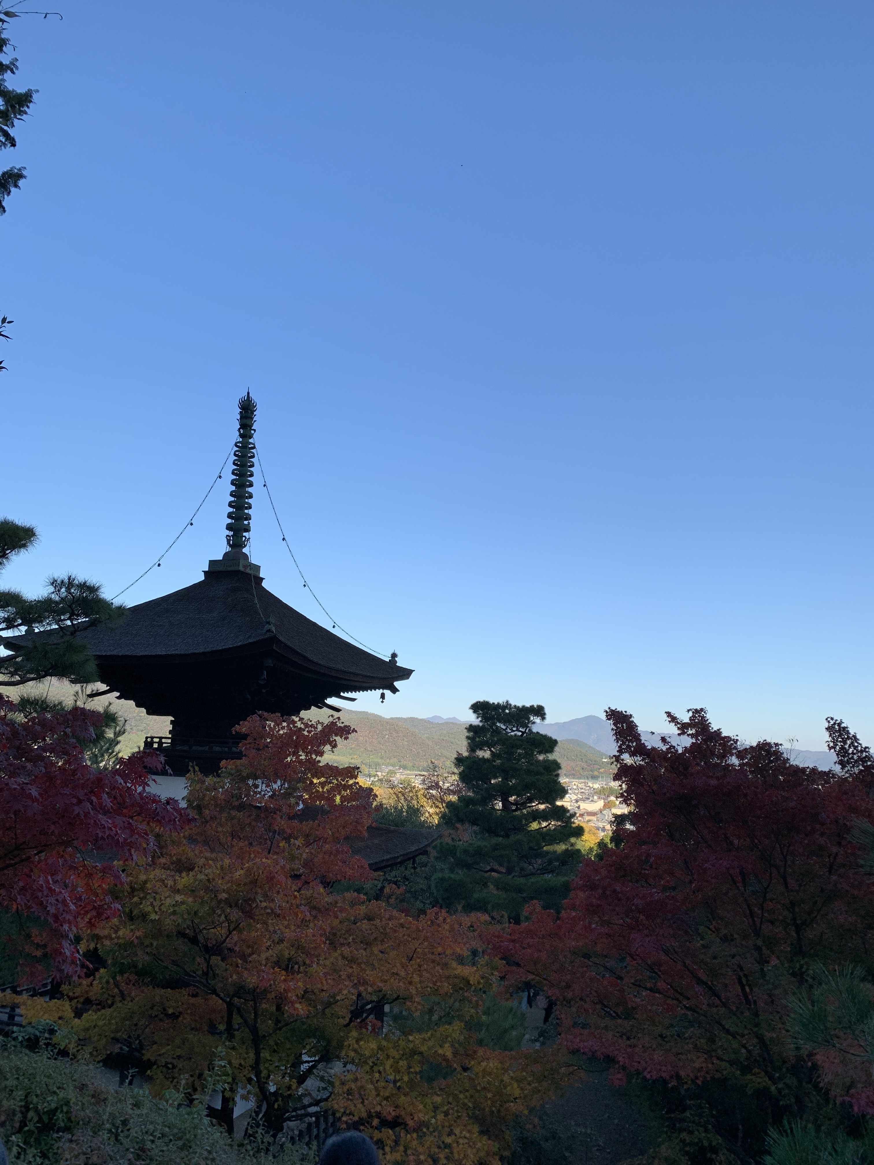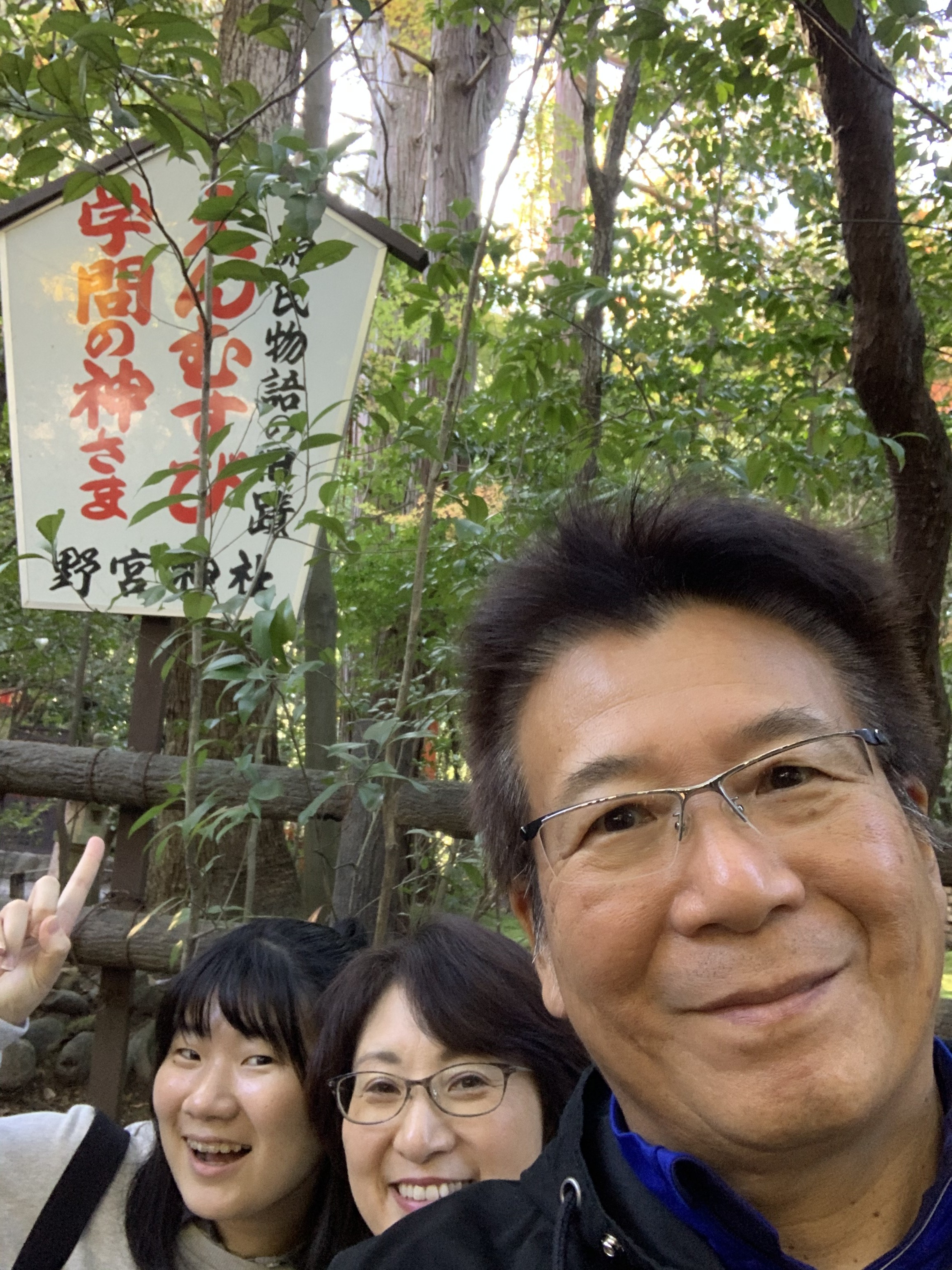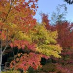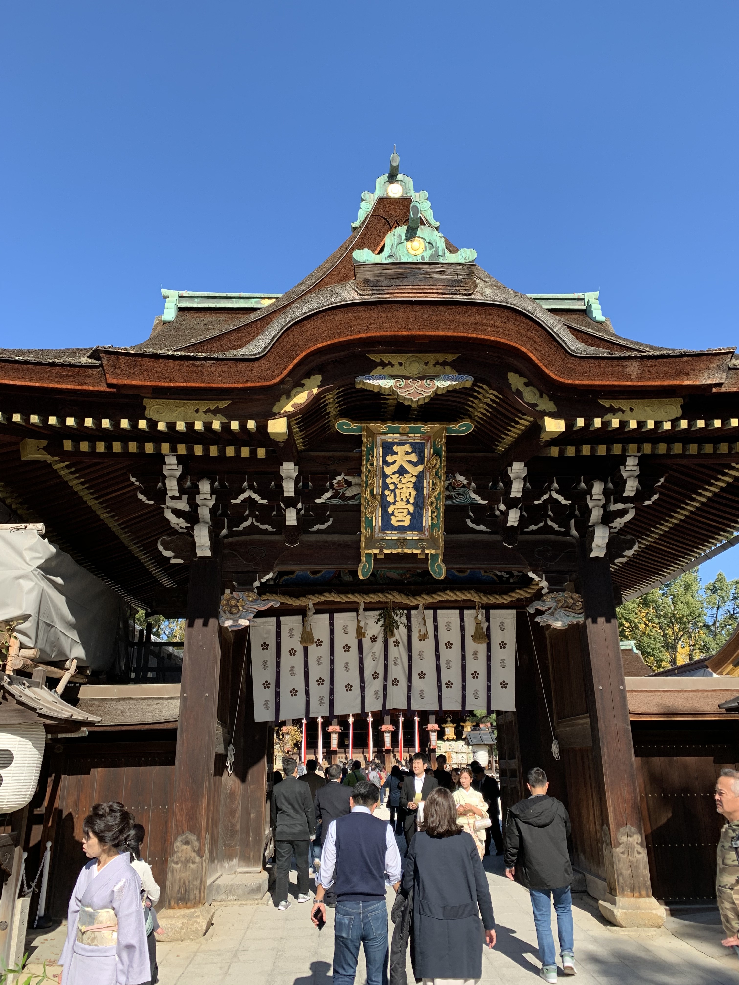 つい最近まで半袖のポロシャツでいられたのにと思っていたら、気がつけば寒がりの私は掛け毛布、敷き毛布もしてガッツリ冬支度です。今日は毎年恒例の京都紅葉狩り🍁です。朝から好天に恵まれ、暖かい1日になるの天気予報を信じて鈴鹿を8:30に出発、新名神高速道路🛣は行楽日和のせいか少し混雑していましたが、その時間も車内での楽しい会話の時間になるのであまり気になりませんでした。娘のお気に入りの嵐の曲を聴きながら、快適に走ります。滋賀県の信楽くらいにさしかかると山々も色づいています。京都東インター出口は混雑していたので、京都南インターでおりました。京都市内も混雑していました。先ず、学問の神様である菅原道真公が祀られている北野天満宮に行きました。梅の名所として有名なのですが紅葉🍁も有名だそうです。道真公にお詣りをします。お賽銭は十分ご縁があります様にと、いつもの様に15円です。そして、忘れてならないのが参道の左側に道真公の母君が祀られている判氏社と称されたお社をお参りする事です。受験のシーズンになると天上の神様の国では、おそらく道真公も大忙しだと思います。願い事の順番待ちは半端ない位だと思います。そこで私達は、道真公に直接お願いした後に、母君に「道真公のお母さん、いつも息子さんとても忙しそうですね。感心します。いっぱいの願い事を叶えるのって大変ですよねー。そこでなんなんですが、お母さん、息子さんにちょっと、晩ご飯の時でもよろしいから榮さんの所の娘さん今年受験なんやて、そやから順番早めてお願いきいてあげたってくれやん。とお話ししてくれませんか。」とお願いします。もちろん、お賽銭は15円です。神聖な気持ちでお参りをした後、紅葉🍁観賞エリアに入園料1000円を払い入りました。1000円払うの少しためらいましたが、園内の紅葉🍁の燃える様な赤、イチョウの眩しい様な黄金色の美しさに充分な対価がありました。始めて入ったエリアでしたがハッキリ、お勧めです。落ち着いた雰囲気で季節の風情を満喫することが出来ました。