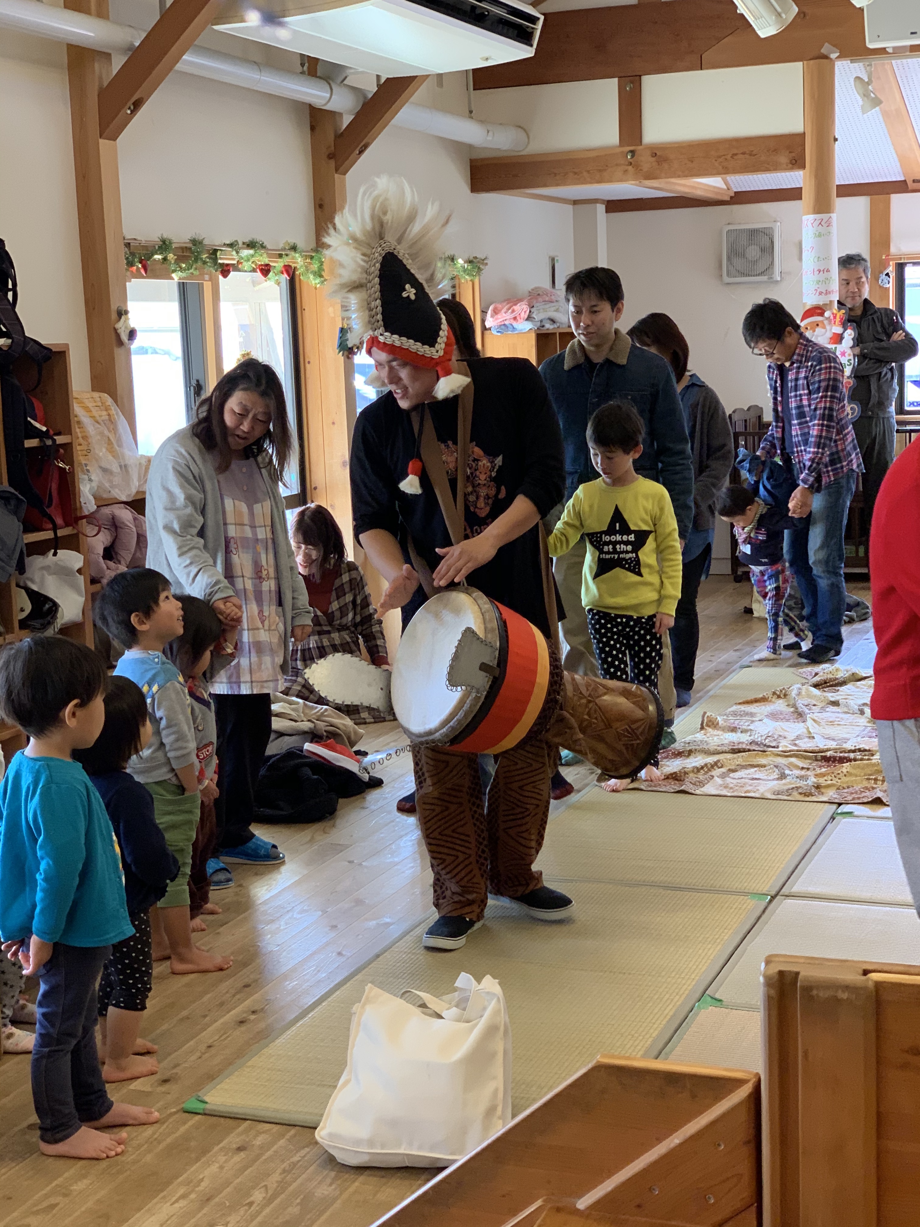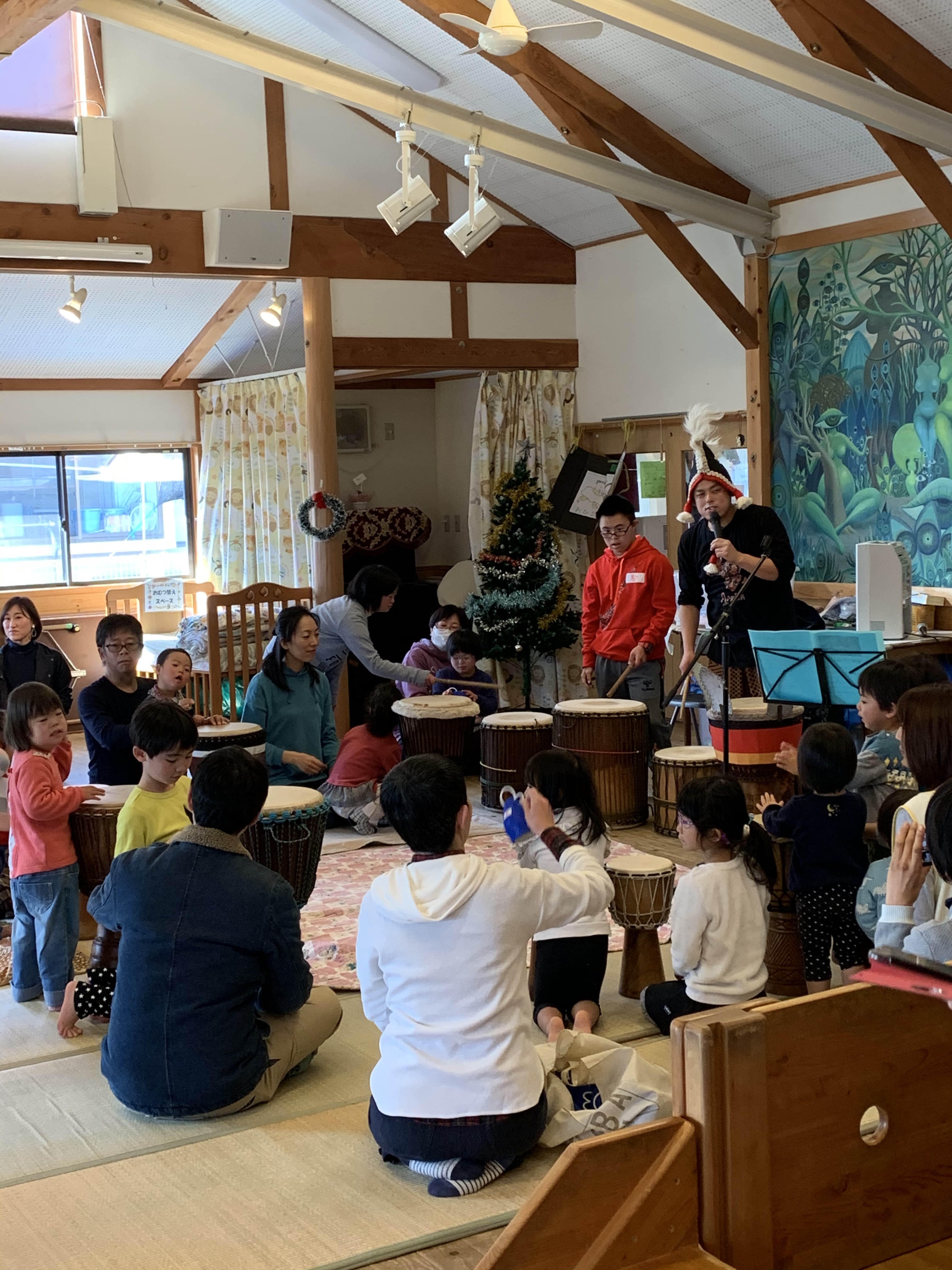 私のマジックショーの次は、『音の配達人むろ』さんのアフリカの太鼓ジャンベの演奏でした。たった一つの太鼓のリズムでみるみると皆んなの心を掴んでいくその様子は素晴らしかったです。気がつくと私達も足でリズムをとっていました。流石プロです。
