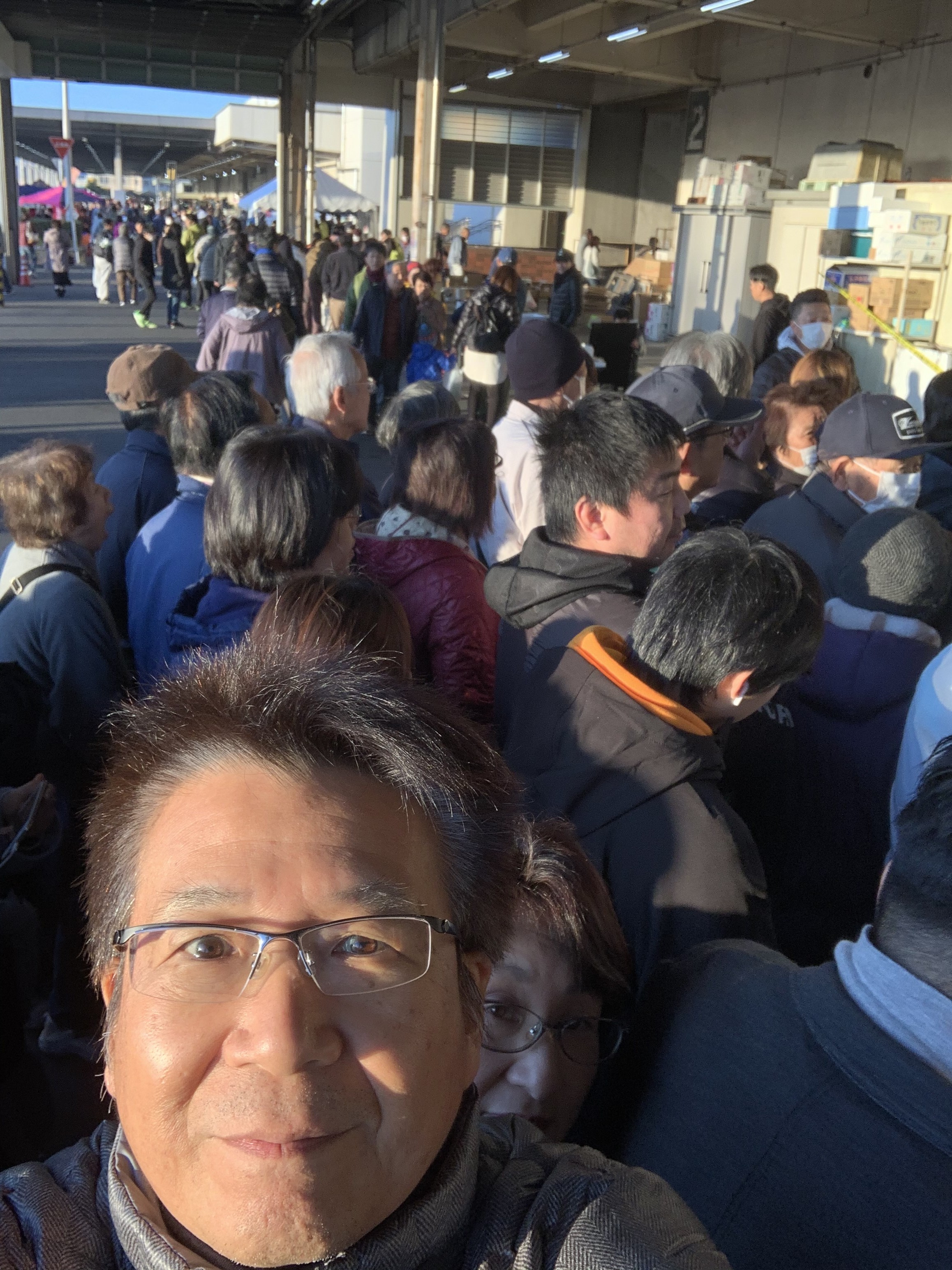 今日は毎年恒例の北勢市場のイベント『市場の朝市』に行って来ました。早朝5:20に起床し6:30の開門に間に合う様に、6:00に家を出発しました。おじいちゃん、おばあちゃん、嫁さんと私でレッツゴーです。お目当ては牧野商店さんのシャケのカマの詰め放題です。500円で用意されたビニール袋に冷凍されたシャケのカマを詰めていくのですが、昨年と同じ場所を目指して早足で行くのですが、今年は開催される場所が少し違っていたので出遅れてしまいました。そしてルールの変更もあり、今までは時間無制限、納得いくまでの詰め放題でしたが、今年はひとパーティー6人制の時間3分制限の2019年ルールが適用されていました。私達の出走は15番目でした。本当なら10番目位だったのですが、集合場所の確認不足から後方からの遅れてのスタートとなりました。ルール変更の理由も分かります。例年は、ダンボールに入れられた冷凍のシャケを500円払ってビニールをもらえば後は自己申告、つまりゴルフ⛳️と同じ様に自分の良心のみの判断となります。昨年私が、目の当たりに見た光景は、ビニール袋に入れるのではなく自らが用意したダンボールに冷凍シャケを入れている老夫婦を見ました。もうそれは泥棒です。これでは牧野商店さんも困りますよね。ですので、今年のルール改正は大正解だと思いました。さあ、15番走目の私達の番が来ました。500円のエントリー費を払い出場資格有りのビニール袋と青いビニール手袋🧤を受け取り、若いお兄さんの店員さんのスタートの声を待ちます。「ハイ、スタート!」ビニール袋を少しストレッチさせ、破れない様に注意しながら容積を増やし、形の良いなるべく平なシャケのカマを手際よく詰め込んでいきます。急いで詰め込んでいくのですが形の良い物ばかりではありません。迷っている間にも非常にも時間は過ぎて行きました。「後、30秒!」焦るばかり、山⛰の様に積まれたシャケ山脈の上に重ねる様に更に載せようとするのですが、重力と摩擦力の法則、つまり万有引力の法則に身を委ねるのみでした。そして私にも、良心が有ります。明らかにルール違反の詰めかたはしません。結果45個の収穫でした。嫁さんは35個。昨年よりも少ない記録で今大会を終えました。不本意な結果(一般の人ならまずまずの結果)に臨時反省会が開かれ、来年は時間3分制限対策を検討し、家に帰って来年に向けて握力、瞬発力、テトリスで空間認知力を鍛え一年後のリベンジを誓いました。患者さんの牧野商店さんで、マグロ、サーモン、ブリの刺身を買い、神戸中学で同級生の魚長さんで牡蠣一袋200円(仕入値250円らしい)を買いました。