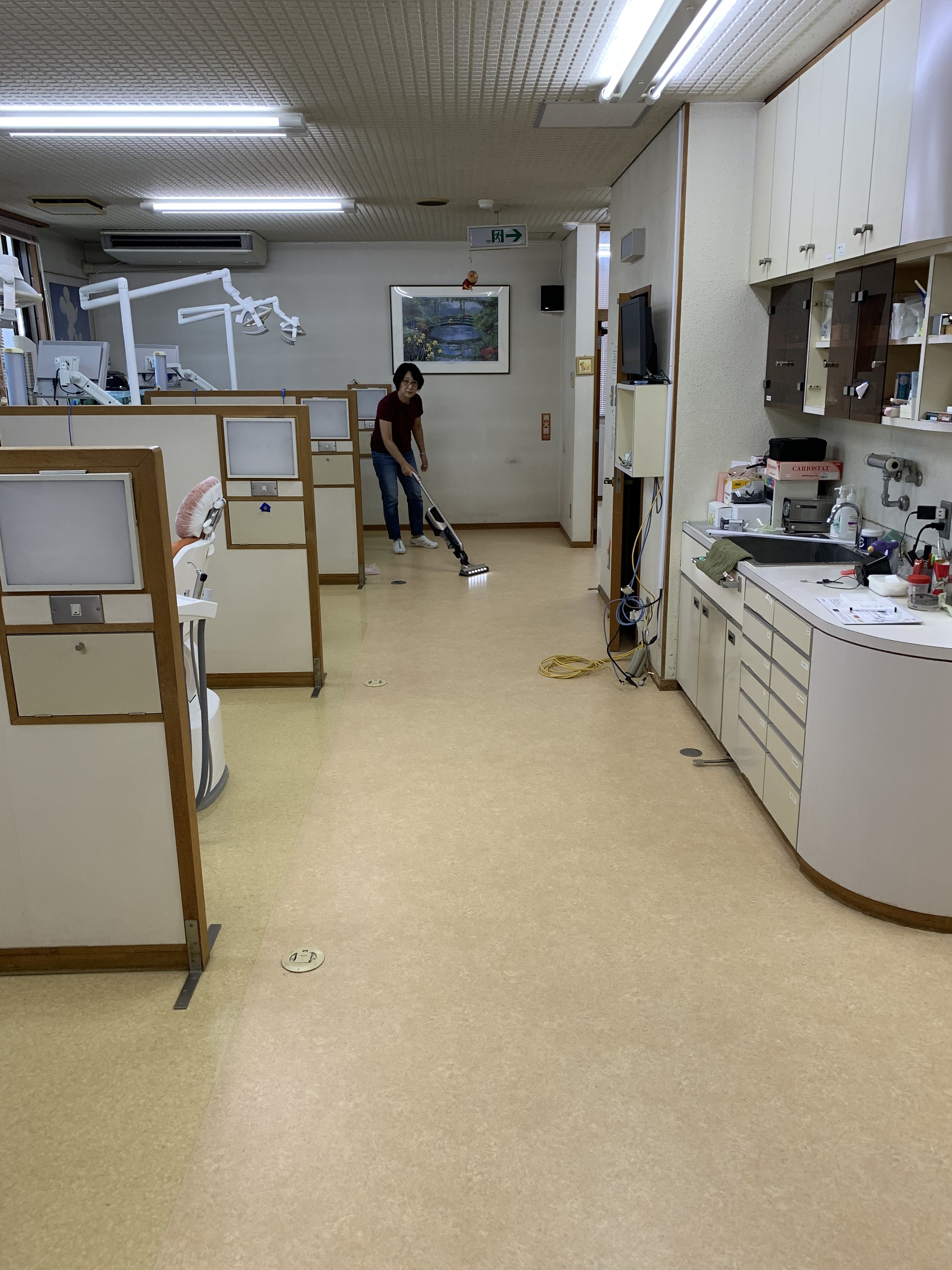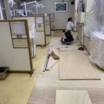 さかえ歯科リニューアル工事終了しました。診療室の床の部分張り替え修理工事を行いました。工事請負い業者さんも6日間の工事期間を有効に使い無事終了しました。新しく張り替えられた床は診療室を今までよりも少し明るくしてくれています。