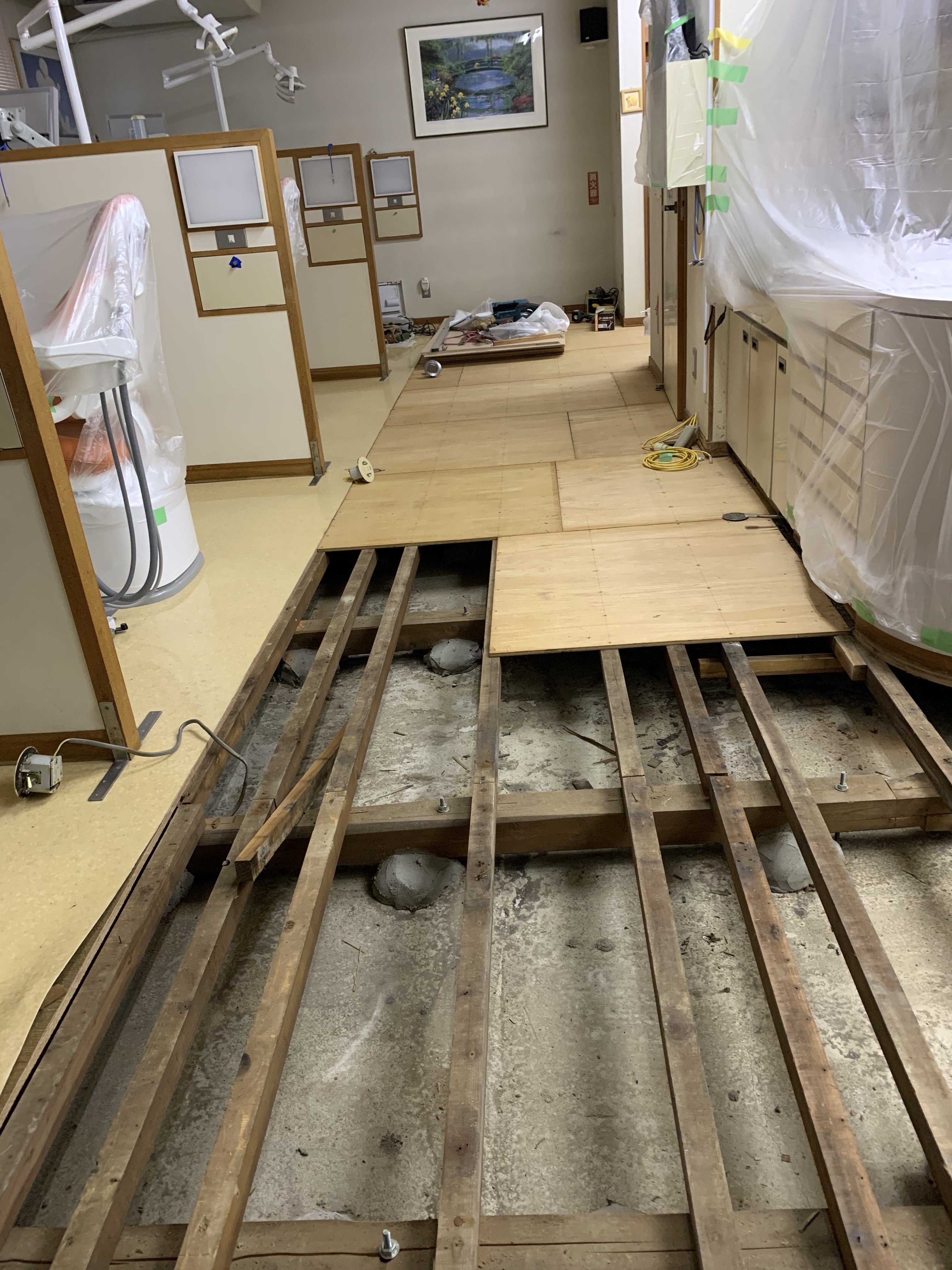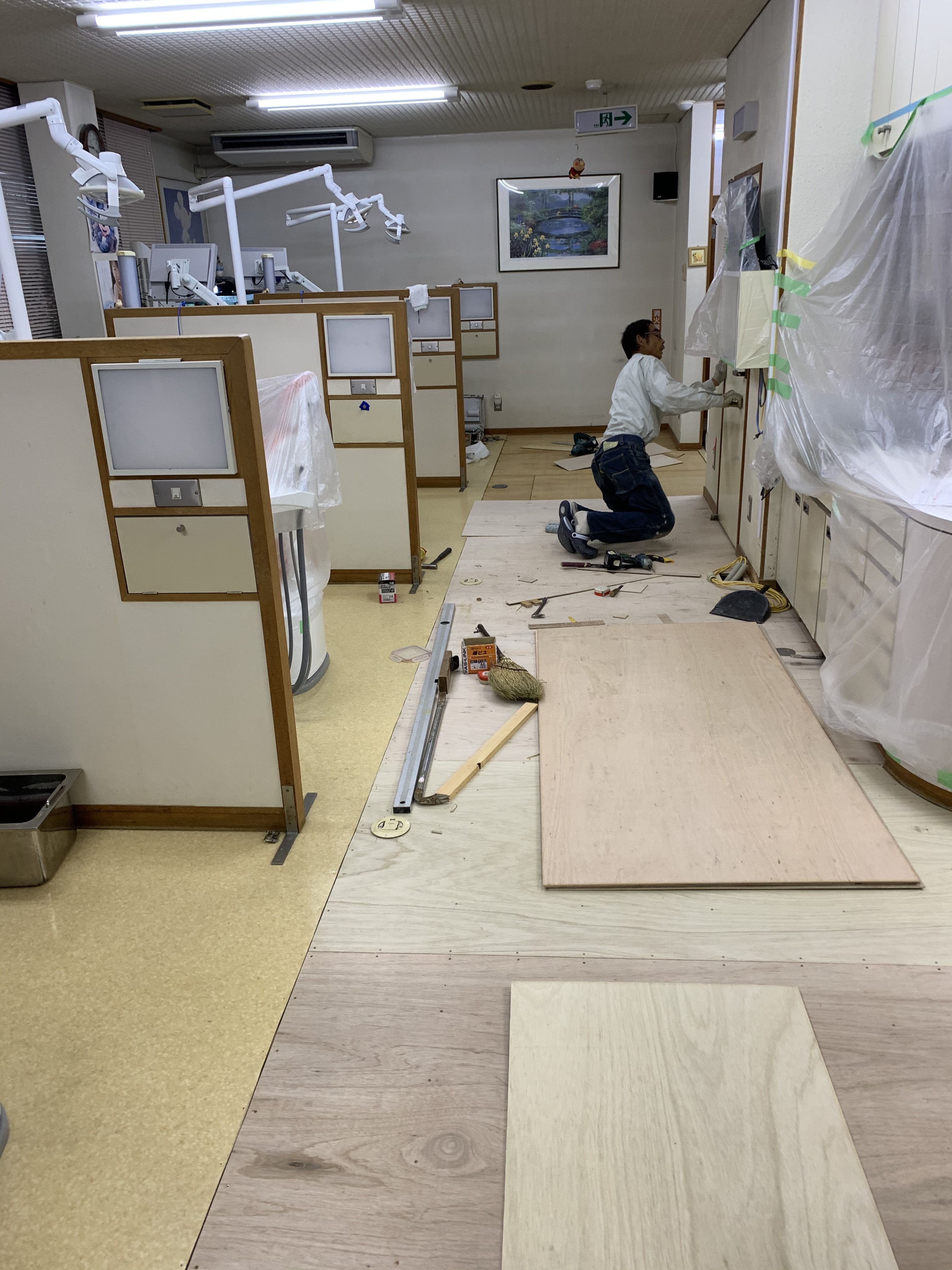 リニューアル工事です。只今、診察室の床工事中🚧です。