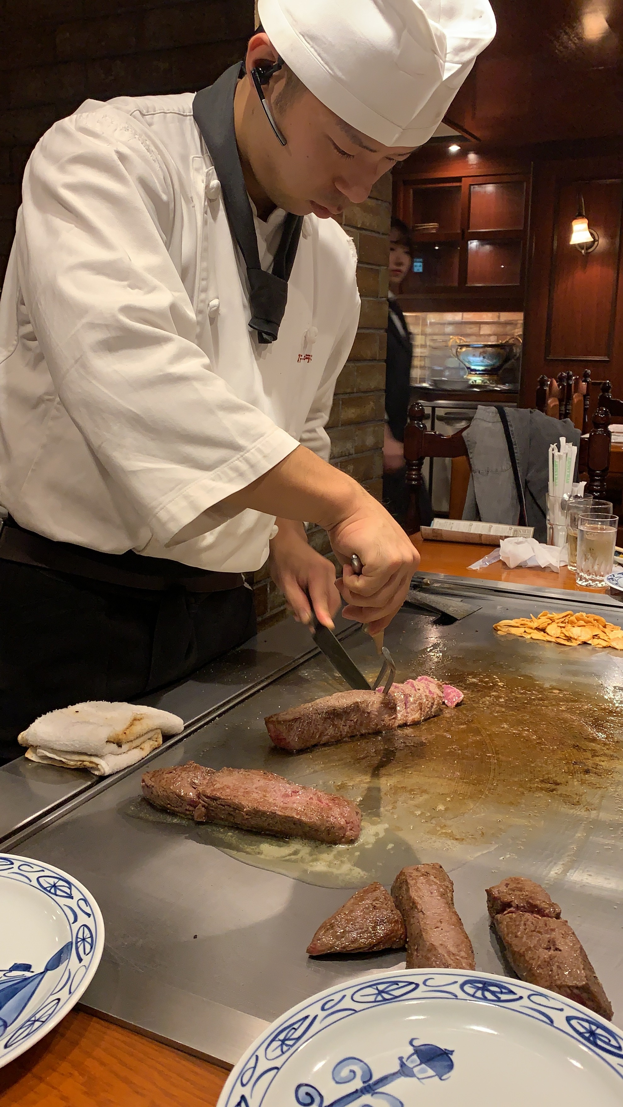 食後に、世界遺産登録国宝姫路城🏯を見ました。4年前に平成の大修理をした白鷺城は晴天の青空を背景に素晴らしく綺麗でした。天守閣の上まで登頂しようと思いましたが、急な階段を登らなければならないと、先に登られた70代の先生の声を聞き、明日のゴルフ⛳️(上位入賞すると商品券がもらえる。)の事を考え体力温存の為、やめました。夜は、三ノ宮の街のステーキ🥩ハウスで神戸牛ステーキを堪能しました。目の前で焼いてくれるシステムだったので、勿論、写真🤳とジュウジュウといい音をさせて鉄板の上でパフォーマンスしている神戸牛もも肉様を動画で撮りました。嫁さん、喜んでくれるかなぁ。中華料理の件もあるので、怒りに💢変わらなければいいけど。熱々の焼き立てのステーキ🥩はもちろん、美味しかったです。でも、三重県民としては松阪の『海津』の焼き肉定食(7500円なのですが、松阪牛フィレ肉🥩を個室でお庭を観ながら、女中さんが炭火で丁寧に焼いてくれます。噛まなくてもいいくらいの、美味しく口の中でとろける様です。)が最高です。ステーキで舌鼓を打ち、明日のゴルフに備えてホテルピエナ神戸に帰りました。