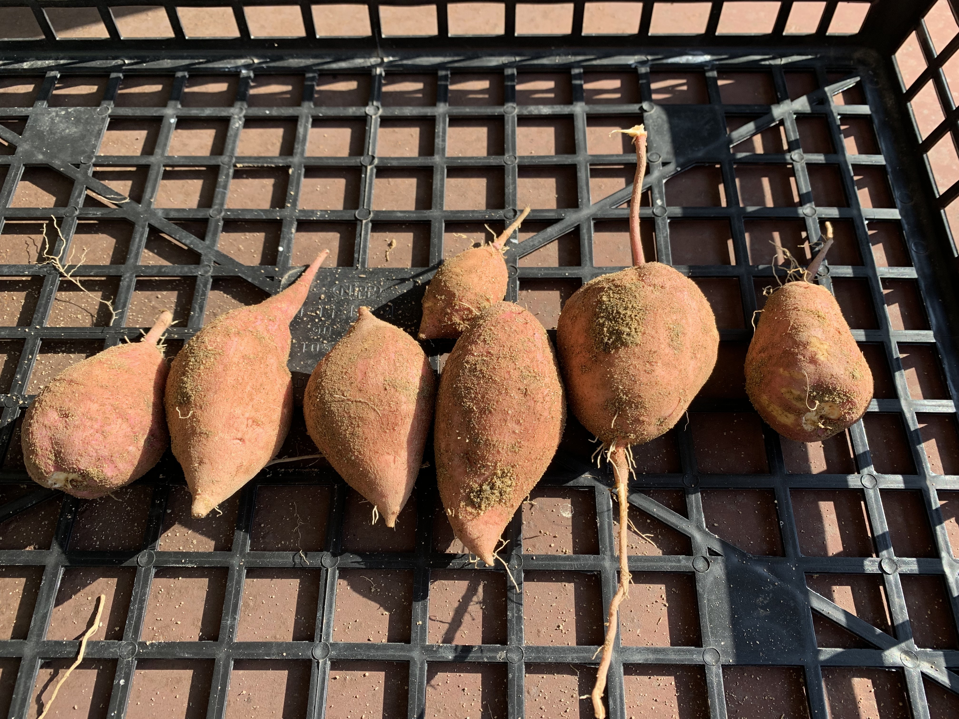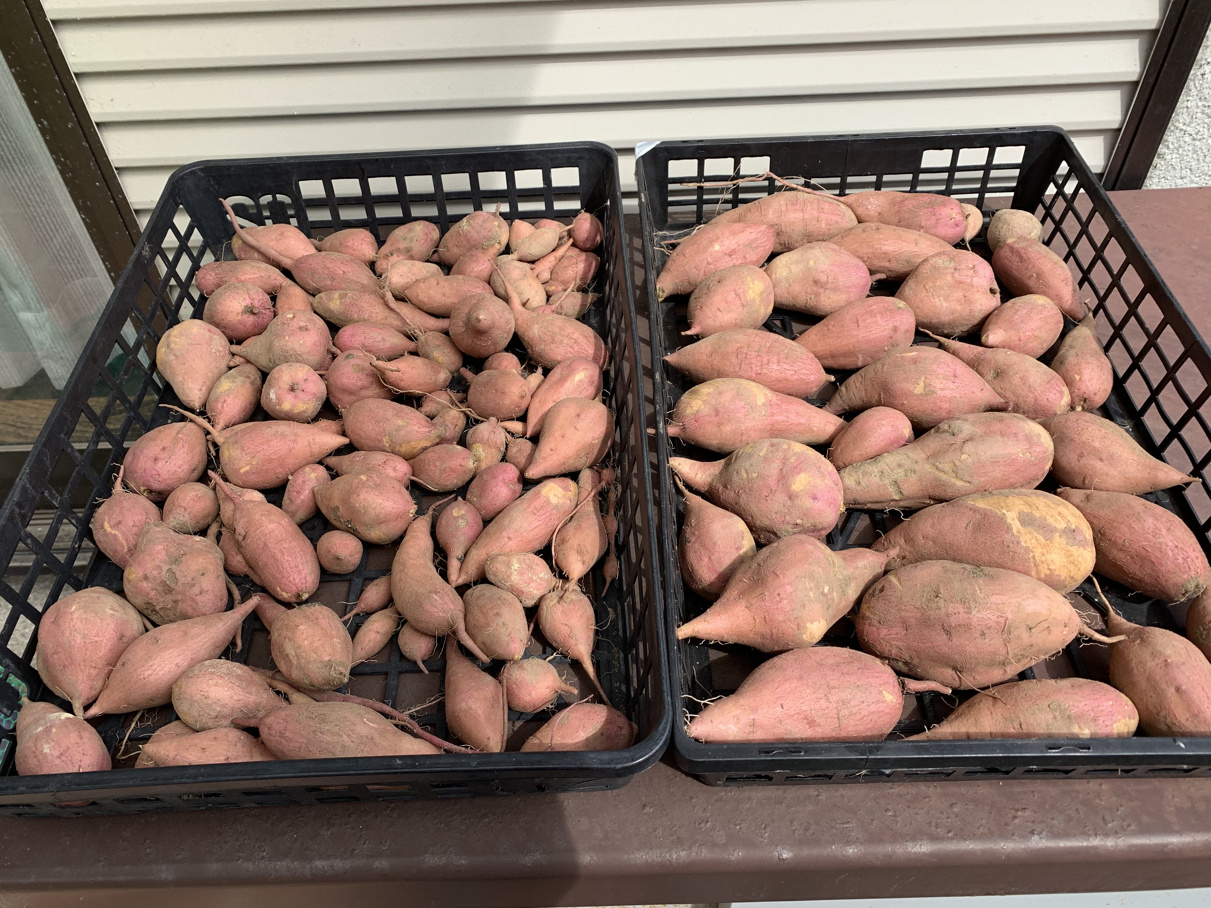 今日、安納芋の収穫を全て完了しました。2週間前に一度ふた株を掘り返し一株は、まだ芋🥔が小さかったので又、戻しました。そして今日、一大決心をし全ての安納芋を収穫を決行しました。大小様々な大きさの安納芋を収穫。私にとっては我が子の様なものです。大切に大切に傷をつけないように注意して収穫しました。天日干しして1週間くらい日陰干しします。あま〜い安納芋の天ぷらが楽しみです。でも、こんなに小さな芋🥔がありました。収穫時期が少し早かったのかな?まっ、いいかっ!