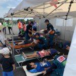 役柄交代です。とうとう私がコードブルーの山下智久演じる藍沢先生になる時が来ました。テーマソングのミスチルの『HANAB I』が頭の中に流れ始めました。負傷者発見。軽快にダッシュ💨し、負傷者の傍らに近づき片膝をついて山Pの様に沈着冷静に、少し低い声で「大丈夫ですか?どうされましたか?痛むのはどこですか?」脈を取り、呼吸数の確認、意識はあります。前頭部の裂傷を伴う打撲と、右上腕部に軽度の火傷。名前と住所の確認、返答正常。歩行可能なのでトリアージは『緑』。「安心して下さい。軽傷です。応急手当てをします。オデコは絆創膏を貼りますね。火傷の部分は冷えピタで冷やします。歩けますので、後は最寄りの診療所に行って下さいね。お大事に。」とカッコ良く(実は、ドギマギしながら)、トリアージと処置をしました。コードブルー ドクターヘリのドラマの様にはいきません。しかし、予習として劇場版を見ていった事は非常に役に立ちました。